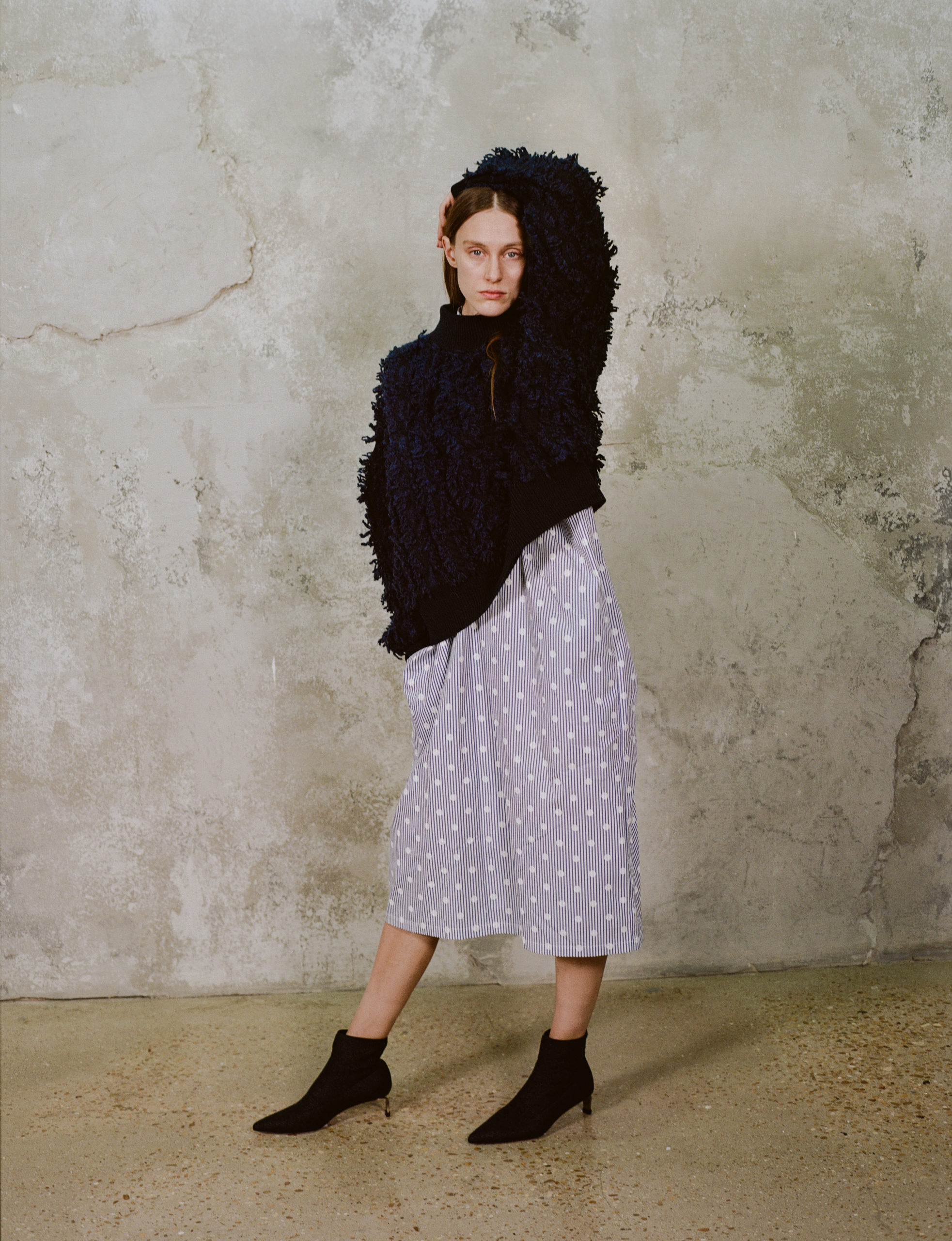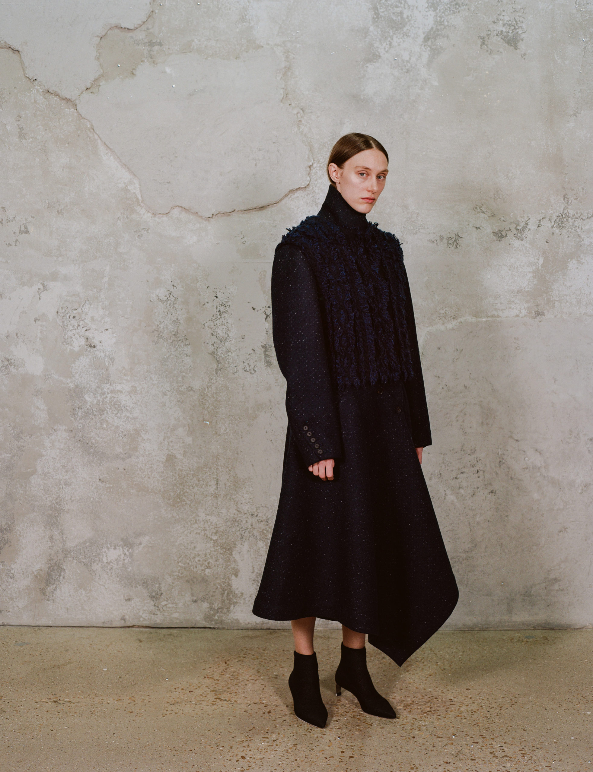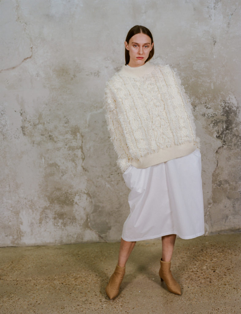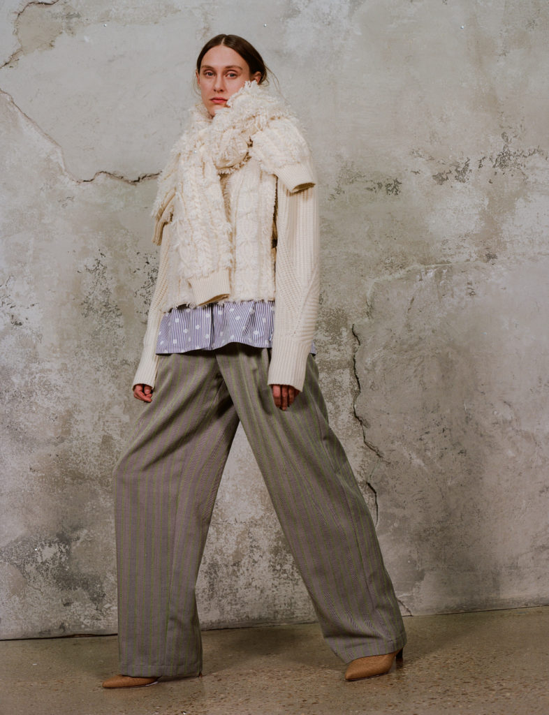 Une collection dans laquelle le designer associe et mélange tous les éléments de son ADN pour faire ressortir son identité à la fois raffinée et non-conventionnelle : aspects volumineux, enveloppants et ultra confortables, féminins et romantiques à travers lesquels on devine l’inspiration lingerie.