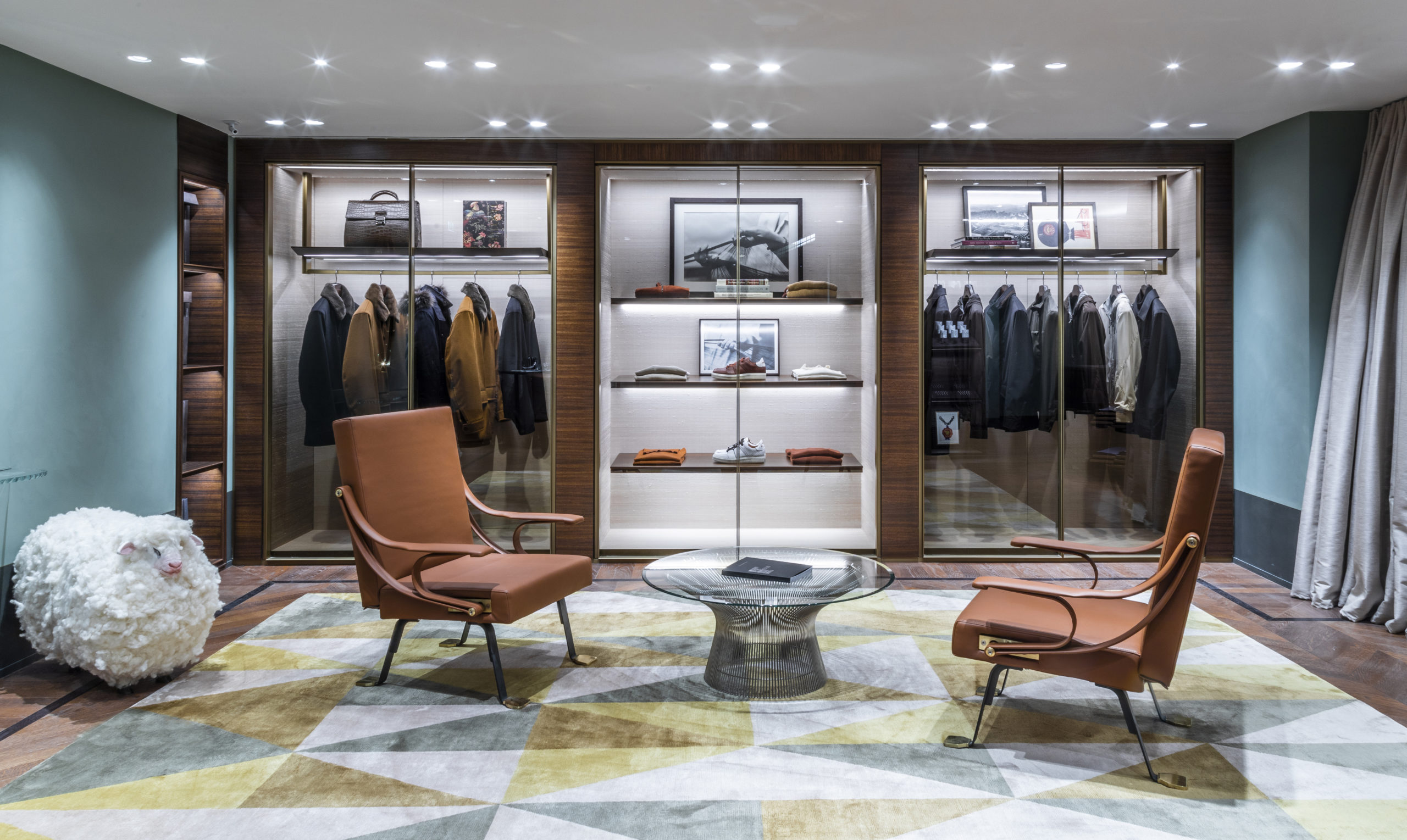 D’une superficie de 500 mètres carrés répartis sur deux niveaux, l’espace de vente propose une nouvelle offre complète en matière de luxe. On y découvre un sol en pierre de Vals aux tons naturels ainsi que des détails en bois d’acajou blanc, qui confèrent à la boutique une atmosphère à la fois feutrée et chaleureuse.
