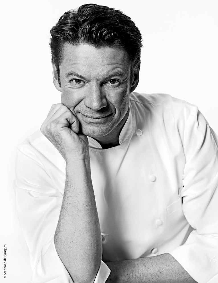 Depuis neuf mois, plus épanoui que jamais il endosse habilement son nouveau rôle, un bonheur qu’il savoure chaque jour avec sagesse et détermination. Sa cuisine est raffinée, élégante, subtile et audacieuse. Son geste est précis et ciselé. Il puise son inspiration au quotidien : une saveur, une odeur, un vin… et tente de relever l’éclat de chaque produit, l’essence qui en émane.