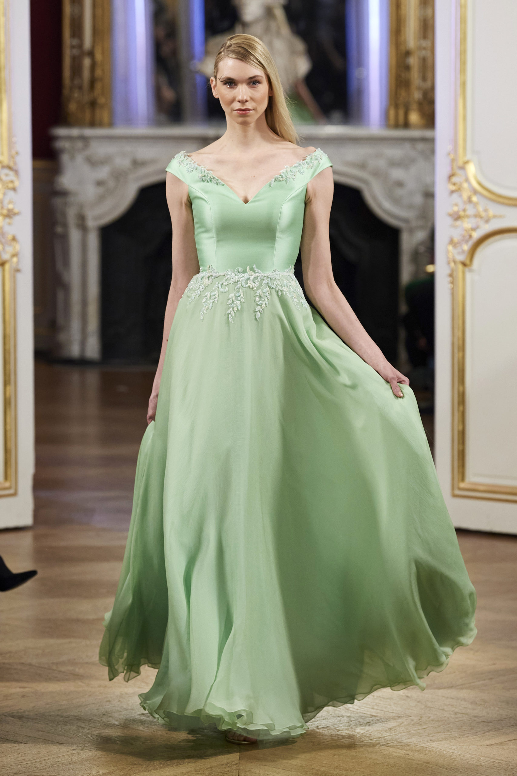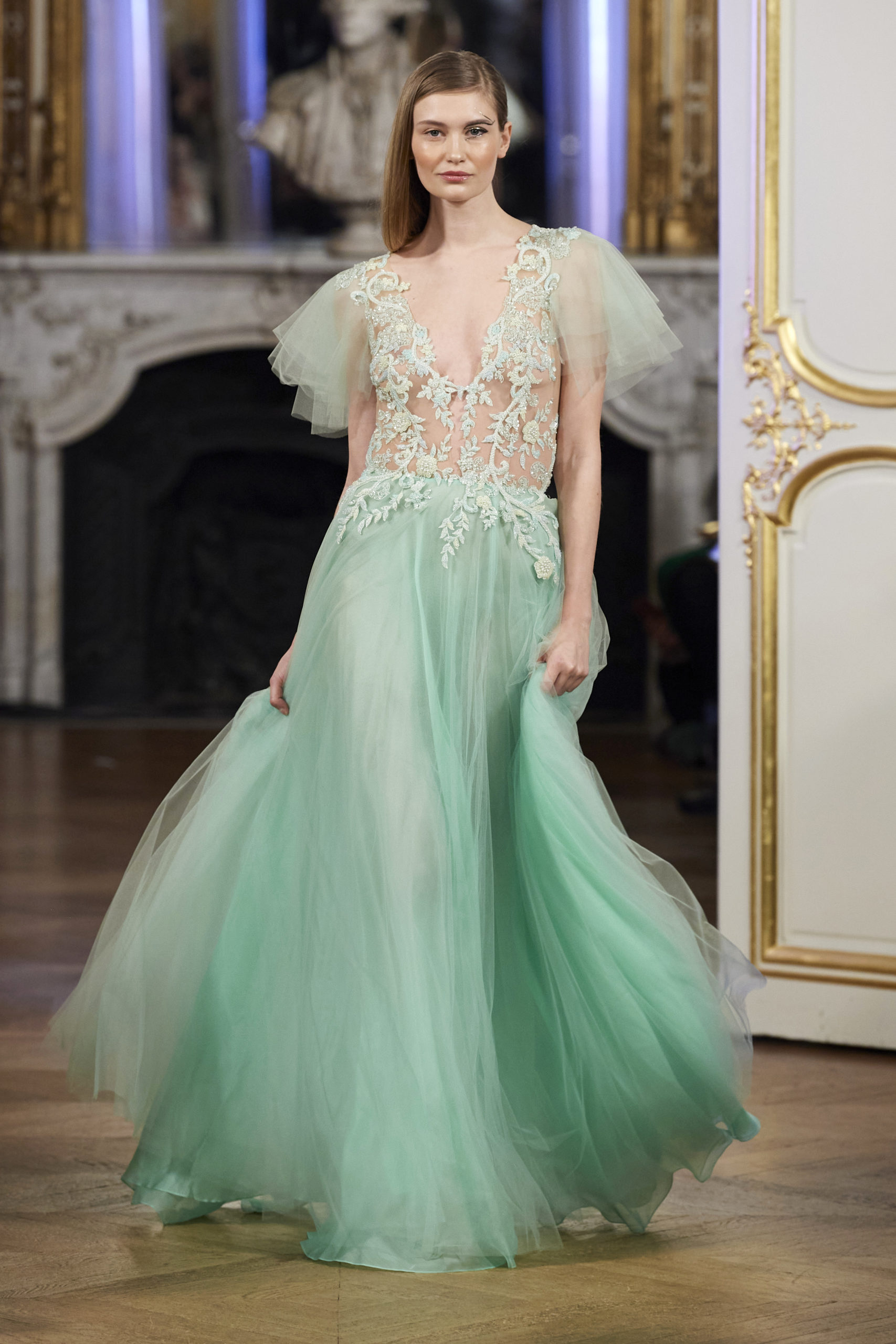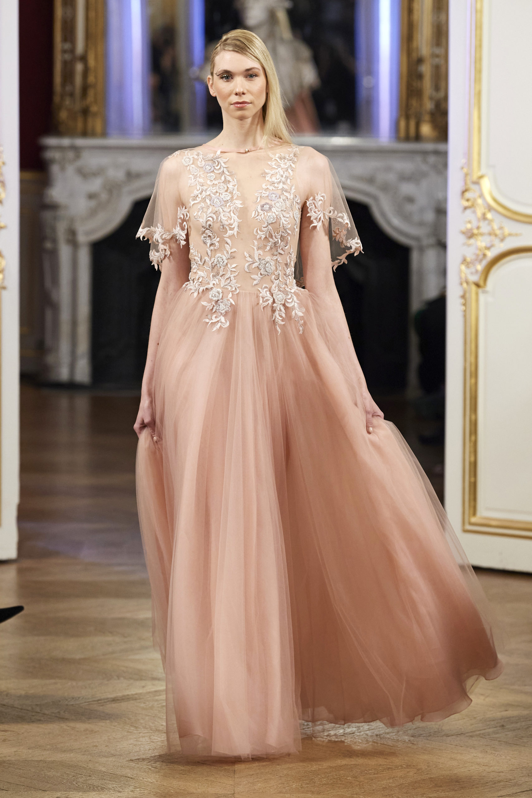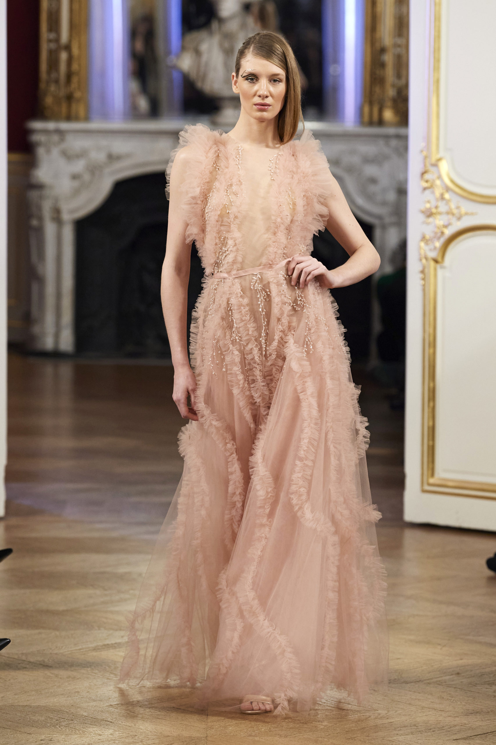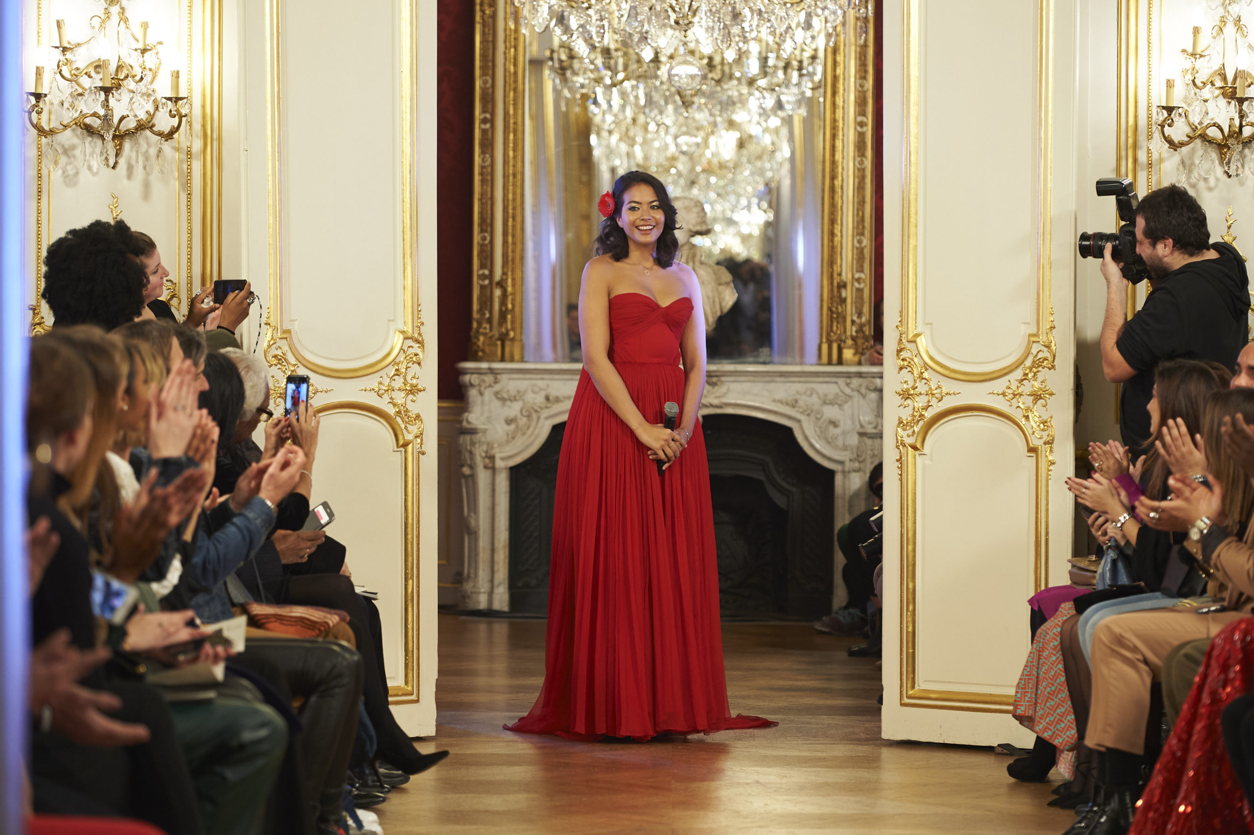 VAIMALAMA CHAVES « enChante » le public du défilé La Métamorphose, le mardi 21 janvier à 17h30, Hôtel Le Marois, durant la Fashion Week Haute Couture Printemps Eté 2020