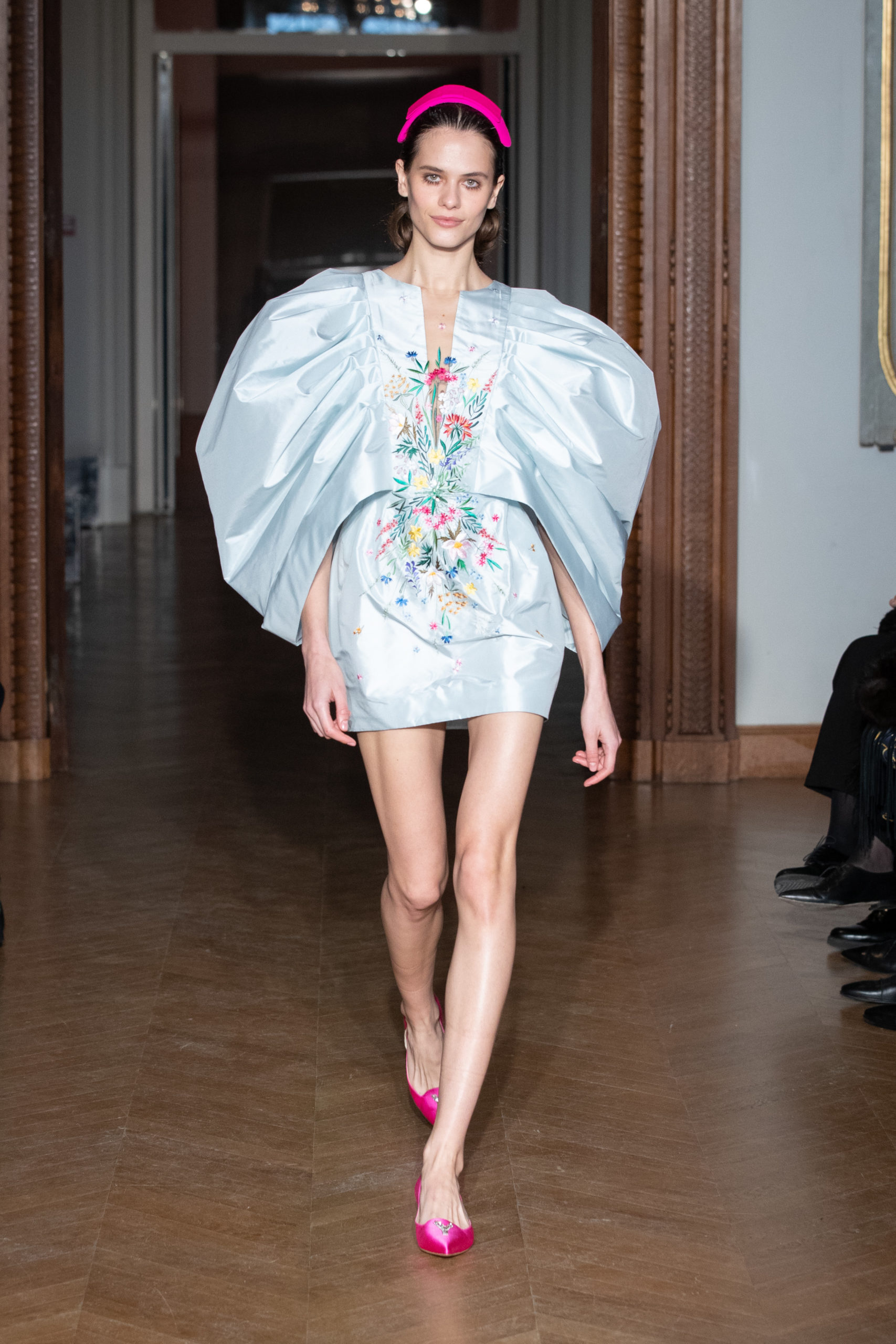 Inspirée par les icônes des années 60, comme Audrey Hepburn ou Catherine Deneuve, Jacqueline Kennedy ou bien encore Lee Radziwill, la maison reprend les classiques qui ont permis de créer les silhouettes les plus inoubliables : coupes courtes à la Twiggy, jeu de transparences, franges…