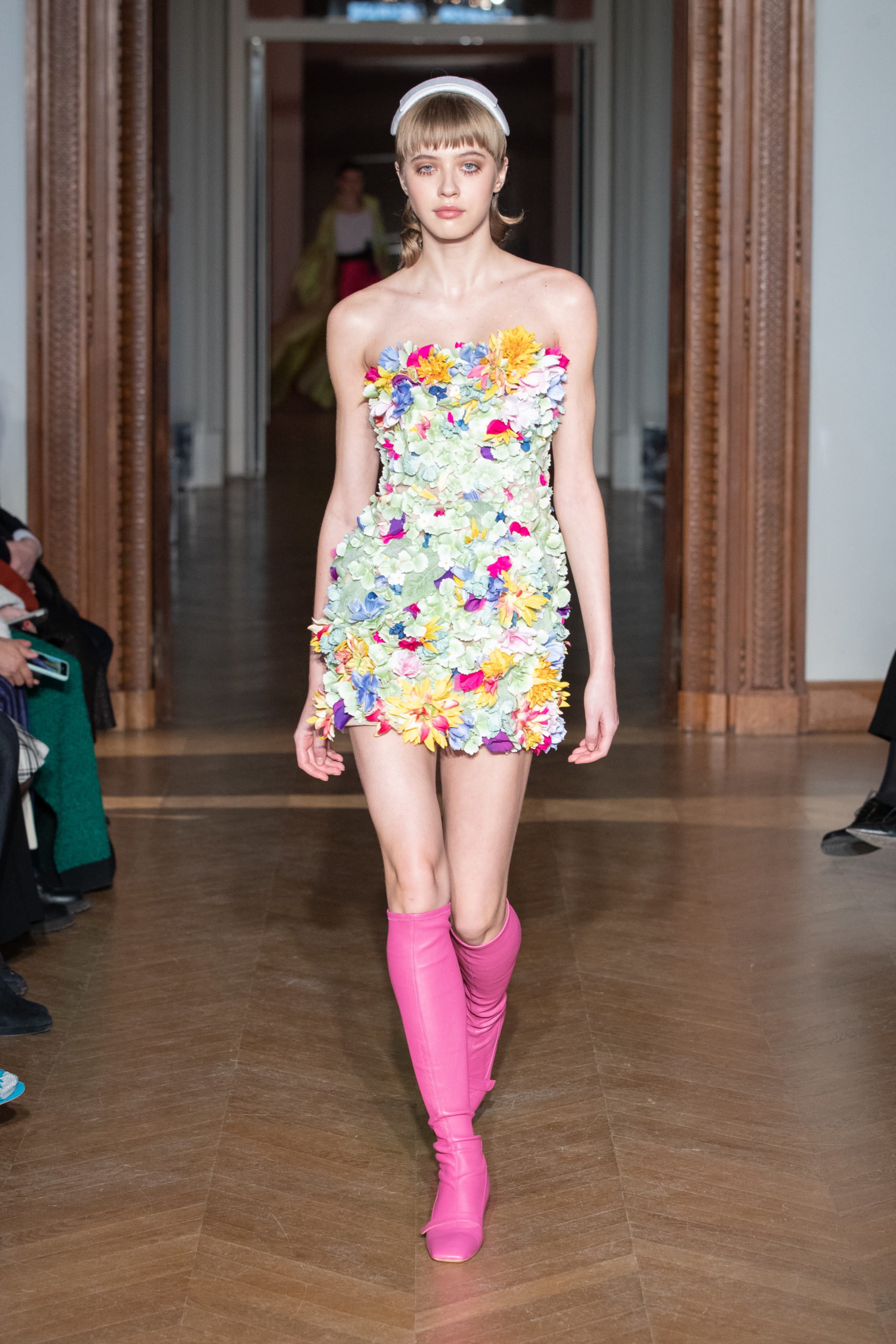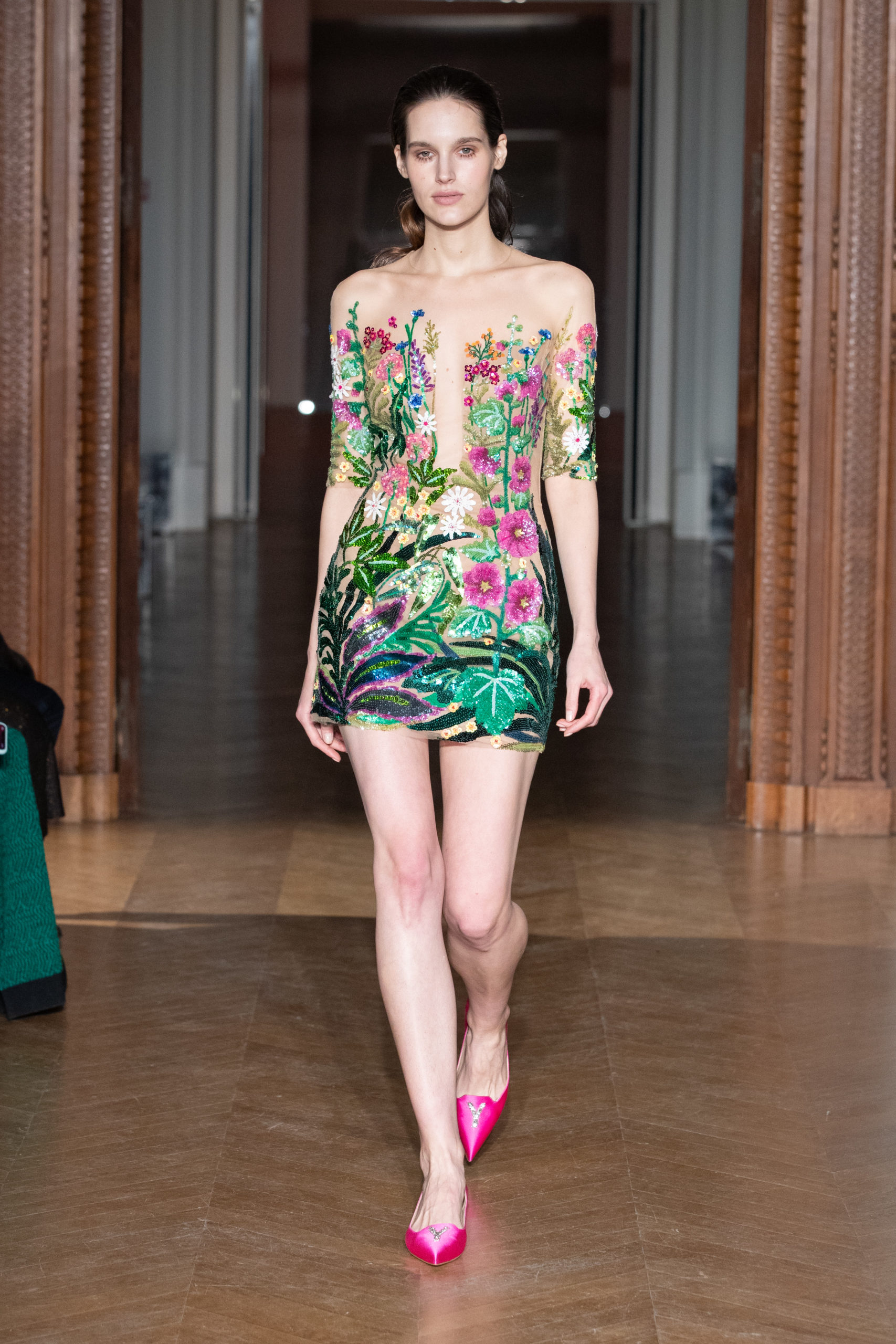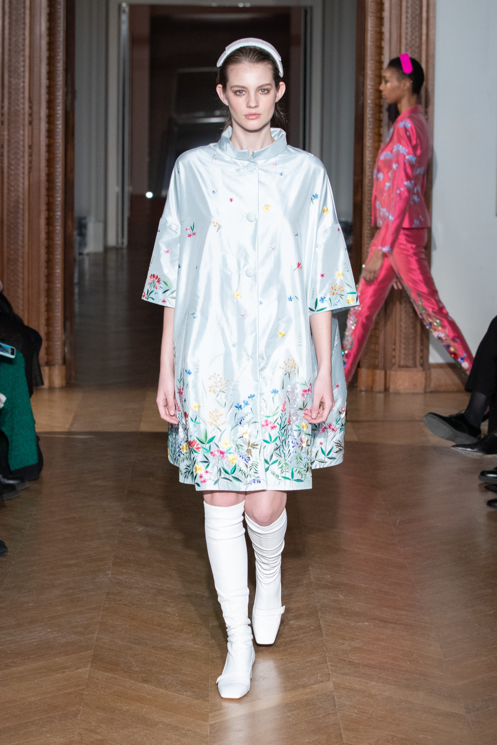 La créatrice Yulia Yanina s’éloigne de son style habituel, centré sur le noir et blanc, pour proposer une nouvelle facette de sa vision : à présent, les vêtements prennent vie dans une palette de tons éclatants, à travers des broderies, des motifs floraux ou des plumes extravagantes.