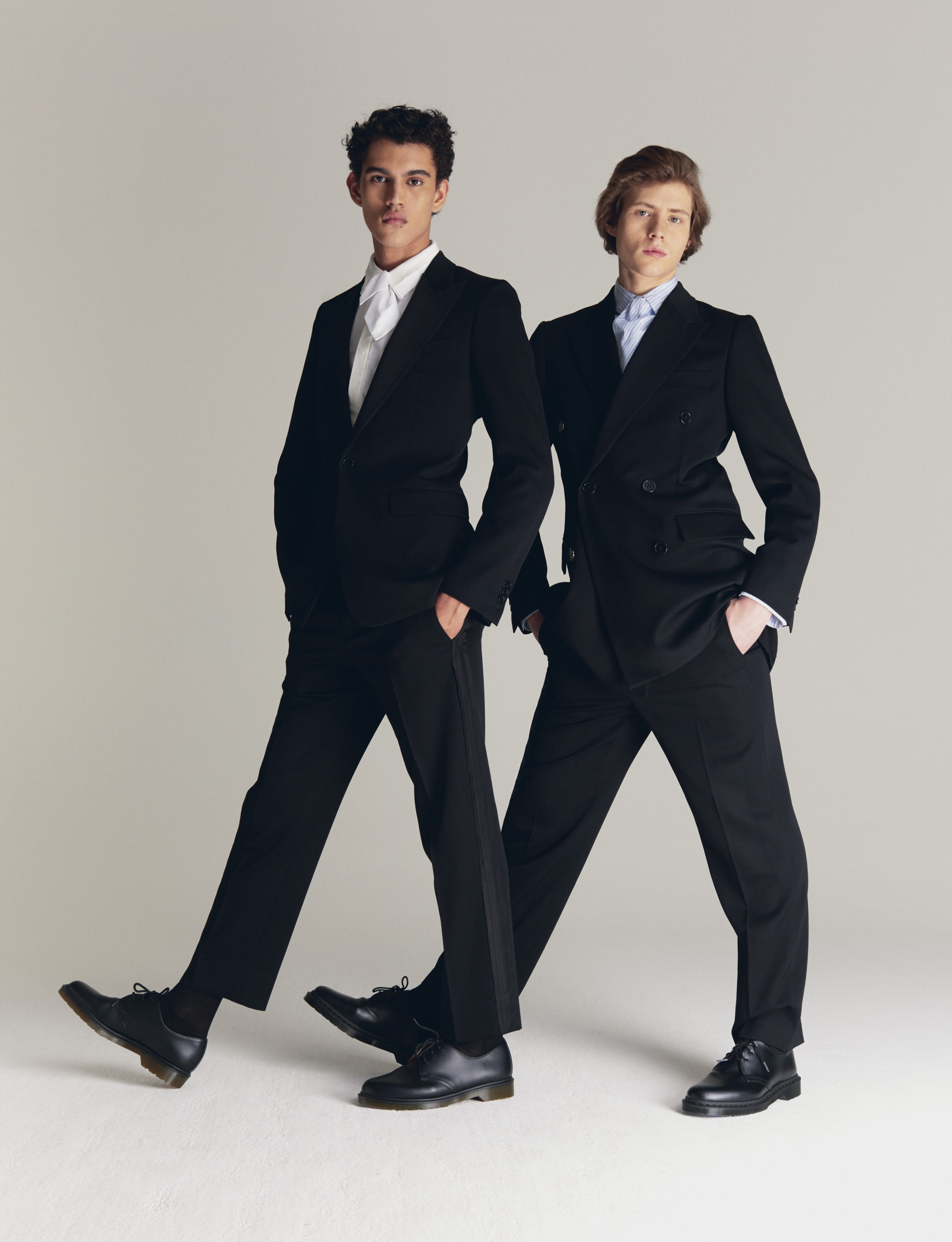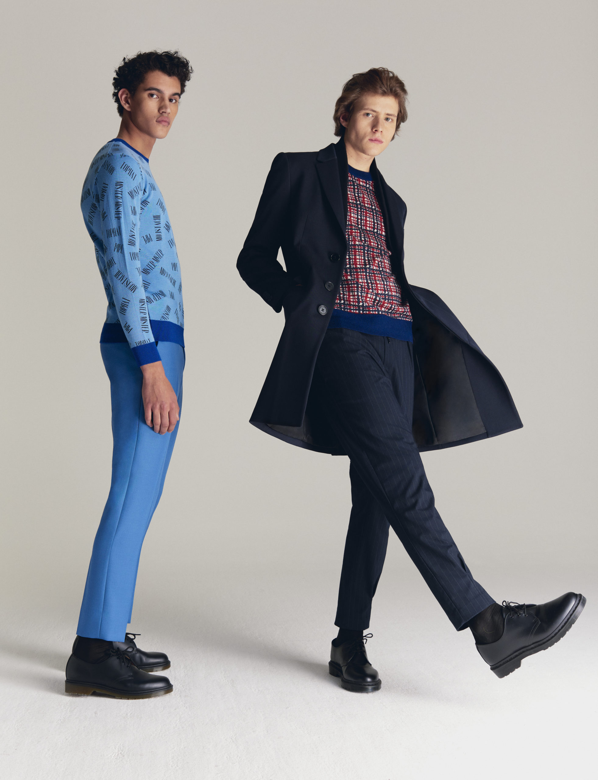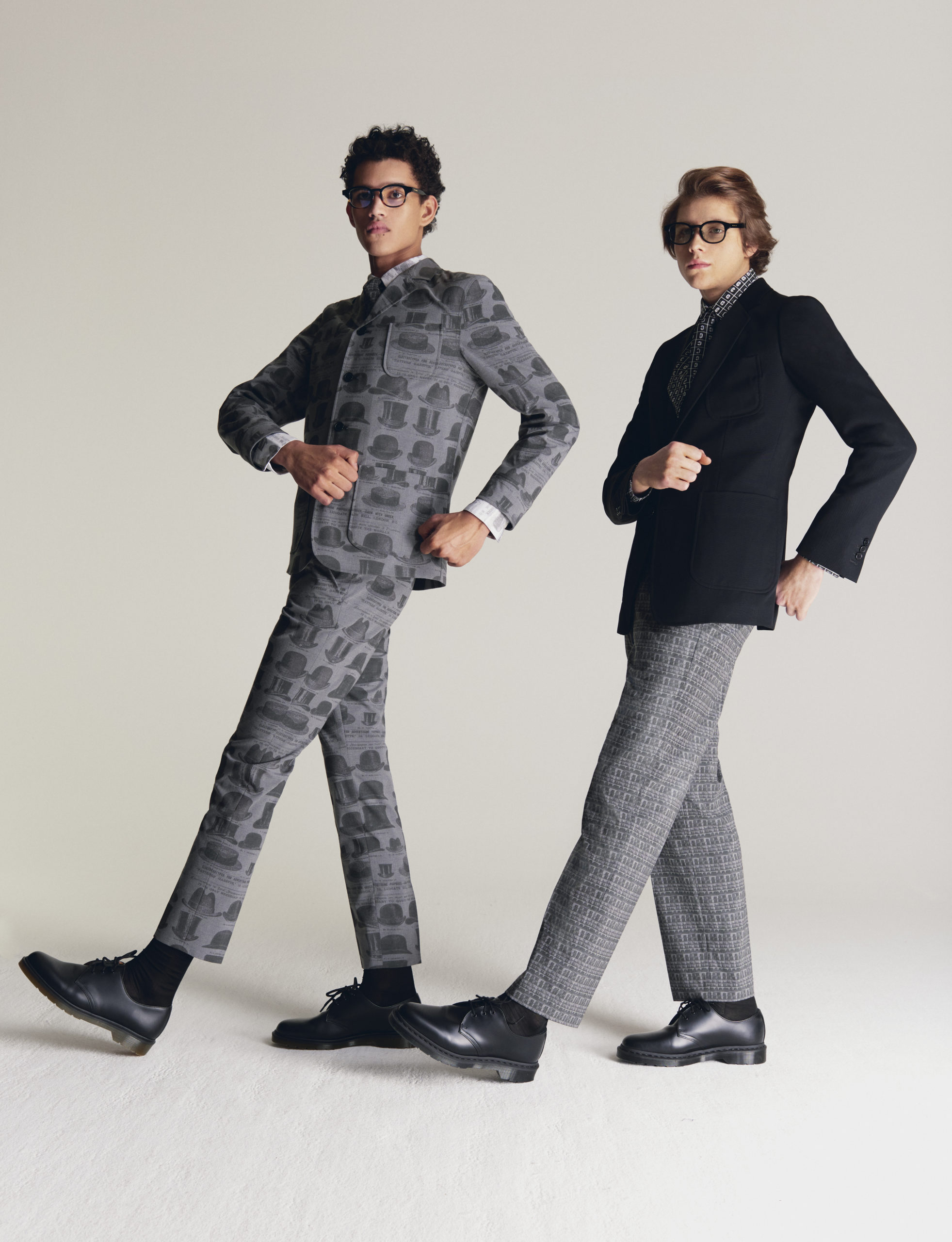 The collection embraces the modern dandy as a form of self-expression. Through a mingling of impeccable tailoring with casual wear, Viktor&Rolf Mister Mister crafts a playful take on formal wear. Homage is paid to an underlying sense of humour and irony through quirky conversational prints inspired by dandy narratives. Various top hats, either blown up or in micro patterns, executed in jacquards and trompe-l’oeil techniques, create a visual background that inspire dialogue amongst themselves.