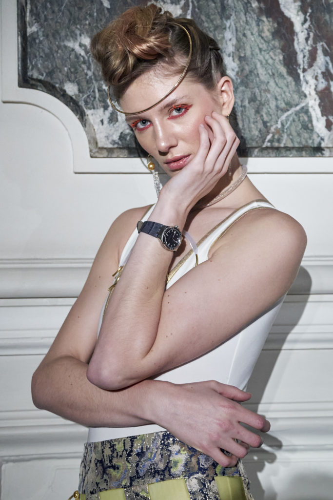 La précision d’une découpe, le savoir-faire d’une couturière… Les nombreux points communs entre la mode et l’horlogerie ne sont plus à démontrer. Lors d’un événement exceptionnel réunissant VIPs, amis de la marque et médias internationaux, Maurice Lacroix a célébré cette union en plein cœur de la Semaine de la couture parisienne. En effet, Adeline Ziliox, amie de la marque Maurice Lacroix faisant partie du calendrier officiel de la mode, elle y présentait donc sa nouvelle collection Source[s]. Une collection dont l’inspiration de la styliste strasbourgeoise fut la source de vie, une rencontre des éléments. Ainsi chaque tenue mettait à l’honneur des broderies dessinant de manière subtile des paysages émotionnels, mais aussi des jeux de transparence illustrant le rythme de la vie. C’est ainsi que, dans un décor de style XVIIIe siècle de l’hôtel particulier Le Marois à Paris, chaque mannequin déambulait sur le catwalk habillé de tenues théâtrales ainsi que des nouveautés signées Maurice Lacroix au poignet.