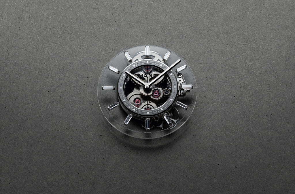 Dotée d’un nouveau mouvement conçu et assemblé par la Manufacture CHANEL – le Calibre 3.1, la J12 X-RAY mise sur la transparence. La platine, le pont de minuterie, le pont de rouage sont en saphir. Ils s’effacent pour laisser passer la lumière et révéler une dentelle brodée de rouages. Chacun de ces composants mesure entre 0,5 et 1mm d’épaisseur seulement. L’assemblage du mouvement requiert la délicatesse, la patience et l’expertise des maitres horlogers. Une opération qui dure une semaine complète.
