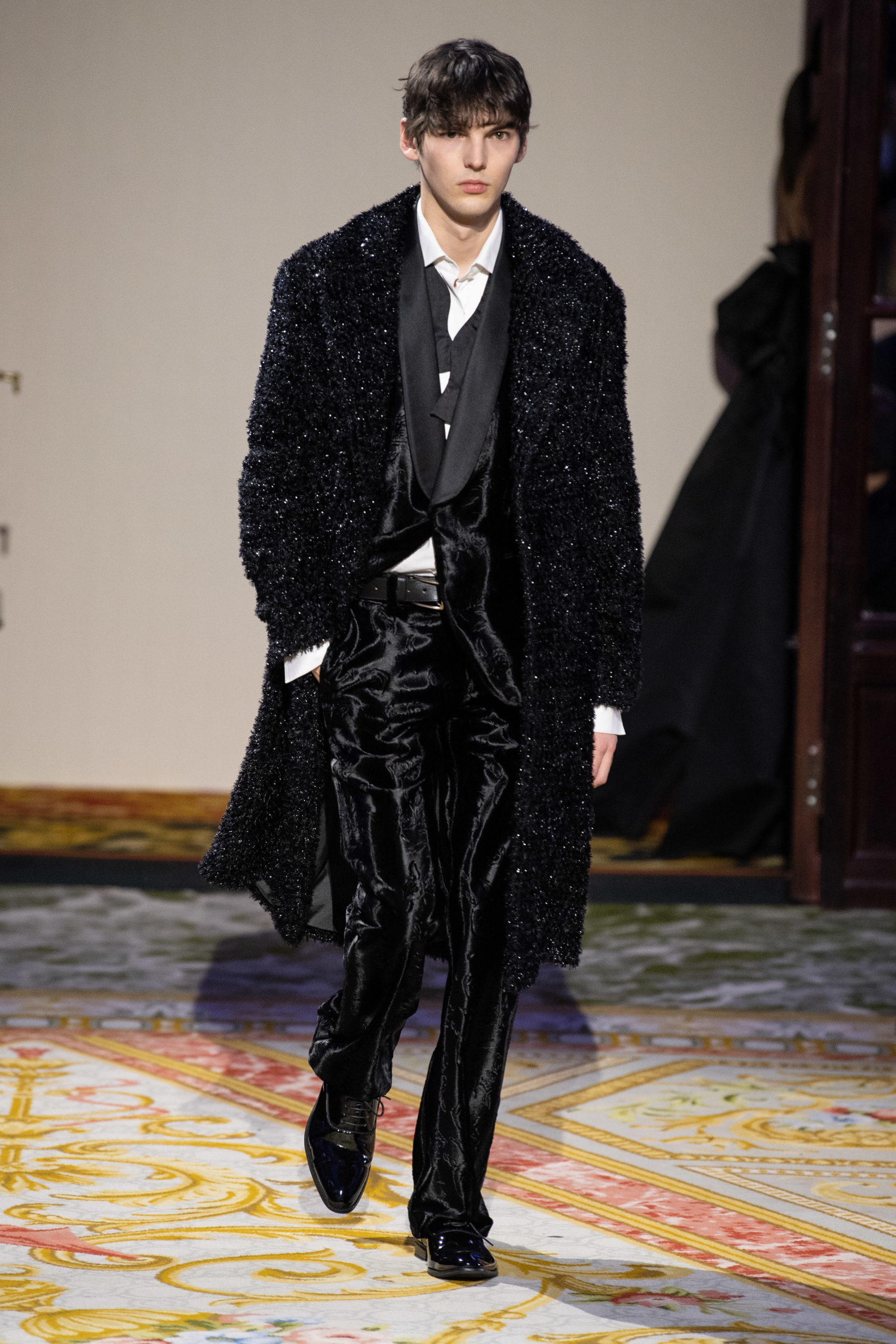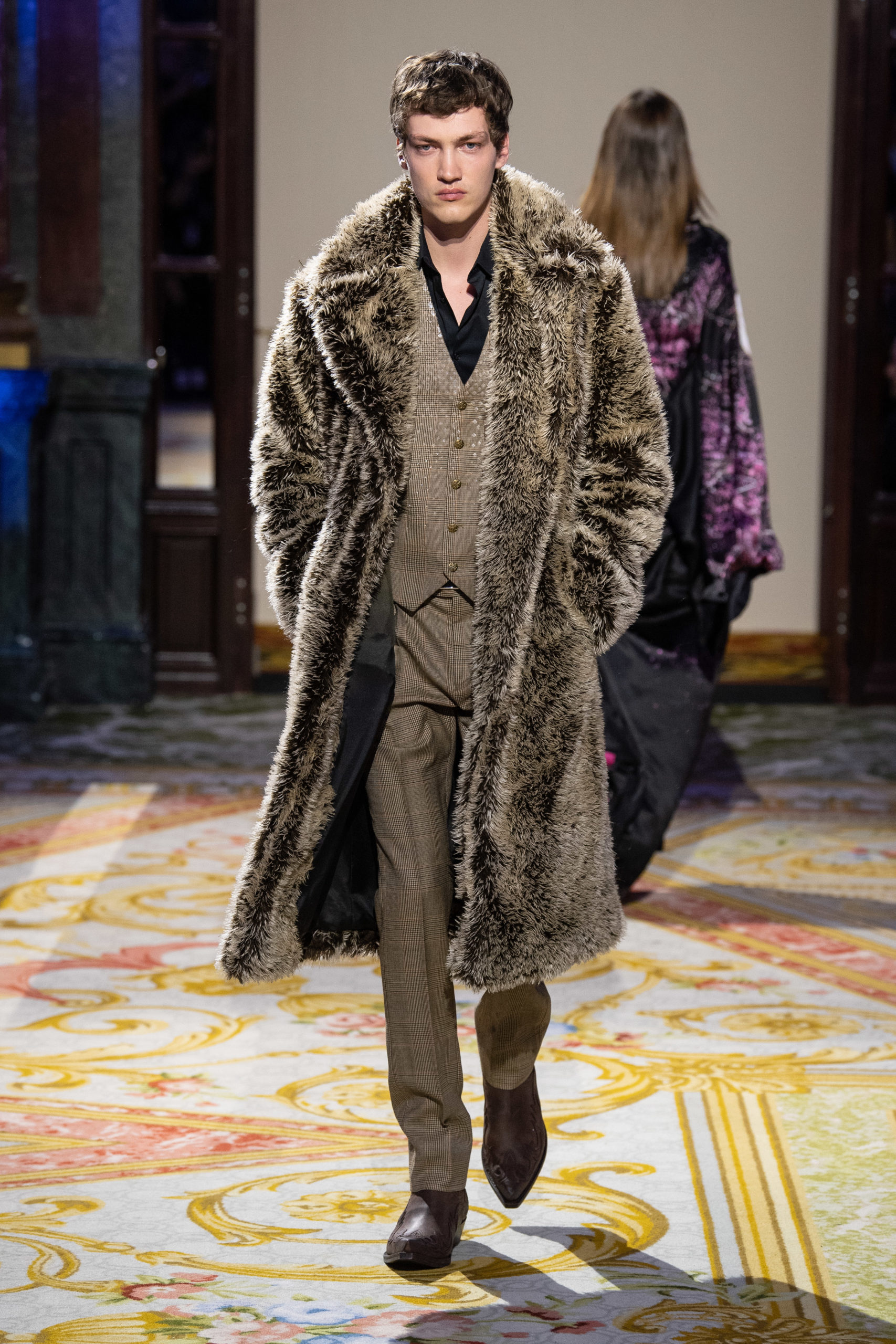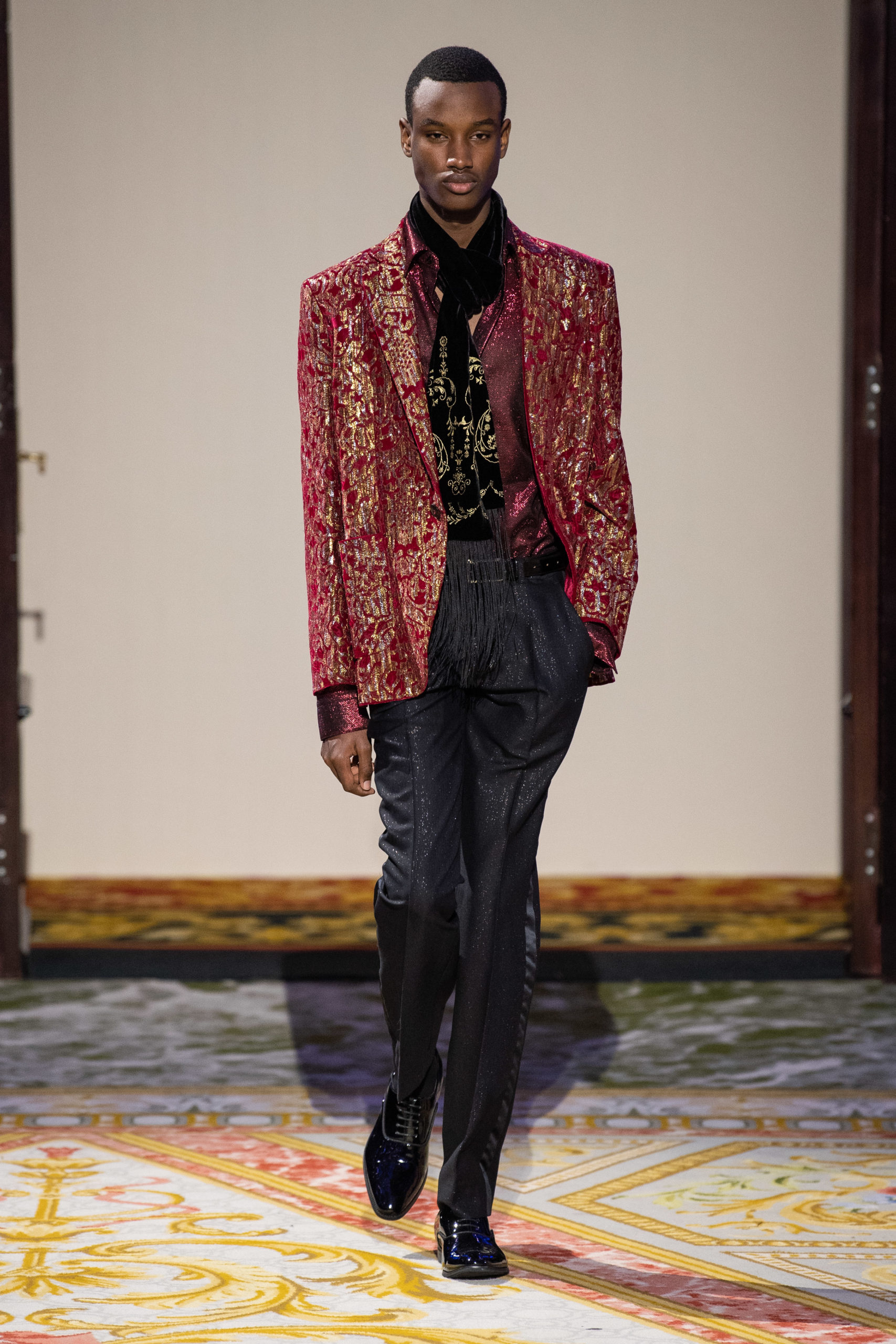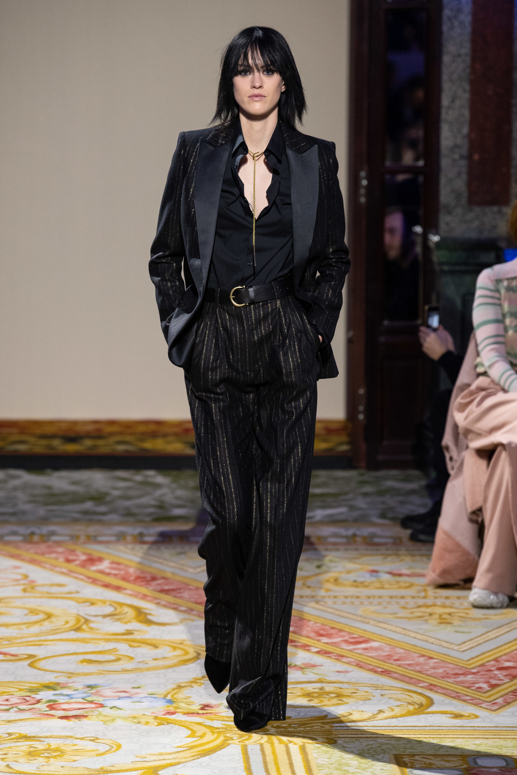 Redemption est synonyme d’élégance, tout en maintenant fermement son esprit rebelle derivant de l’amour inconditionnel du directeur artistique Bebe Moratti pour le rock’n’roll. Cela se transmet par son iconographie unique et sa quête pour un changement positif. Tout est concentré dans ce mélange d’élégance et d’individualité, basé sur la volonté d’agir pour le bien de tous allant de l’approche durable en matière de création de mode aux salaires équitables. A Night at the Opera, l’album de Queen sorti en 1975 qui a lancé la carrière du groupe, est également le titre de la nouvelle collection « Redemption », une surenchère de glamour et de séduction qui puise son esprit rebelle dans les classiques qu’elle revisite. Costumes de soirée, tenues de réception et touche d’originalité… le classicisme fait des embardées. Masculin et féminin dialoguent et donnent le ton avec d’élégantes juxtapositions de coupes structurées et de drapés sensuels, de laines texturées et de satins sinueux, traduisant tantôt une forme de rigidité, tantôt une certaine langueur. Longs manteaux, costumes et blazers dessinent une carrure imposante rehaussée par d’audacieux revers, tandis que des pantalons évasés taille haute étirent encore davantage la silhouette. Le smoking et le manteau queuede-pie capturent l’esprit de la nuit. Côté femme, les robes courtes dénudent les jambes ou se prolongent en de longues traînes. Les coupes kimono et les ceintures obi marquent la taille et ajoutent une touche d’exotisme décadent à la collection « Redemption », qui se veut résolument sensuelle et près du corps. La palette proposée, un mélange de noir, de marrons et de neutres plus masculins ponctués de rouge vif et de rose, se décline avec panache sur une association de velours, de laine lurex, de satin duchesse et de denim enduit. Aspirant à une durabilité totale dans les meilleurs délais et dans le souci de devenir une marque qui agit vraiment pour le bien de tous, la collection a été conçue en majeure partie à partir de matériaux certifiés. Lancée cette saison, la collection « Redemption » pour hommes s’inscrira dans le même esprit, à la fois élégant et rebelle. Les trois pièces et smokings structurés, les manteaux et duffle-coats, les blazers en velours et les jeans traduisent un sentiment d’insouciance. Les silhouettes sont élancées, réalisées dans un velours sinueux, des laines lurex, du tweed, du denim certifié. Un seul mot d’ordre : à tout moment de la journée, la rébellion se retrouve davantage dans l’élégance que dans la négligence.