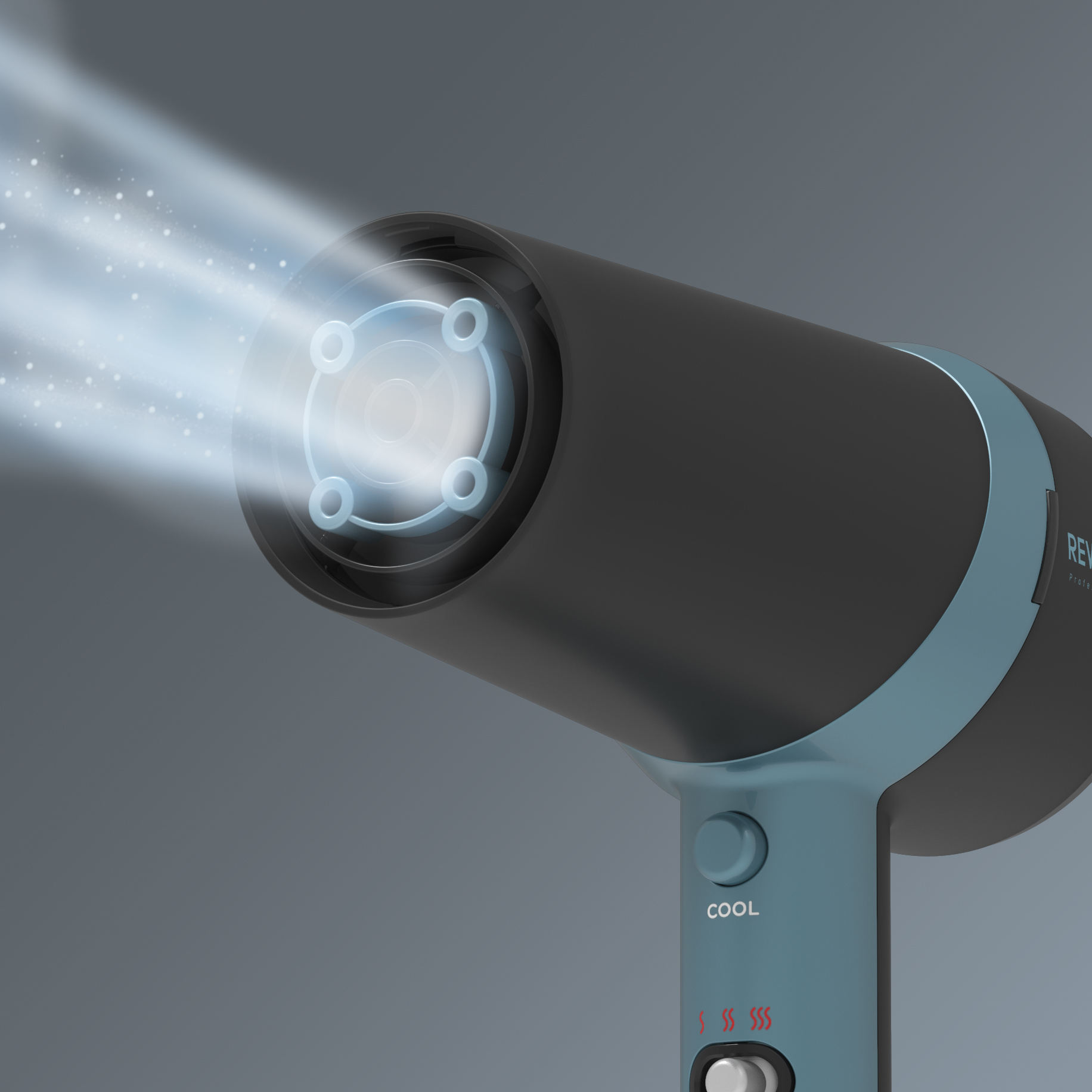 Les sèche-cheveux Revamp Professional produisent des ions positifs et des ions négatifs, au choix, pour assurer un lissage irréprochable et un touché doux ou du volume avec une brillance ultime. Comment cela fonctionne ? Tout simplement en dégageant jusqu’à 5 millions d’ions/cm3 d’air. Ces ions séparent les particules d’eau en microparticules, qui hydratent les cheveux et pénètrent dans la tige capillaire. Les ions négatifs aident également à sceller et à aplatir les écailles pour conserver l’humidité à l’intérieur du cheveu avec un résultat naturellement brillant.