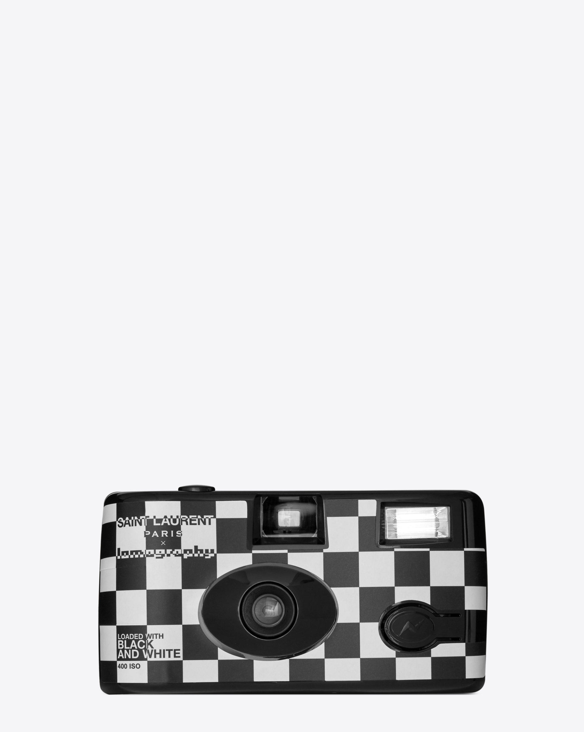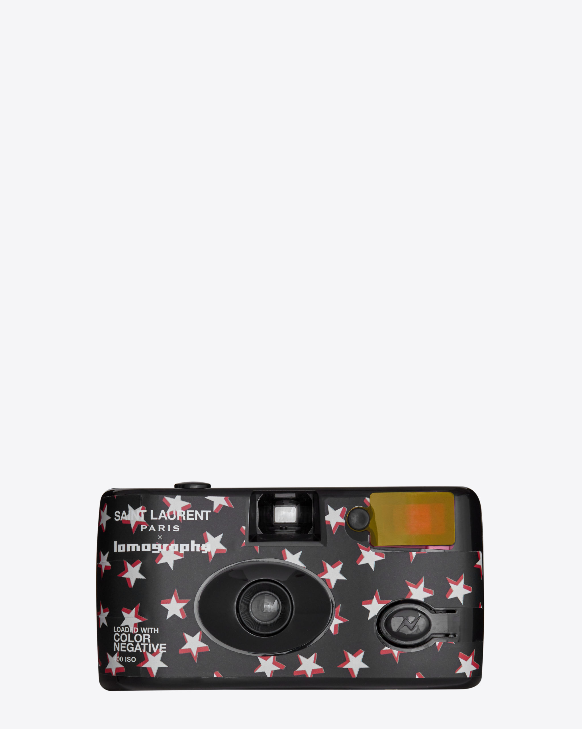 Saint Laurent and Lomography have collaborated together on the release of two limited edition Simple Use Film Cameras. These two cameras are available with either a star pattern preloaded with color negative film or with a black and white checkered pattern preloaded with B&W film. Both equipped with flash, plus creative color gels to bring new hues to your shots (for the star pattern camera), these cameras work as single use cameras, but are reusable and can be reloaded with any 35 mm film. These Simple Use Film Cameras will capture beautiful shots in analogue style. Available at the Saint Laurent Rive Droite stores in Paris and Los Angeles.