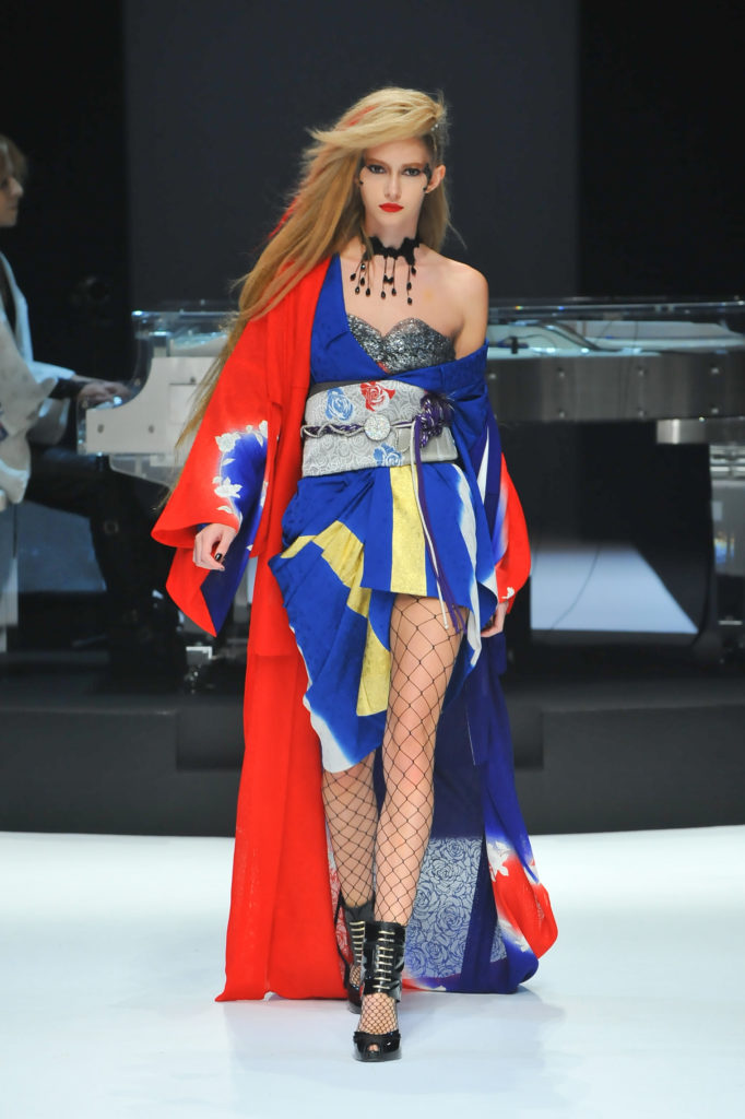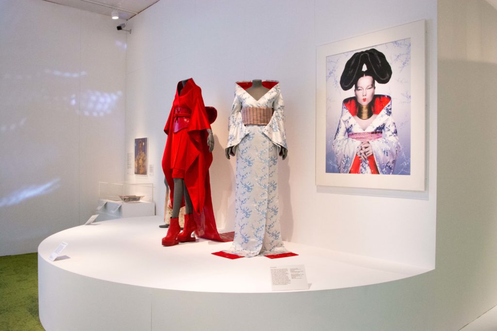 Highlights of the exhibition include a kimono created by Living National Treasure Kunihiko Moriguchi, the dress designed for Björk by Alexander McQueen and worn on the album cover Homogenic, and original Star Wars costumes modelled on kimono by John Mollo and Trisha Biggar. Designs by Yves Saint Laurent, Rei Kawakubo and John Galliano will reveal the kimono’s role as a constant source of inspiration for fashion designers. A fabulous kimono made with ligthnings patchwork inspired by Kiss band will be featured from one of the first Yoshikimono collections.
