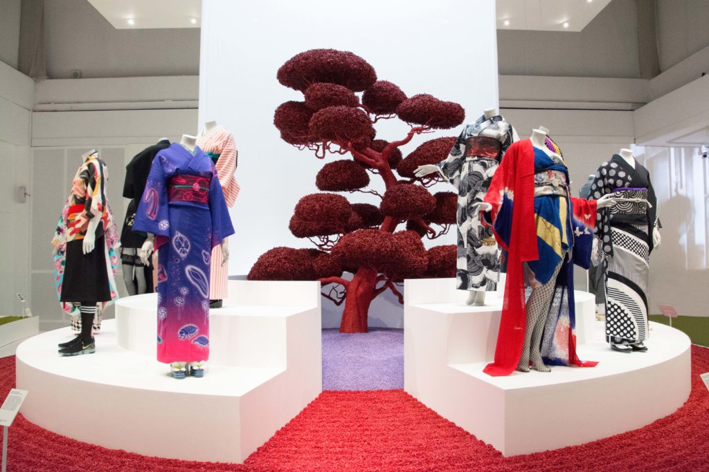 It is then natural for the brand Yoshikimono to partner with V&A and be featured in the exhibition. Indeed, the brand has been created 10 years ago by iconic Japanese rock star Yoshiki. Yoshiki is the founder of rock band X Japan who sold during their international career more than 30 millions albums. Within his collections, Yoshiki wants to celebrate the Kimono as a traditional garment but with a fashion contemporary twist. His aim is to introduce the art of the kimono to the younger generation in order to perpetuate this Japanese tradition.