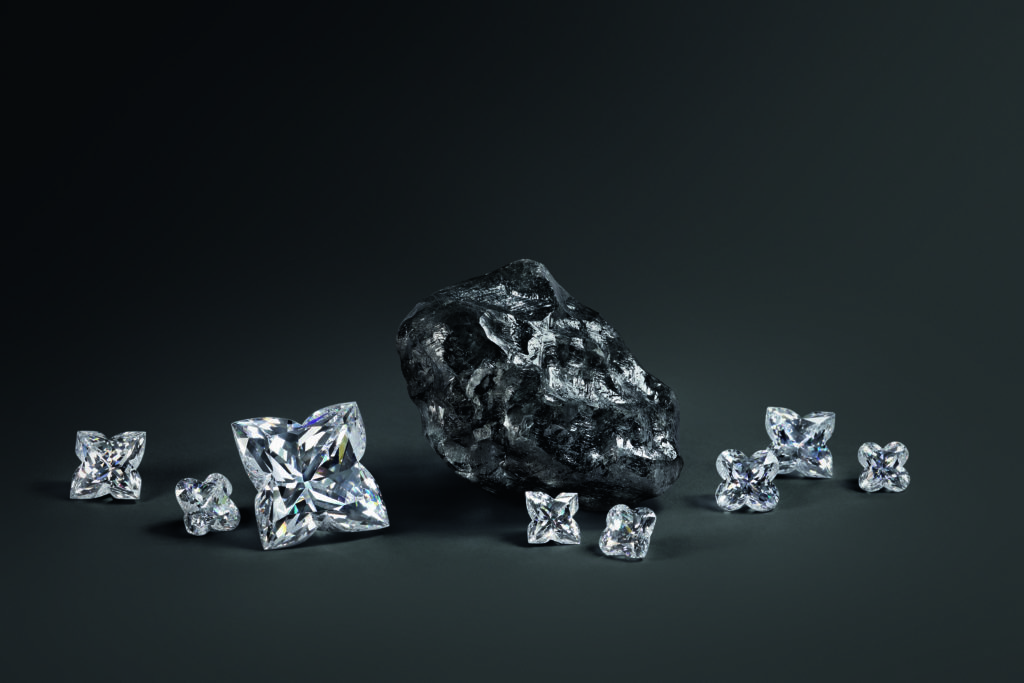 Louis Vuitton travaille en étroite collaboration avec les maîtres diamantaires de la société HB d’Anvers, qui étudient le Sewelô dans les moindres détails grâce aux technologies de balayage et d’imagerie les plus modernes. La Maison entend ainsi évaluer le potentiel final de la pierre et optimiser la valeur de chaque diamant fini, une fois taillé et poli. La première étape consiste à analyser le cœur du spécimen afin d’envisager les diverses possibilités de taille, de couleur et de forme. Le taille d’un diamant requiert un savoir-faire ancestral quasi mystique mêlant art, science, expertise et intuition. Les technologies de pointe joueront un rôle décisif tout au long du processus, depuis le balayage et la planification jusqu’aux étapes finales de taille et de polissage. Une année devrait être nécessaire à l’accomplissement de ces différentes opérations. Compte tenu des propriétés uniques du Sewelô, – taille et surface noire opaque –, les experts devront privilégier les nano-technologies nouvelle génération plutôt que les méthodes traditionnelles. Dans le cadre de cette collaboration avec la société HB, Louis Vuitton s’impliquera à chaque étape du processus créatif et veillera à maximiser l’éclat, le feu, le scintillement, la singularité et le prestige uniques de ce somptueux cristal brut. Par ses dimensions exceptionnelles, la pierre pourra être utilisée pour façonner des diamants LV Cut sur mesure. Ces pièces extrêmement complexes seront taillées par les maîtres-artisans de Louis Vuitton en fleur quadrilobée à pétales arrondis ou en pointe, le Monogram signature de la Maison.