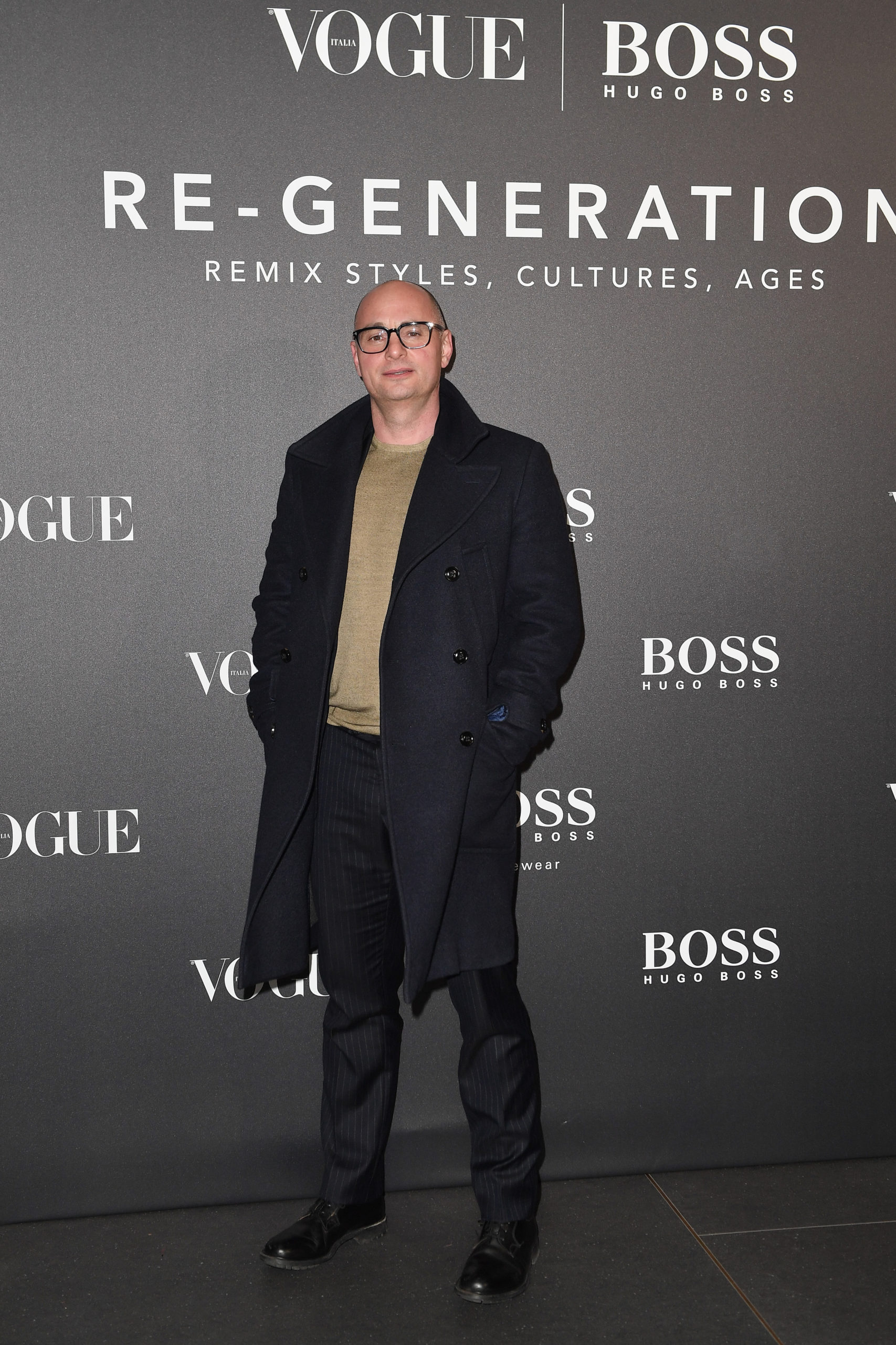 - MILAN, ITALY – FEBRUARY 21: Christian Pellizzari arrives for the BOSS & VOGUE Italia Event at Hotel Viu Milan on February 21, 2020 in Milan, Italy. (Photo by Jacopo M. Raule/Getty Images for Boss)