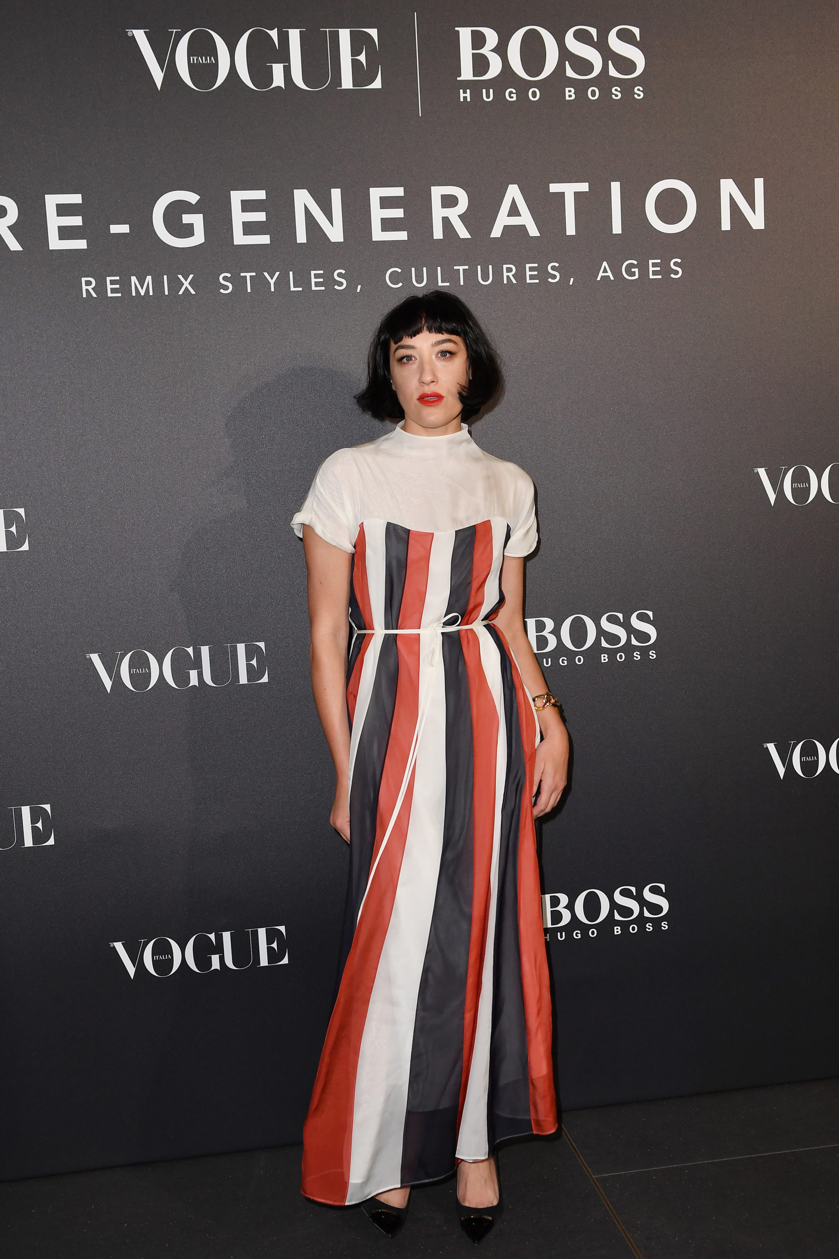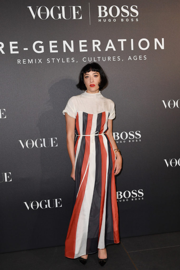 - MILAN, ITALY – FEBRUARY 21: Mia Moretti arrives for the BOSS & VOGUE Italia Event at Hotel Viu Milan on February 21, 2020 in Milan, Italy. (Photo by Jacopo M. Raule/Getty Images for Boss)