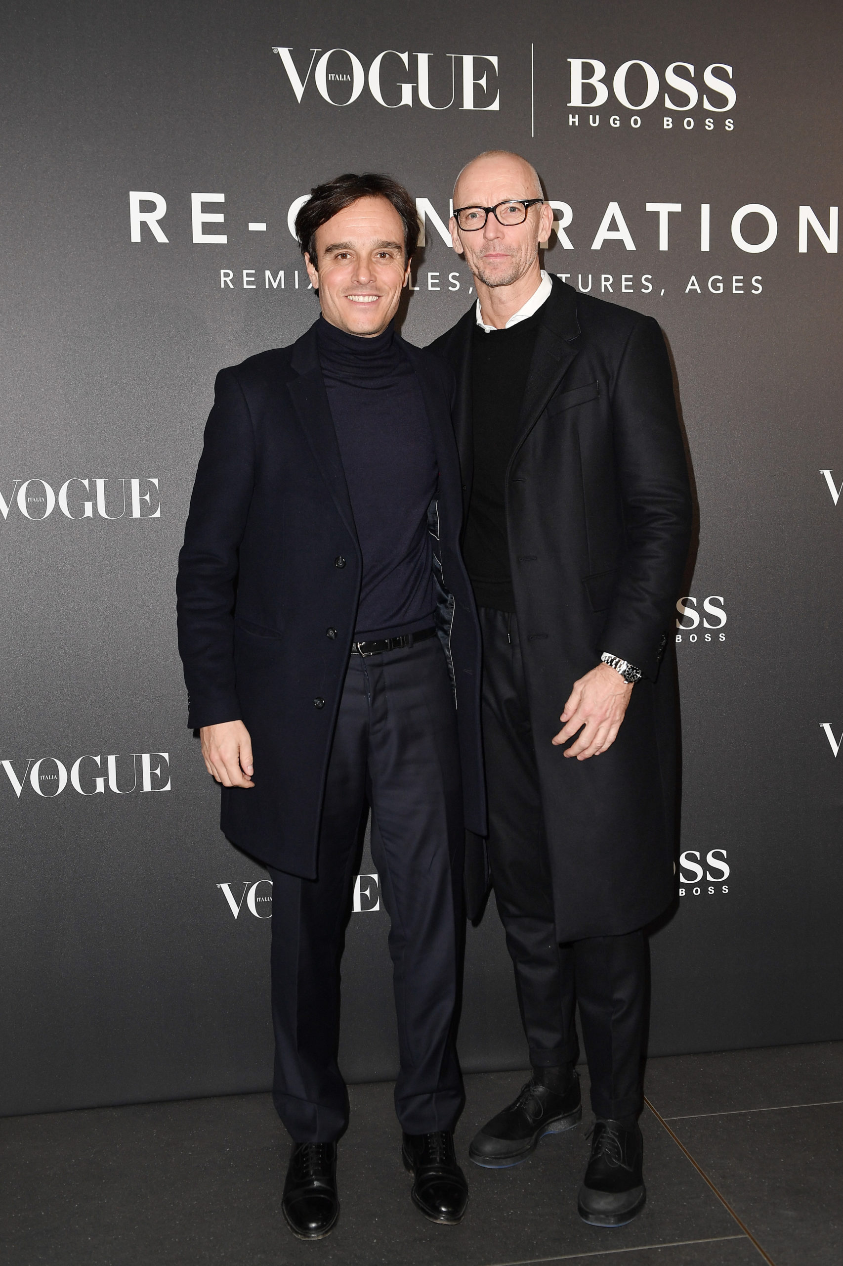 - MILAN, ITALY – FEBRUARY 21: Emanuele Farneti and Ingo Wilts arrive for the BOSS & VOGUE Italia Event at Hotel Viu Milan on February 21, 2020 in Milan, Italy. (Photo by Jacopo M. Raule/Getty Images for Boss)