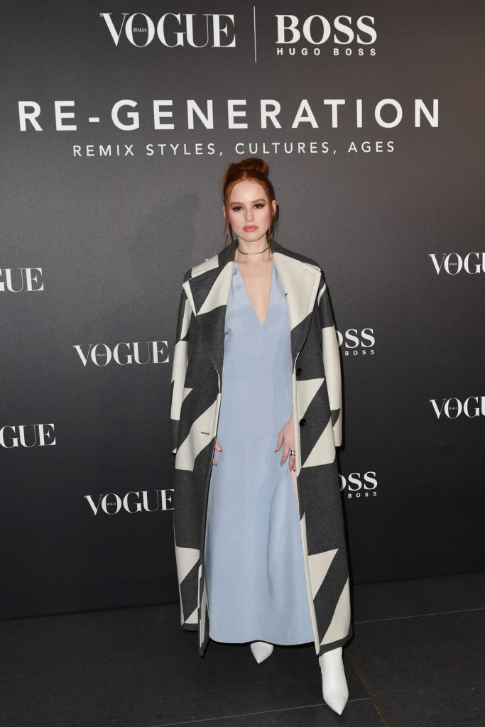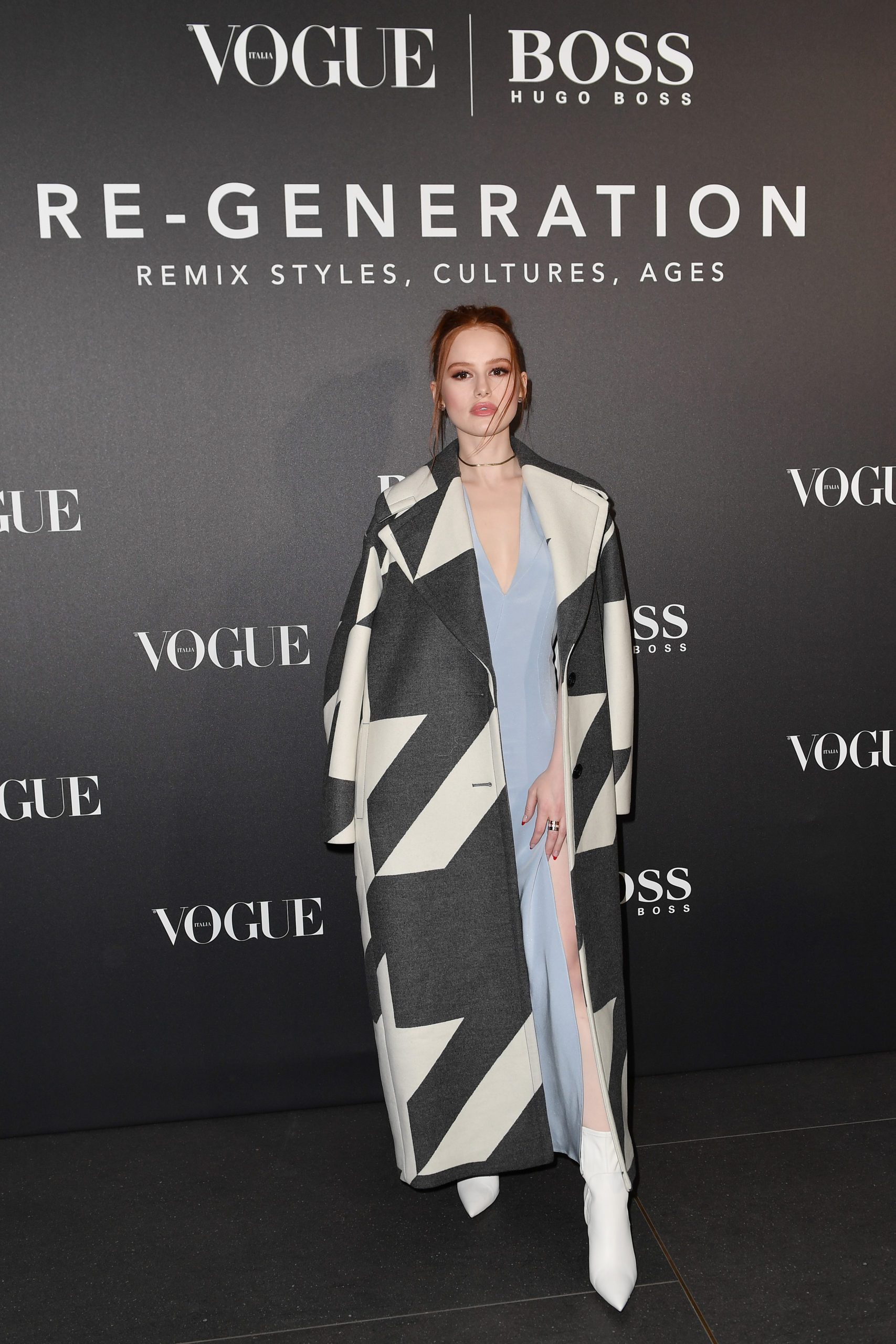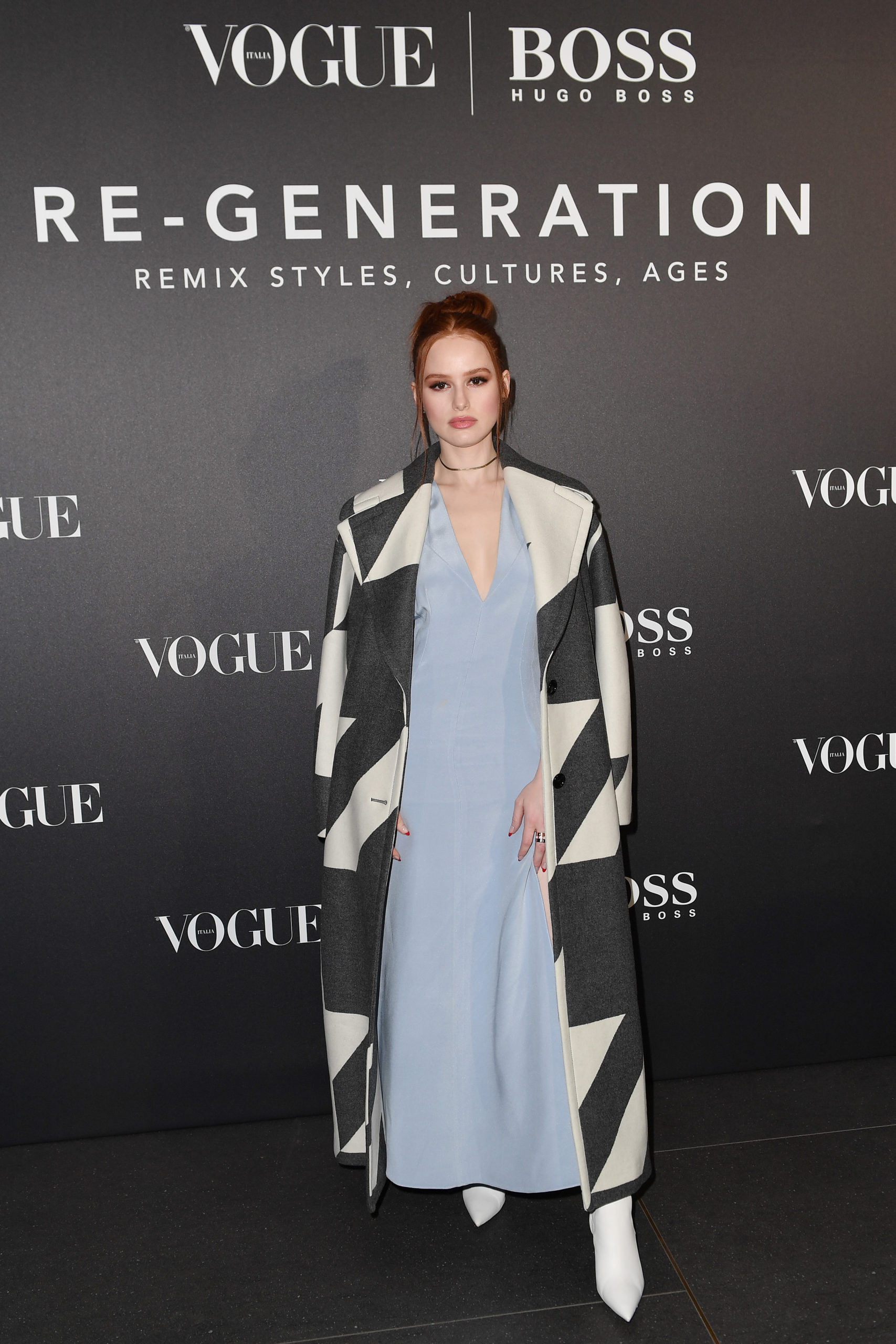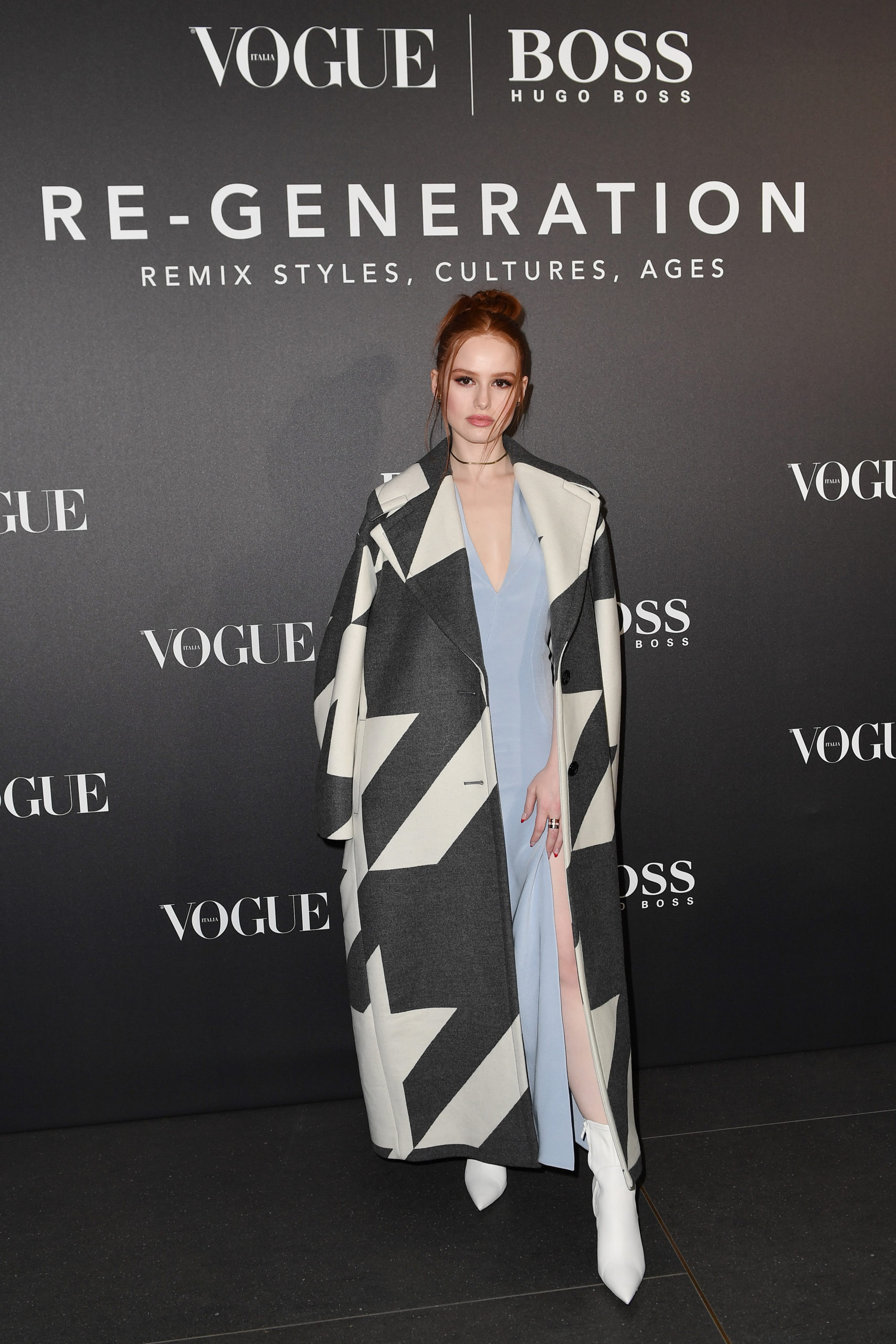 - MILAN, ITALY – FEBRUARY 21: Madelaine Petsch arrives for the BOSS & VOGUE Italia Event at Hotel Viu Milan on February 21, 2020 in Milan, Italy. (Photo by Jacopo M. Raule/Getty Images for Boss)