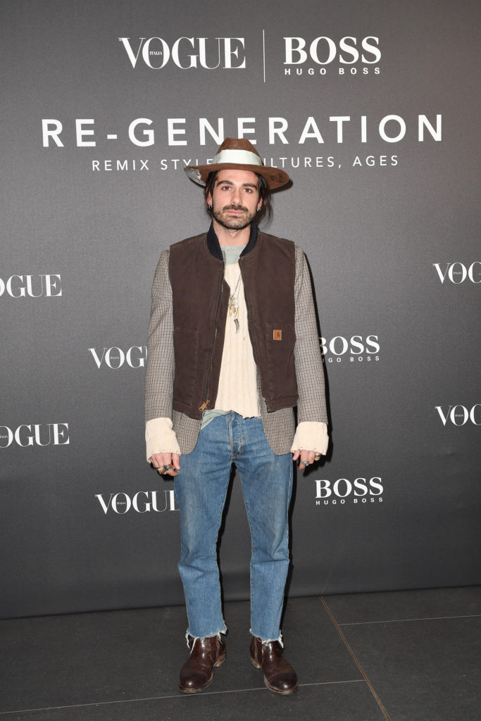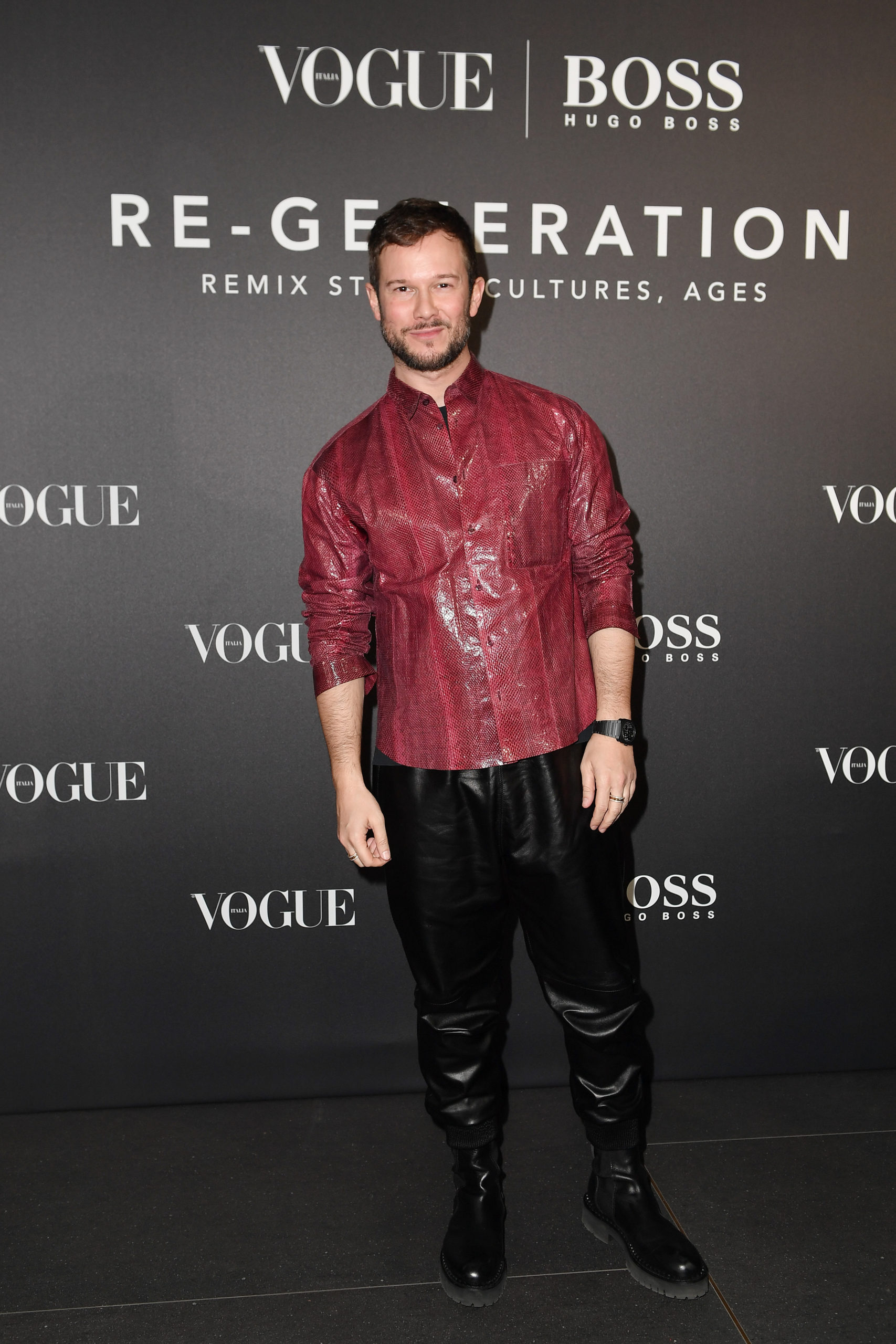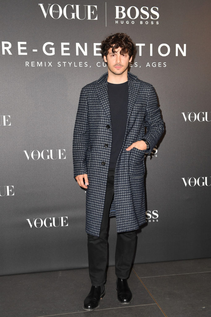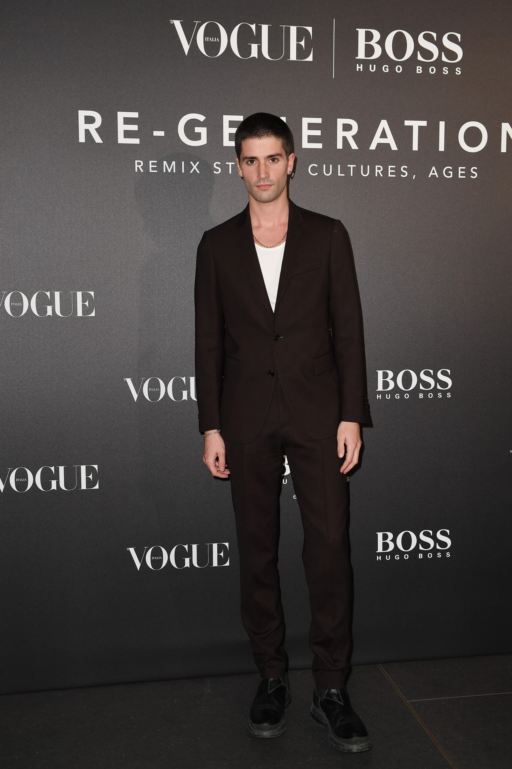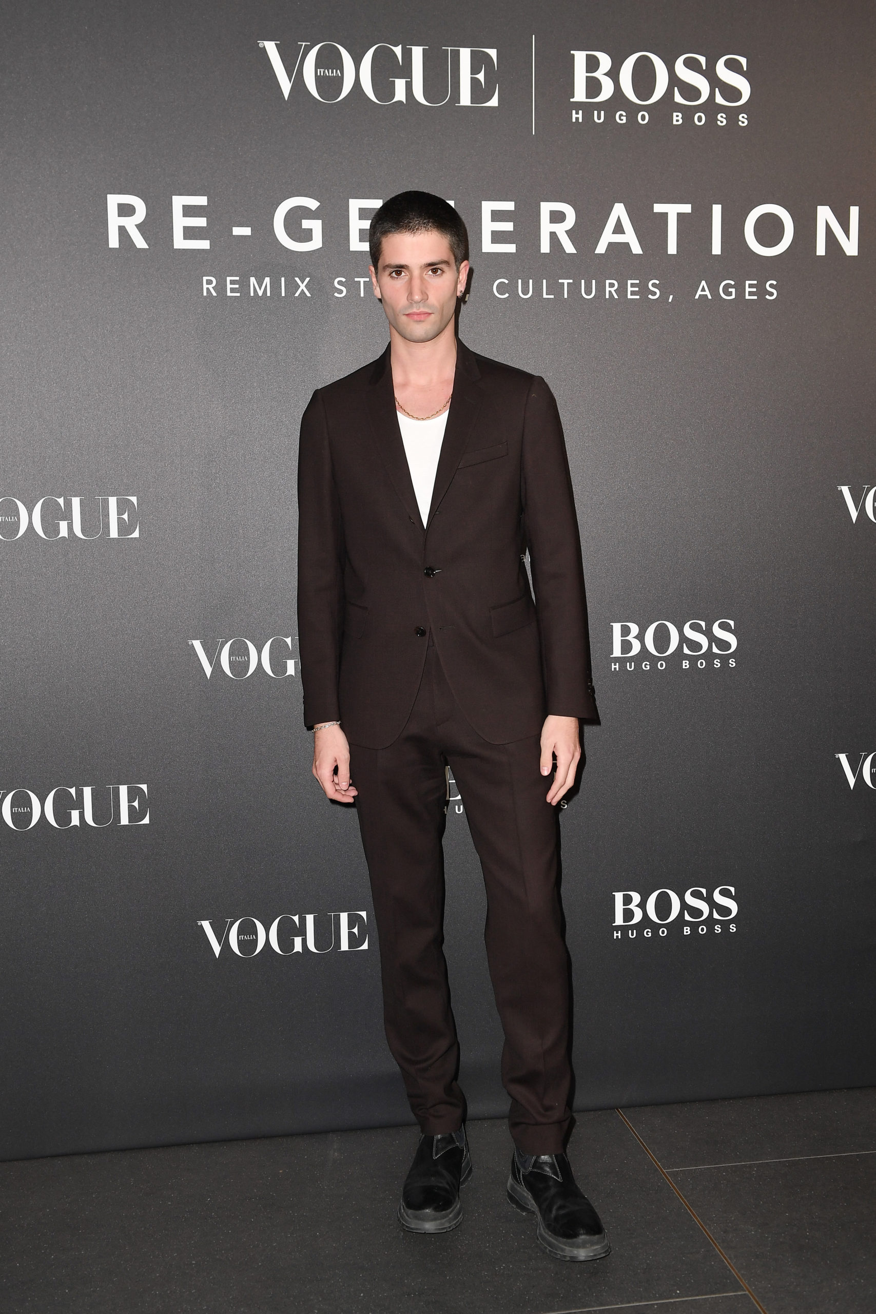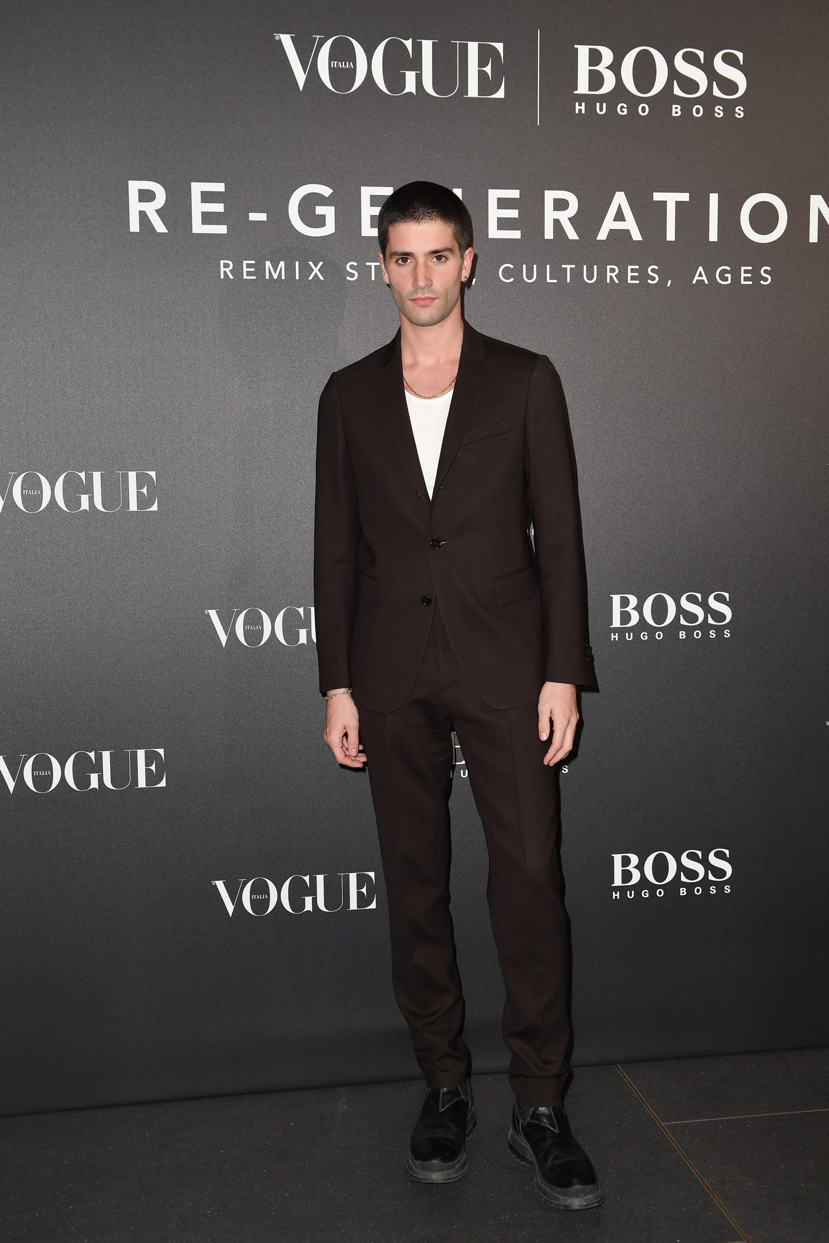- MILAN, ITALY – FEBRUARY 21: Giotto Calendoli arrives for the BOSS & VOGUE Italia Event at Hotel Viu Milan on February 21, 2020 in Milan, Italy. (Photo by Jacopo M. Raule/Getty Images for Boss)