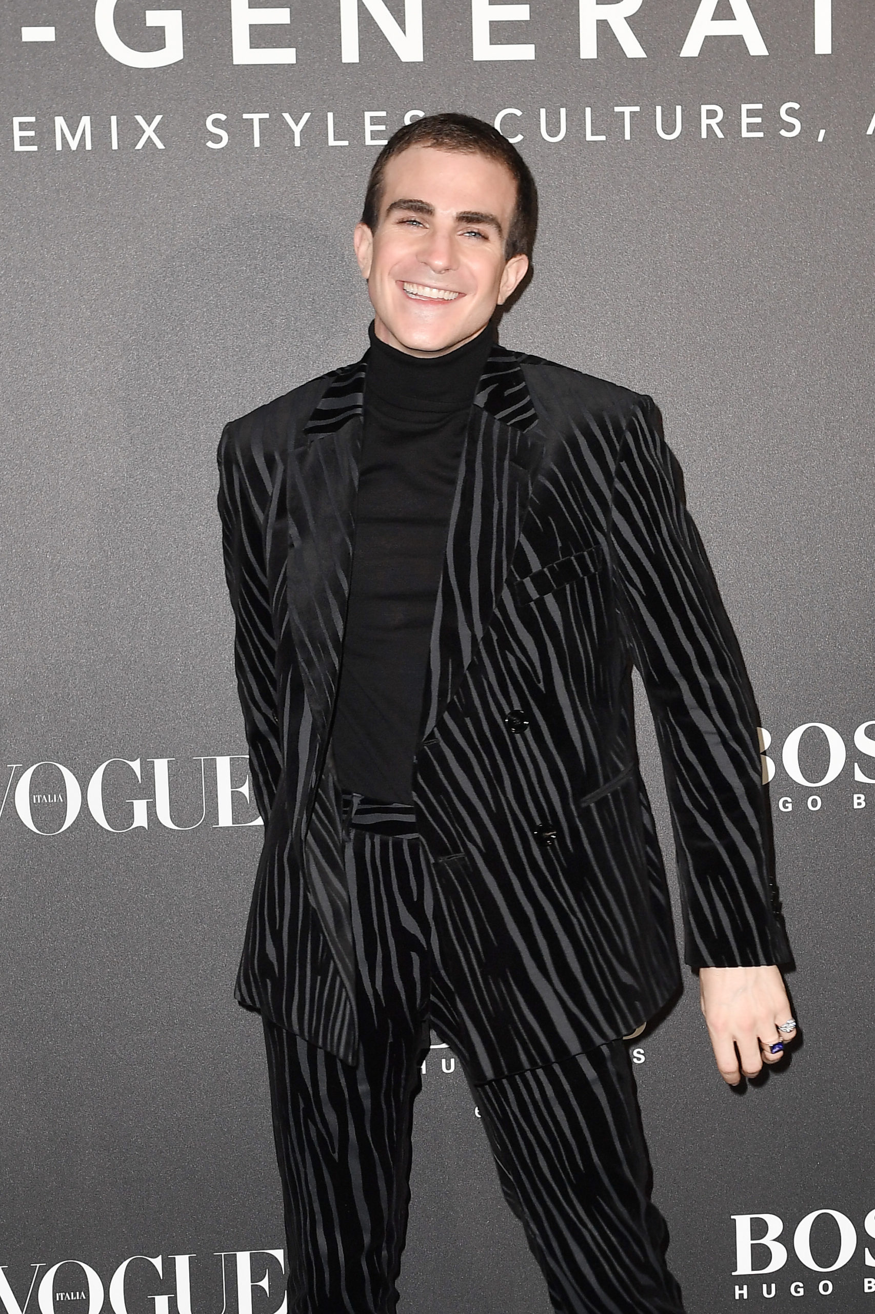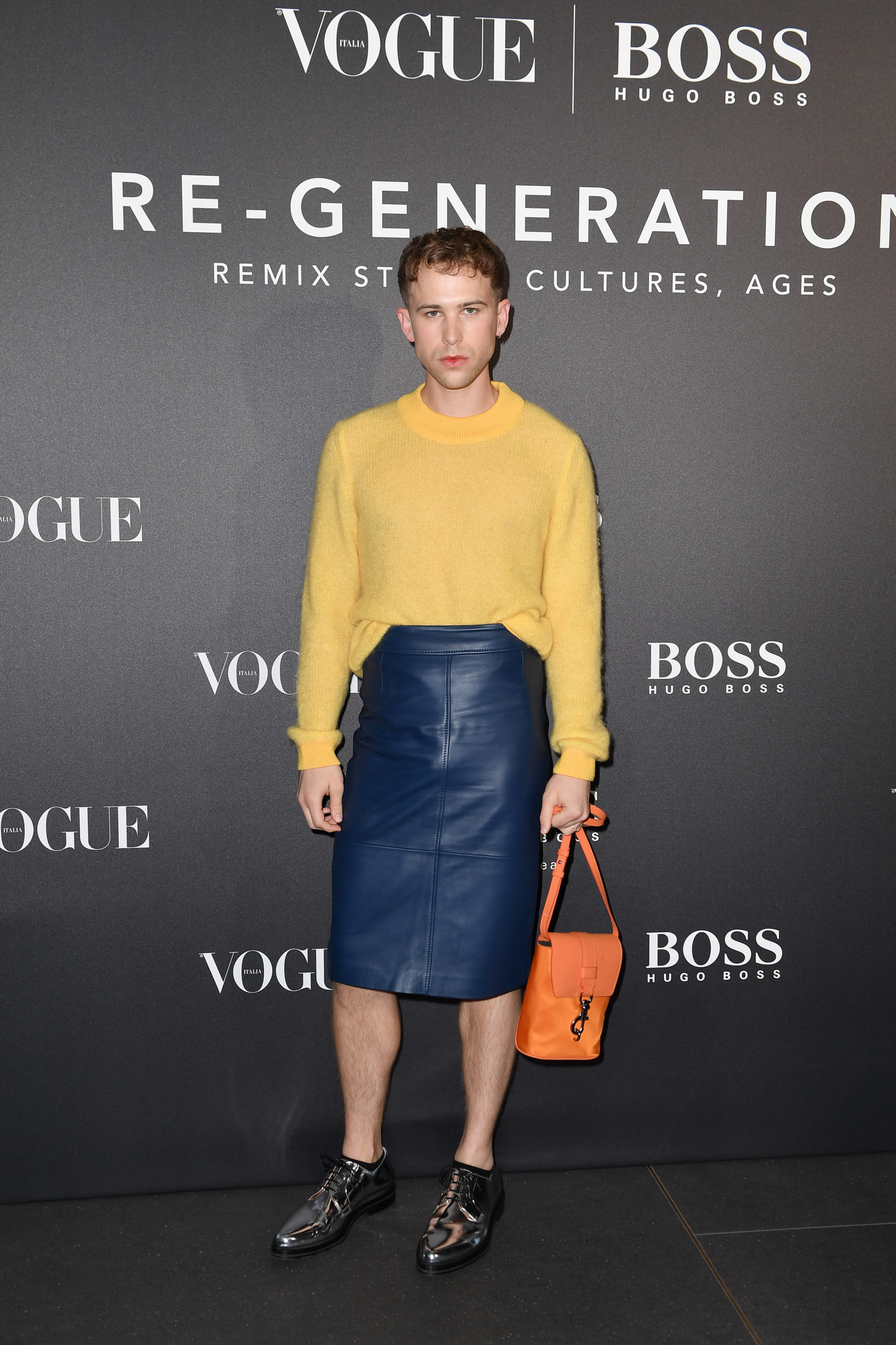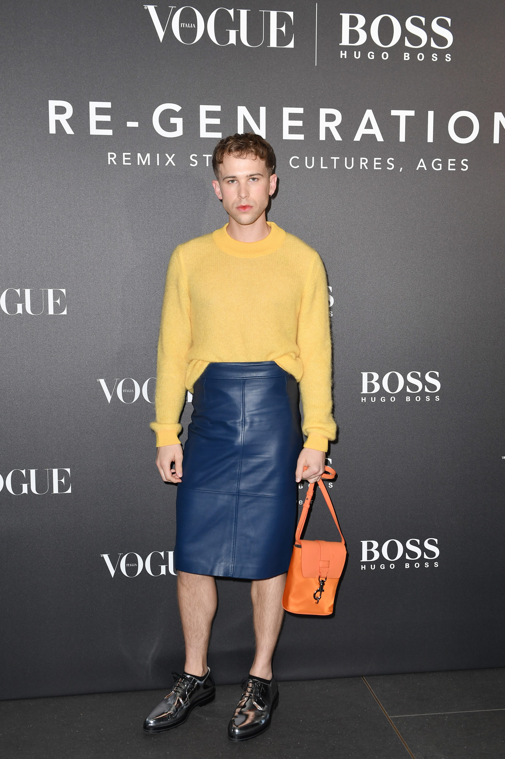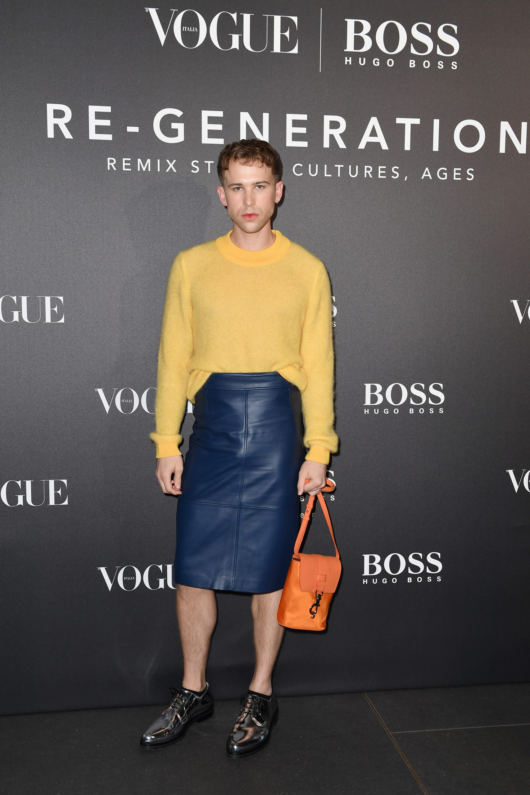 - MILAN, ITALY – FEBRUARY 21: Tommy Dorfman arrives for the BOSS & VOGUE Italia Event at Hotel Viu Milan on February 21, 2020 in Milan, Italy. (Photo by Jacopo M. Raule/Getty Images for Boss)