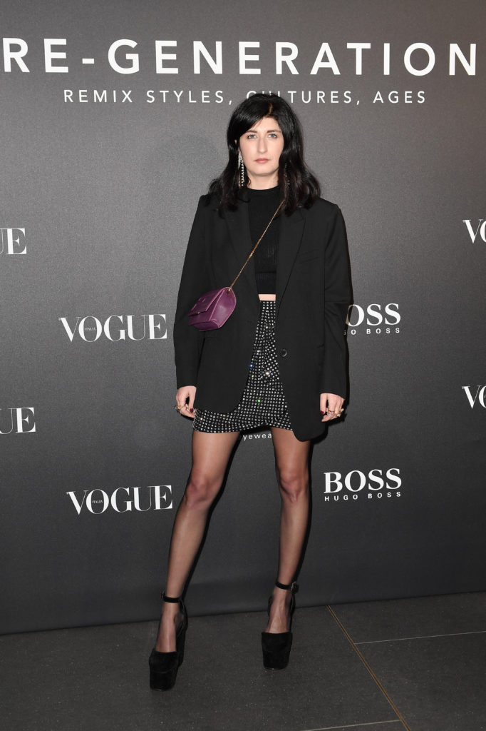 - MILAN, ITALY – FEBRUARY 21: Alessia Glaviano arrives for the BOSS & VOGUE Italia Event at Hotel Viu Milan on February 21, 2020 in Milan, Italy. (Photo by Jacopo M. Raule/Getty Images for Boss)