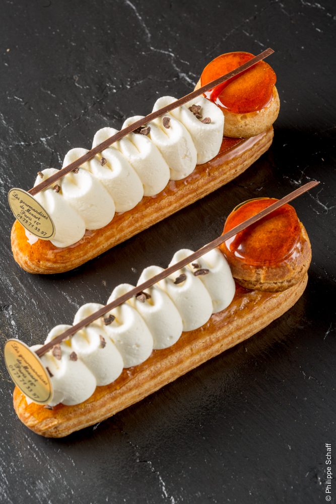 LES ÉCLAIRS DE MARIUS SONT « FAITS MAISON », FABRIQUÉS PAR DEUX PÂTISSIERS DÉDIÉS. SÉBASTIEN ET ANTHONY CONÇOIVENT CES DOUCEURS DANS LE LABORATOIRE DE CHACUNE DES BOULANGERIES-PÂTISSERIES, TOUJOURS À BASE DE PRODUITS FRAIS, DE SAISON, ET JAMAIS CONGELÉS.