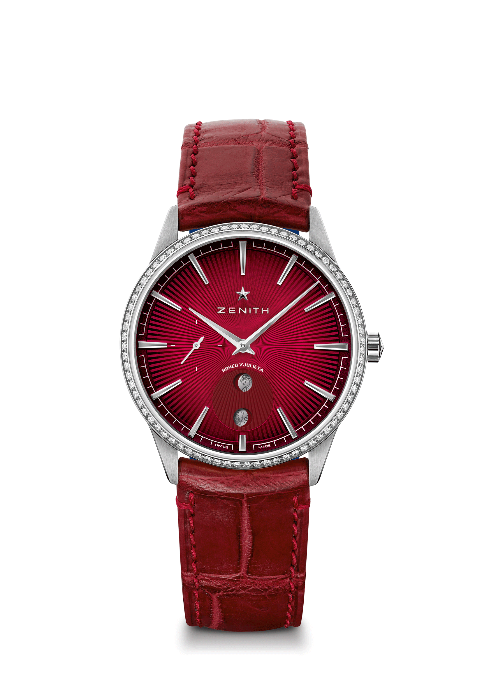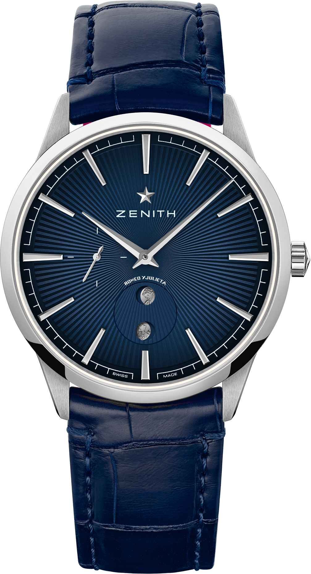 À travers la somptueuse création, Zenith a cherché à donner un caractère fantaisiste et romantique à son intemporelle Elite Moonphase. Ces éditions spéciales Elite en acier avec un boitier de 40,5 mm de diamètre pour la « Romeo » et de 36 mm avec lunette sertie de diamants pour la « Julieta ».