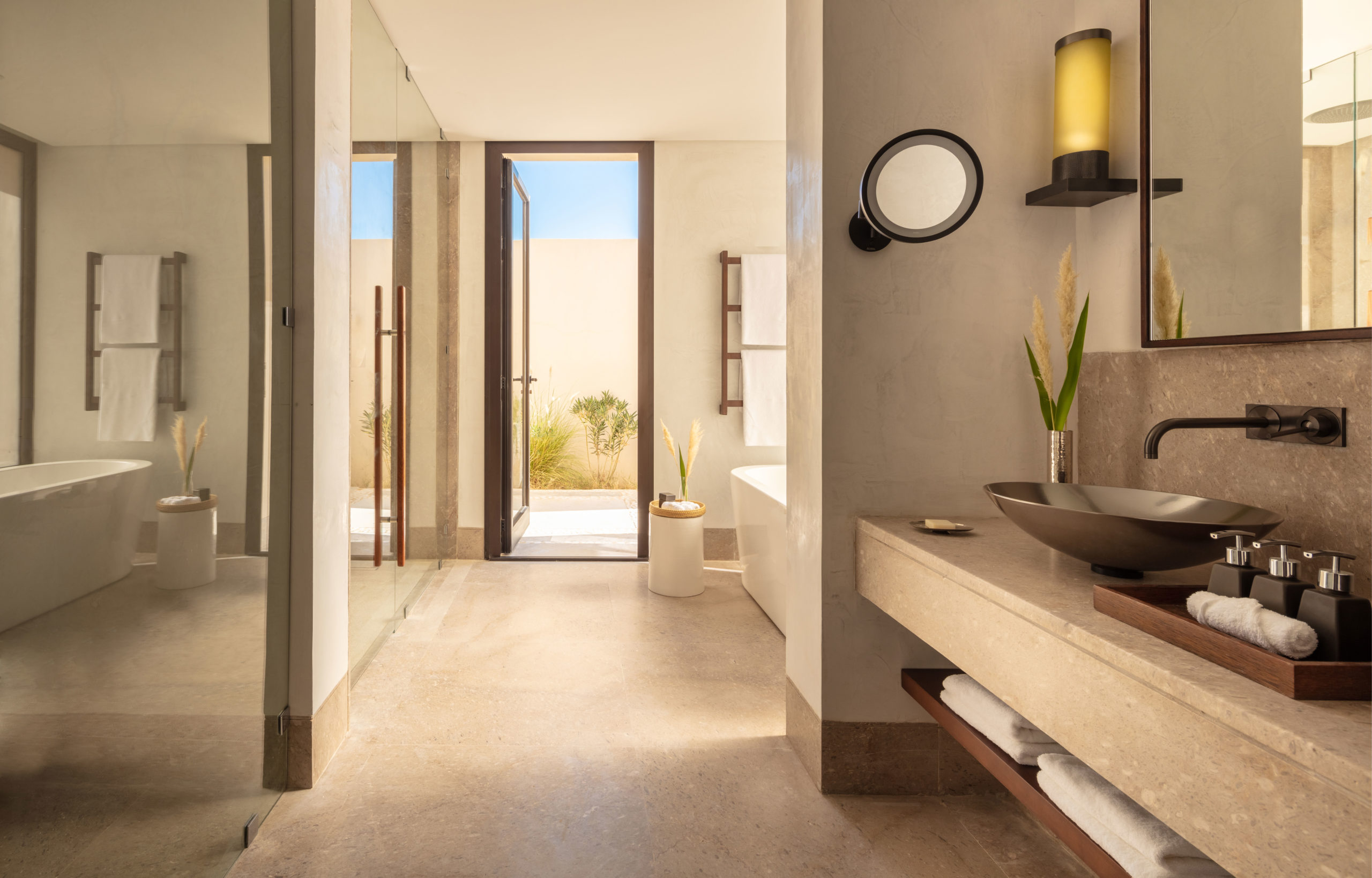 Des villas privatises offrent des instants hors du temps avec, dans chacune d’entre elle, une piscine à débordement disposée le long de sentiers de tissage parmi des cours paysagées, dévoilant des panoramas sans fin sur le célèbre Chott el Djerid de la région.