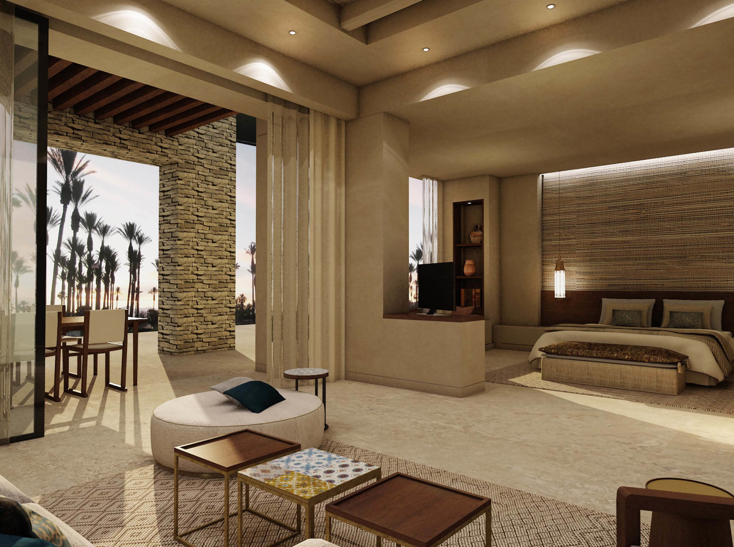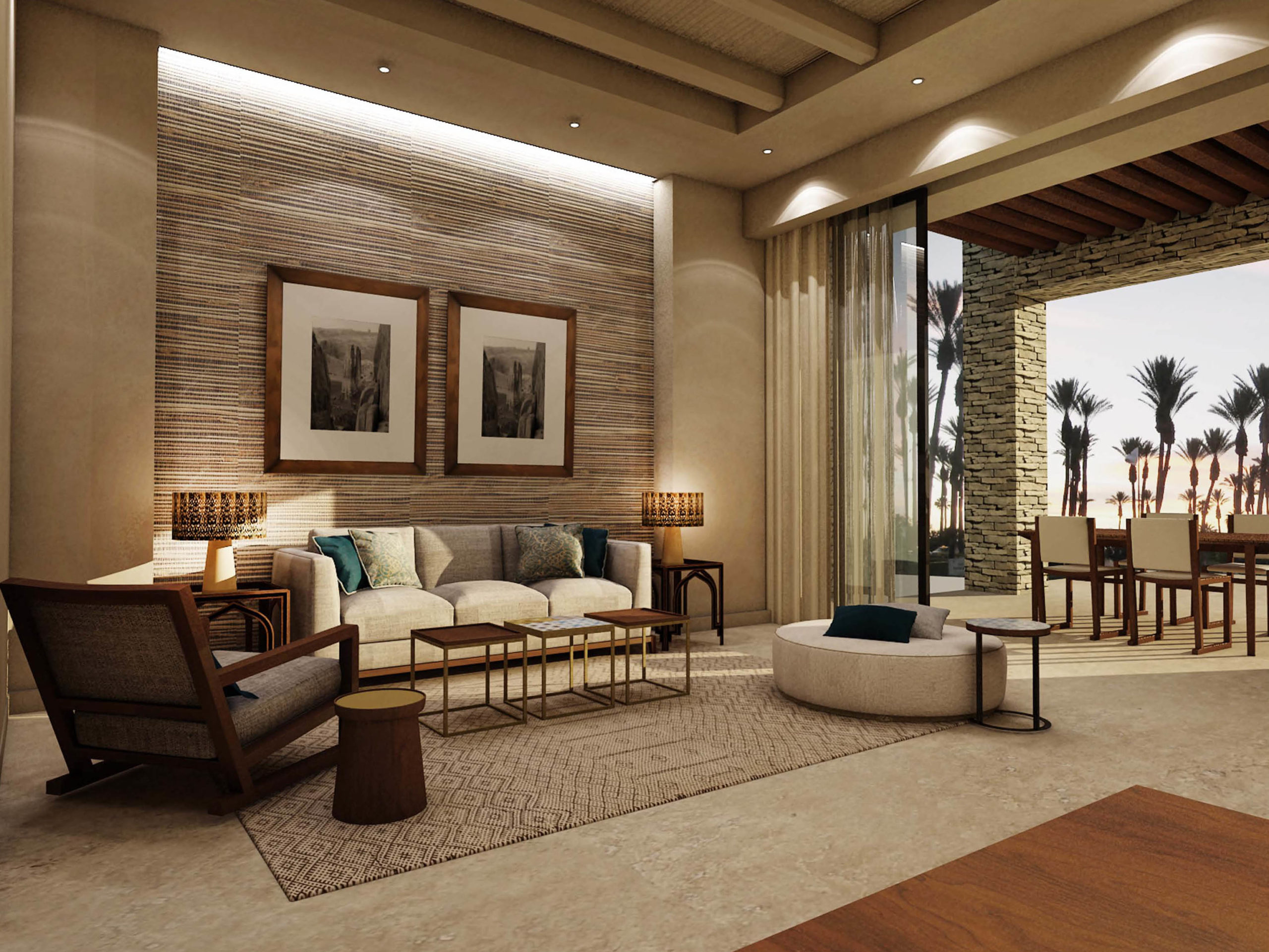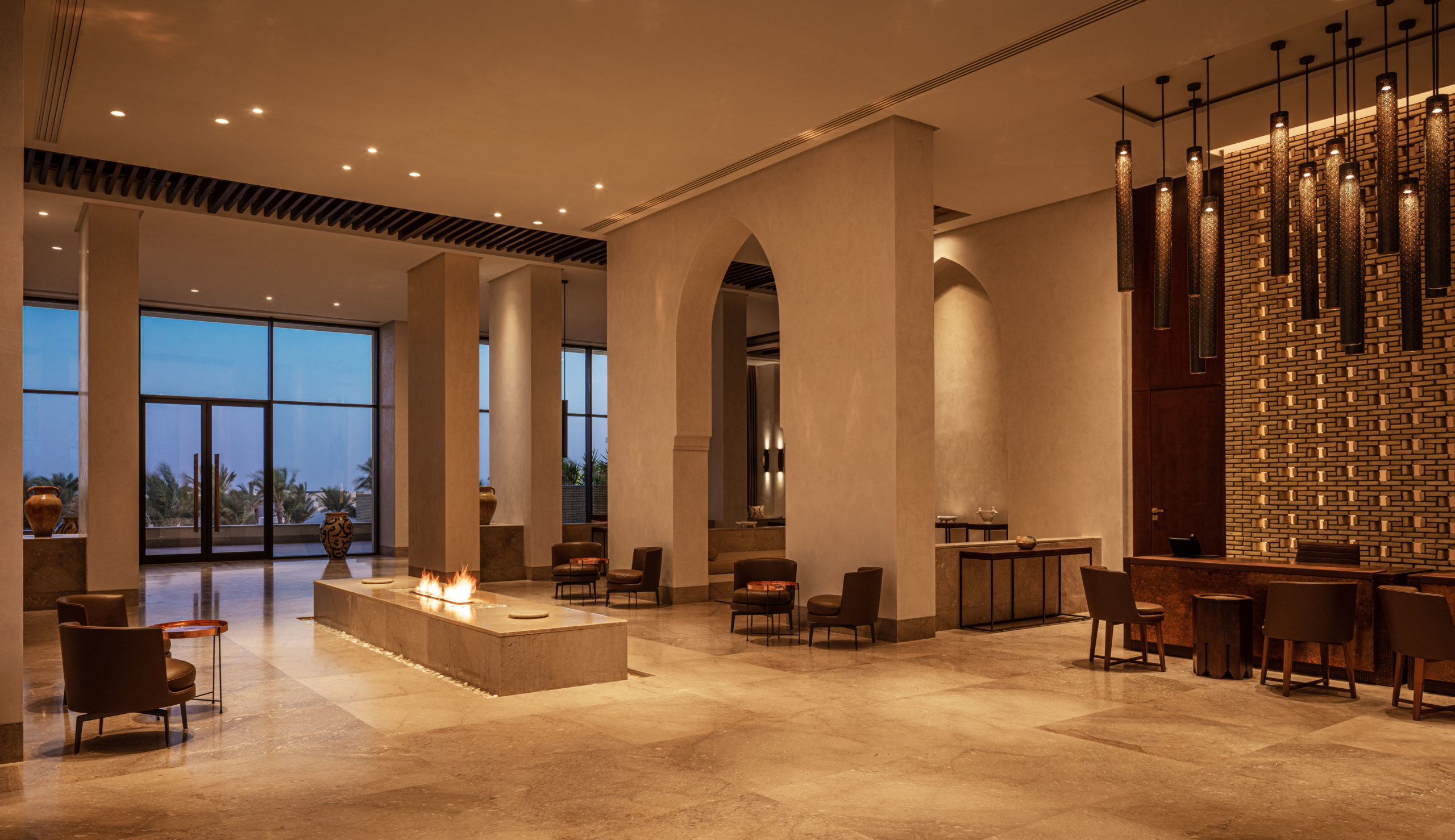 Anantara Tozeur Resort représente le luxe raffiné par excellence. La décoration des lieux nous transporte avec un subtil mariage de motifs berbères, de mobilier traditionnel, de matériaux, textures et couleurs désertiques. Chaque détail, des motifs du sol en marbre aux paravents en bois incrustés, en passant par l’éclairage traditionnel découpé et les œuvres d’art met en valeur le riche patrimoine de la Tunisie.