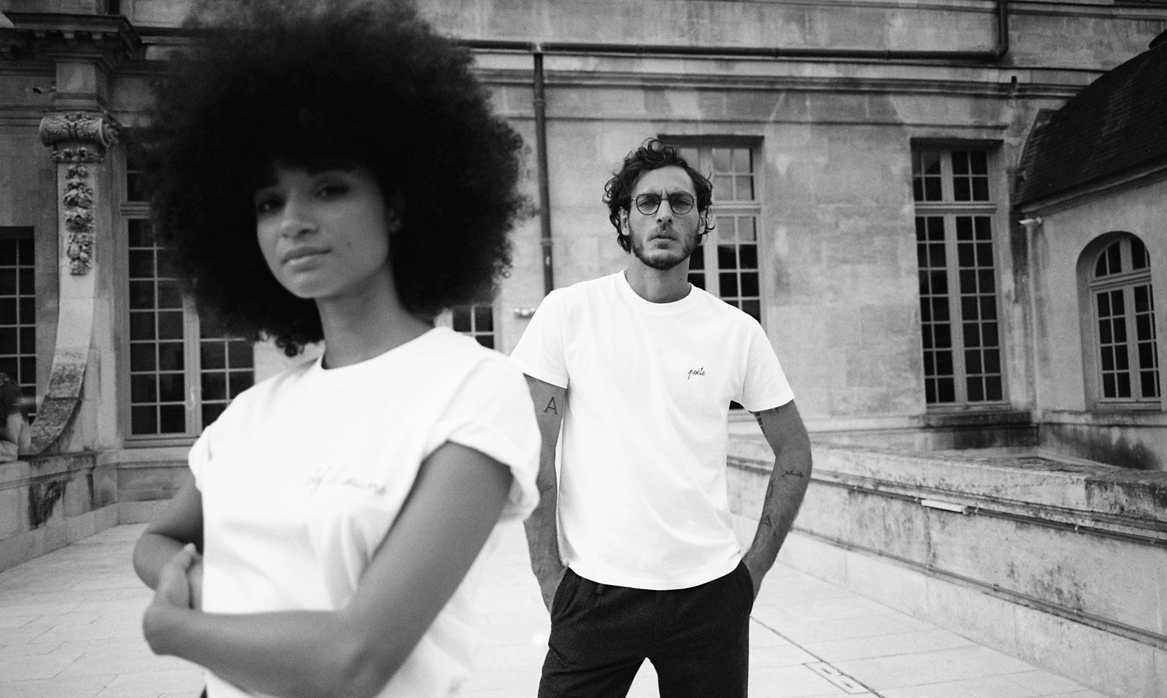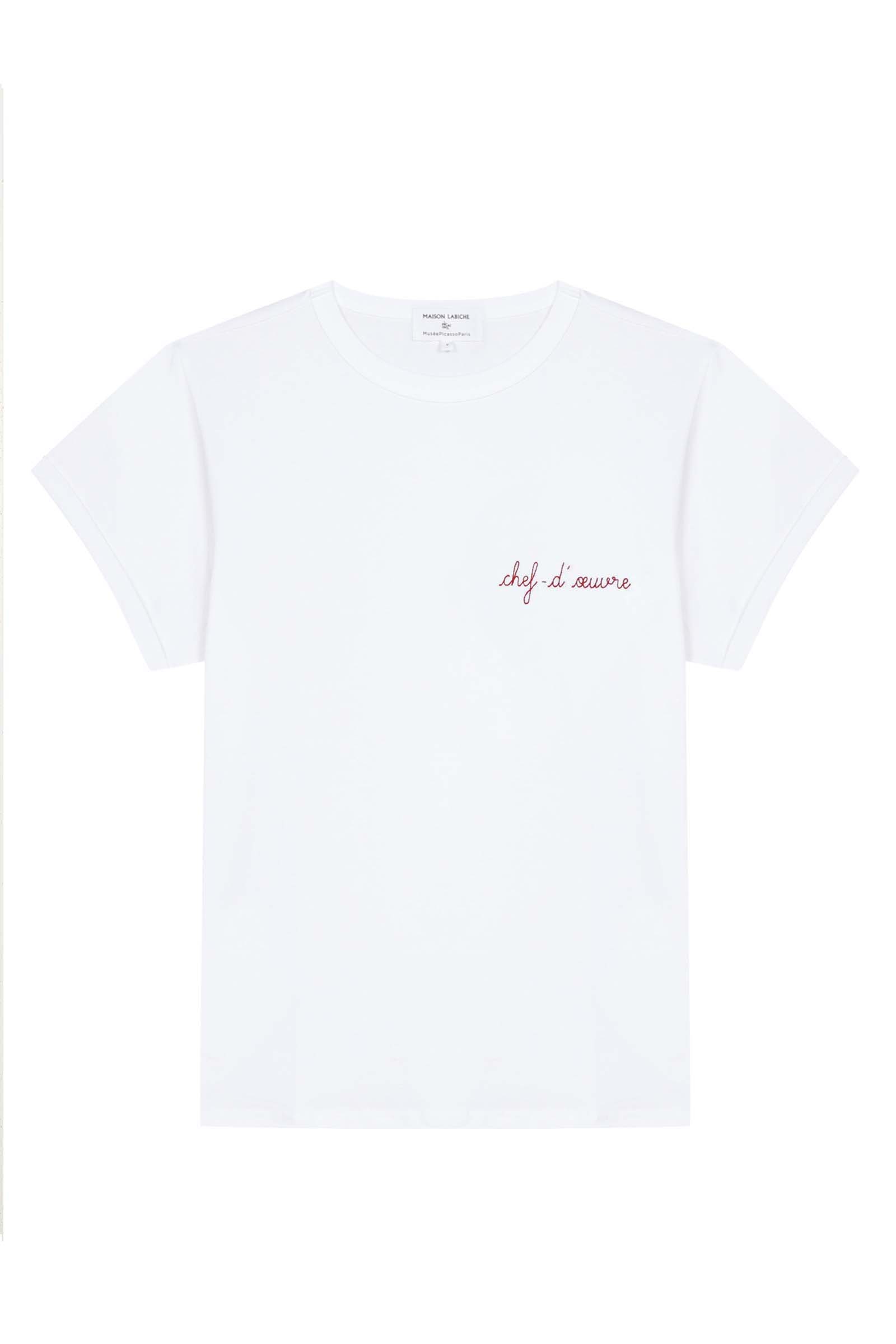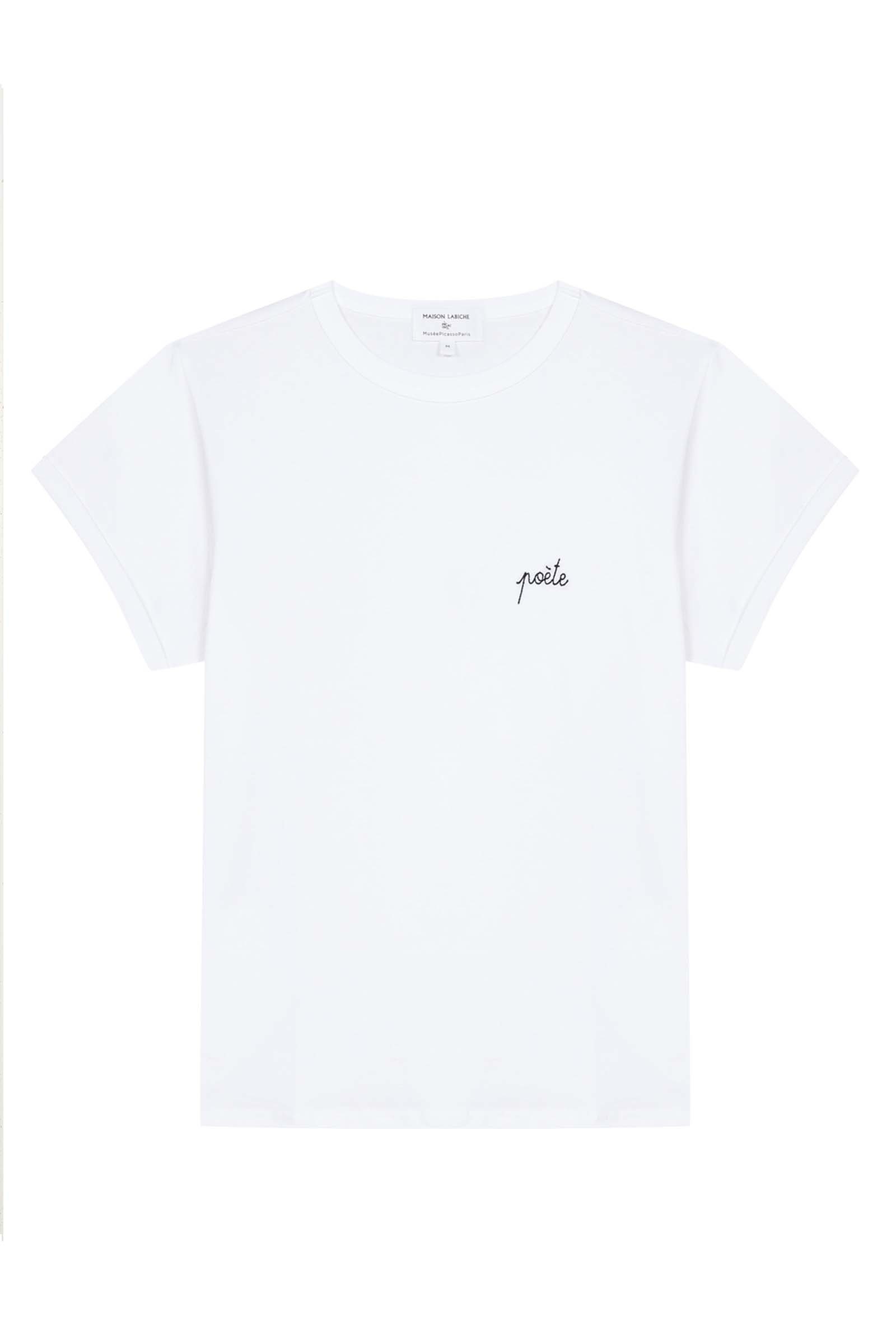 Rencontre de l’art et du prêt-à-porter parisien, Maison Labiche, connue pour son iconique tee-shirt brodé, met à l’honneur son savoir-faire et brode deux tee-shirts des messages « Poète » et « Chef-d’oeuvre ».