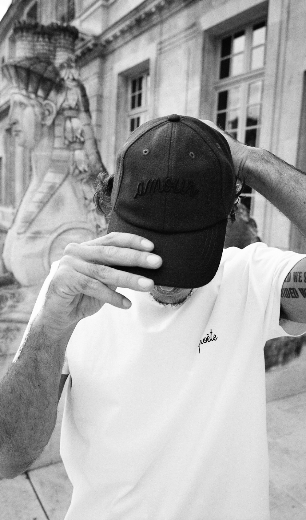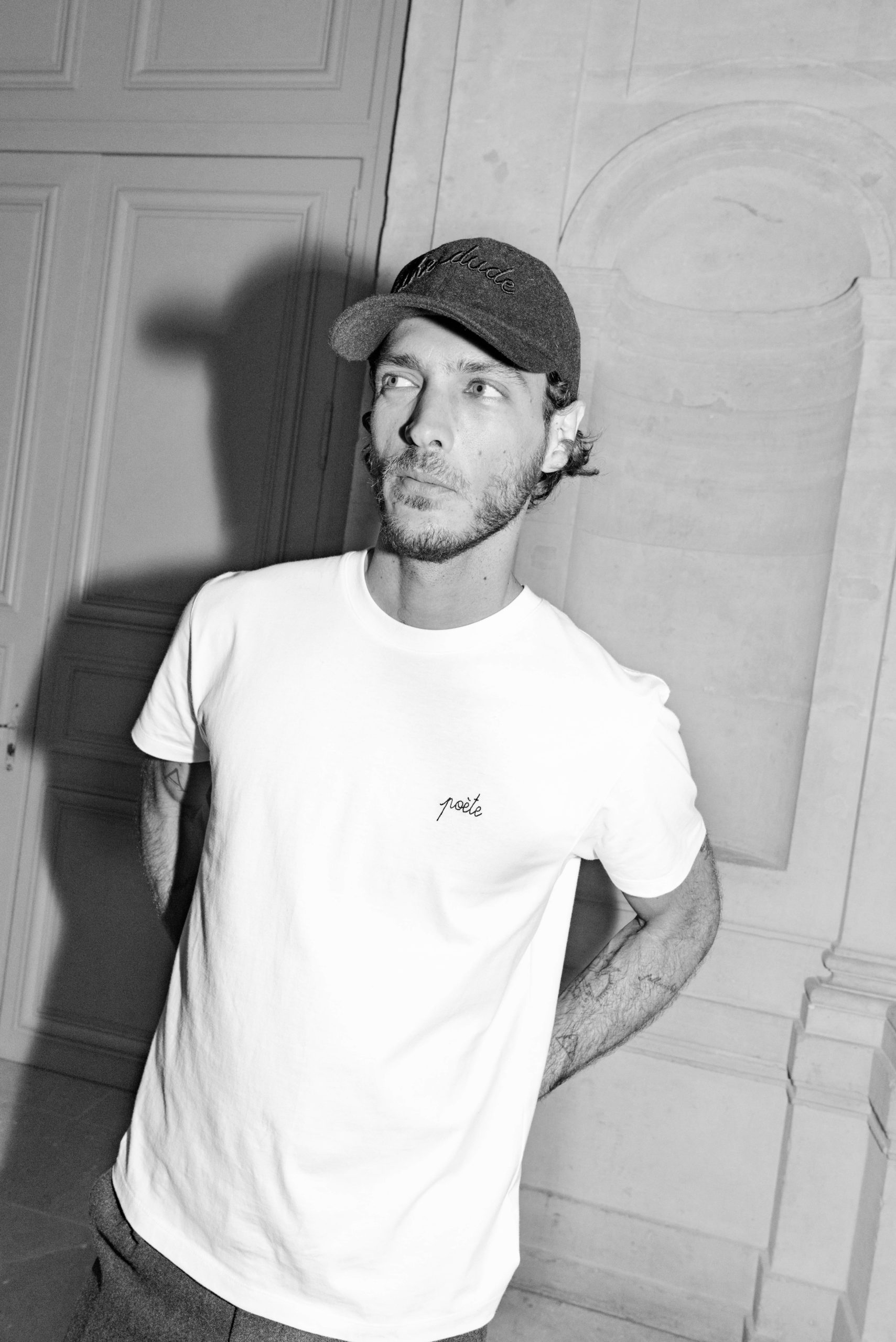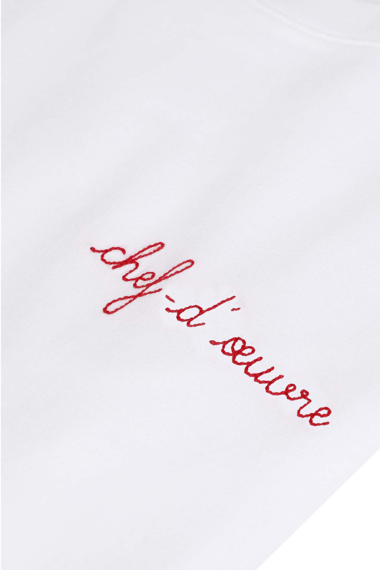 Rencontre de l’art et du prêt-à-porter parisien, Maison Labiche, connue pour son iconique tee-shirt brodé, met à l’honneur son savoir-faire et brode deux tee-shirts des messages « Poète » et « Chef-d’oeuvre ».
