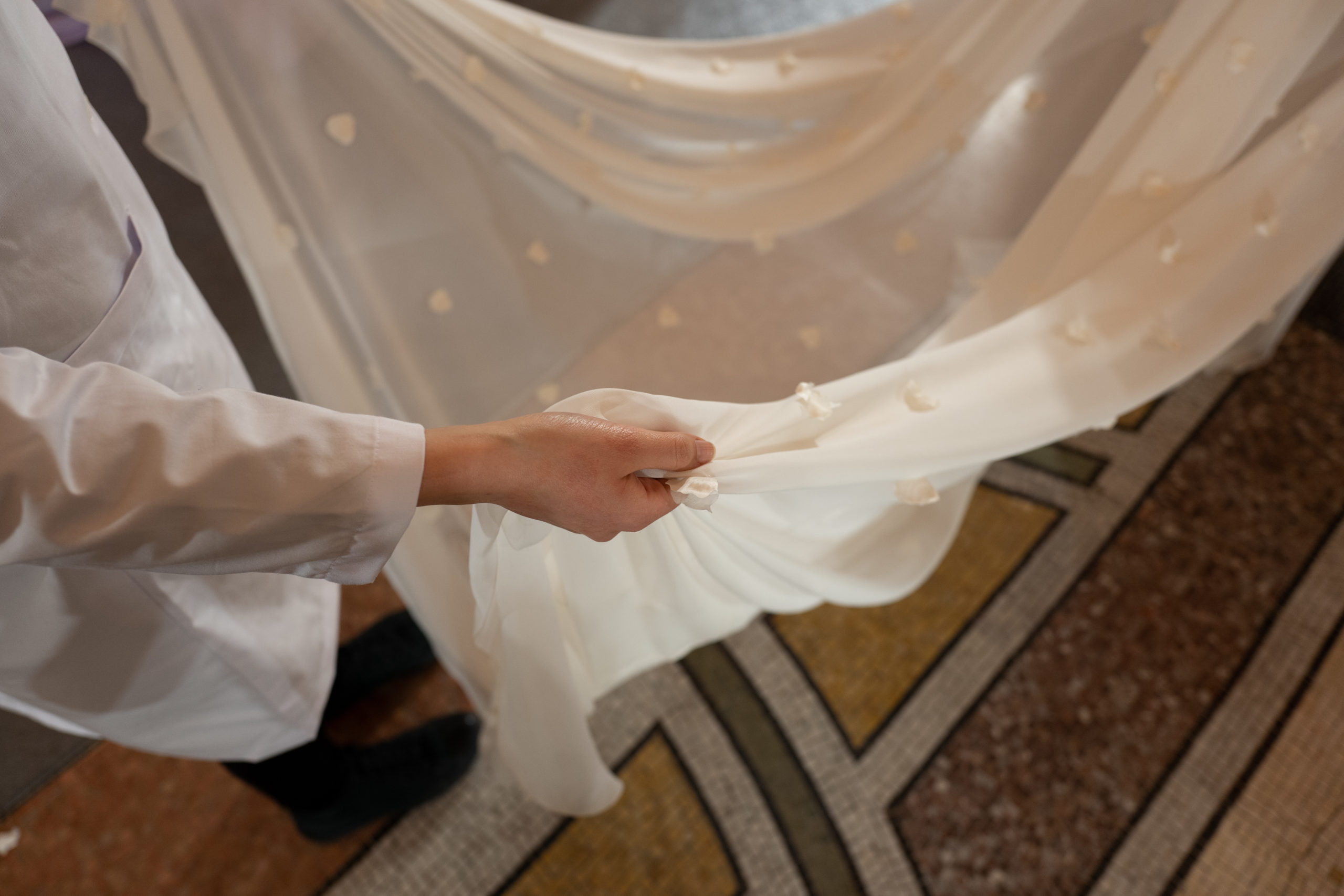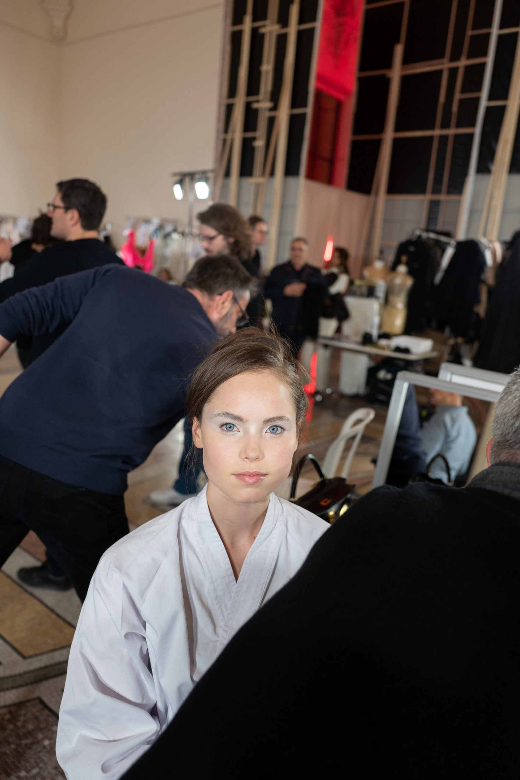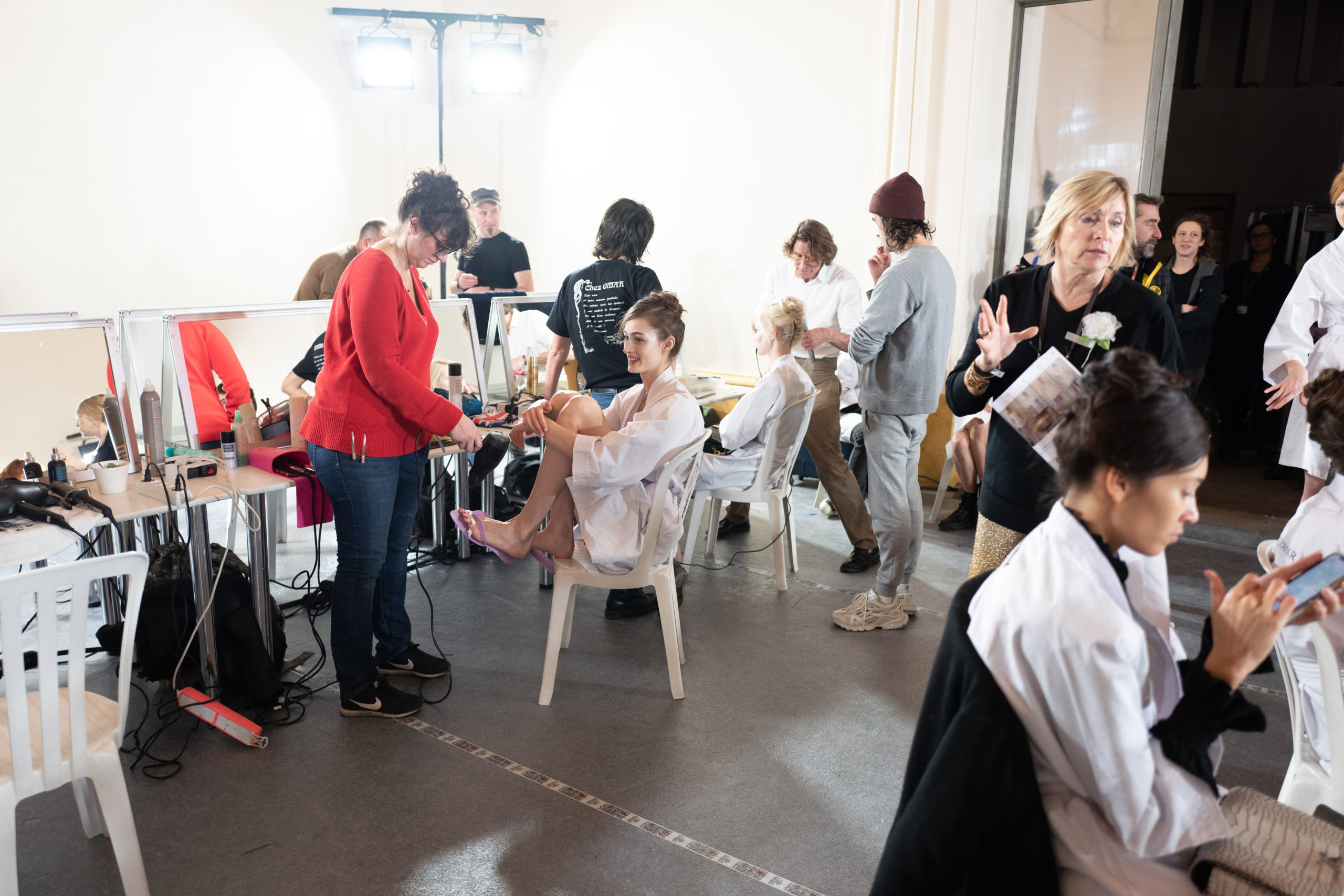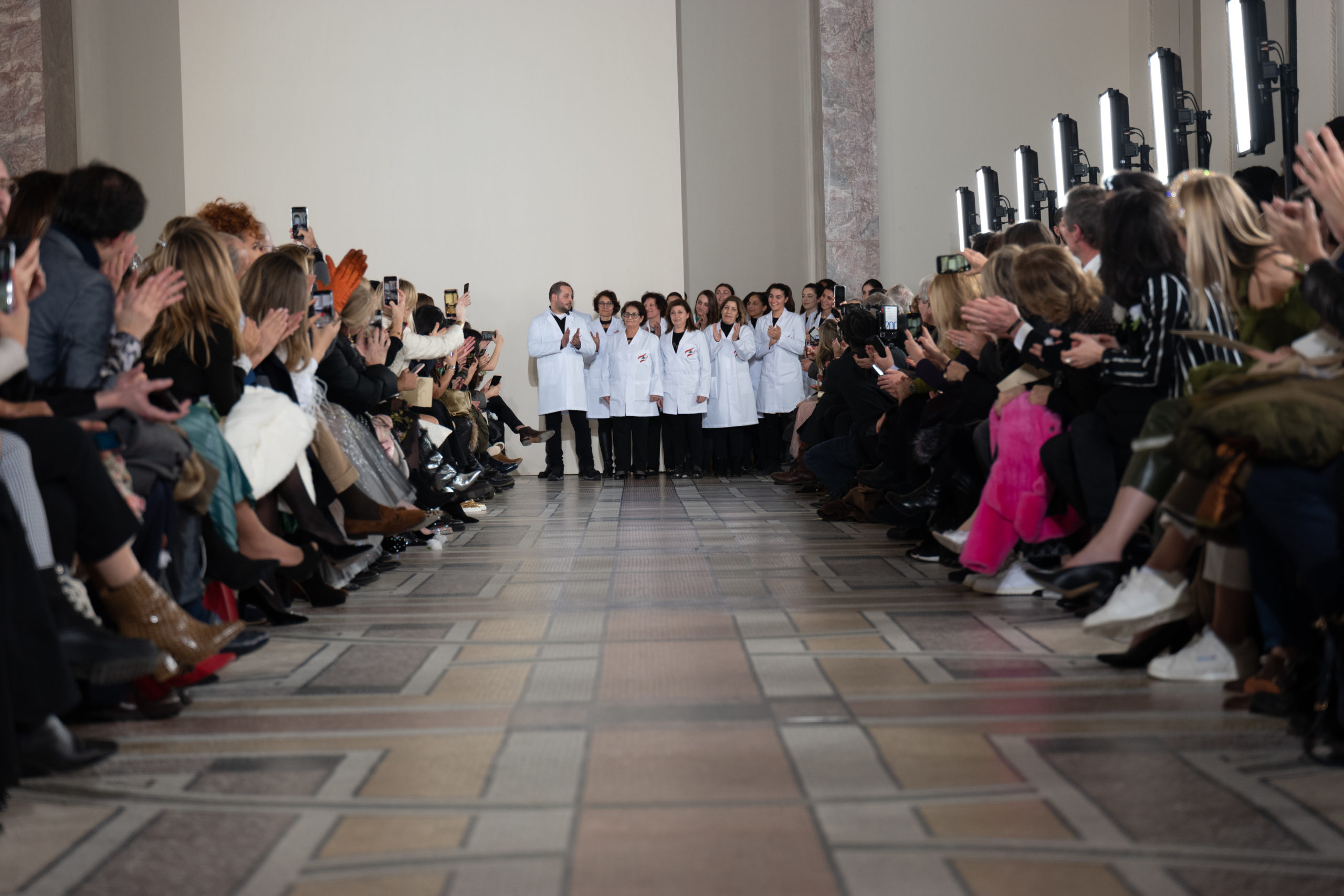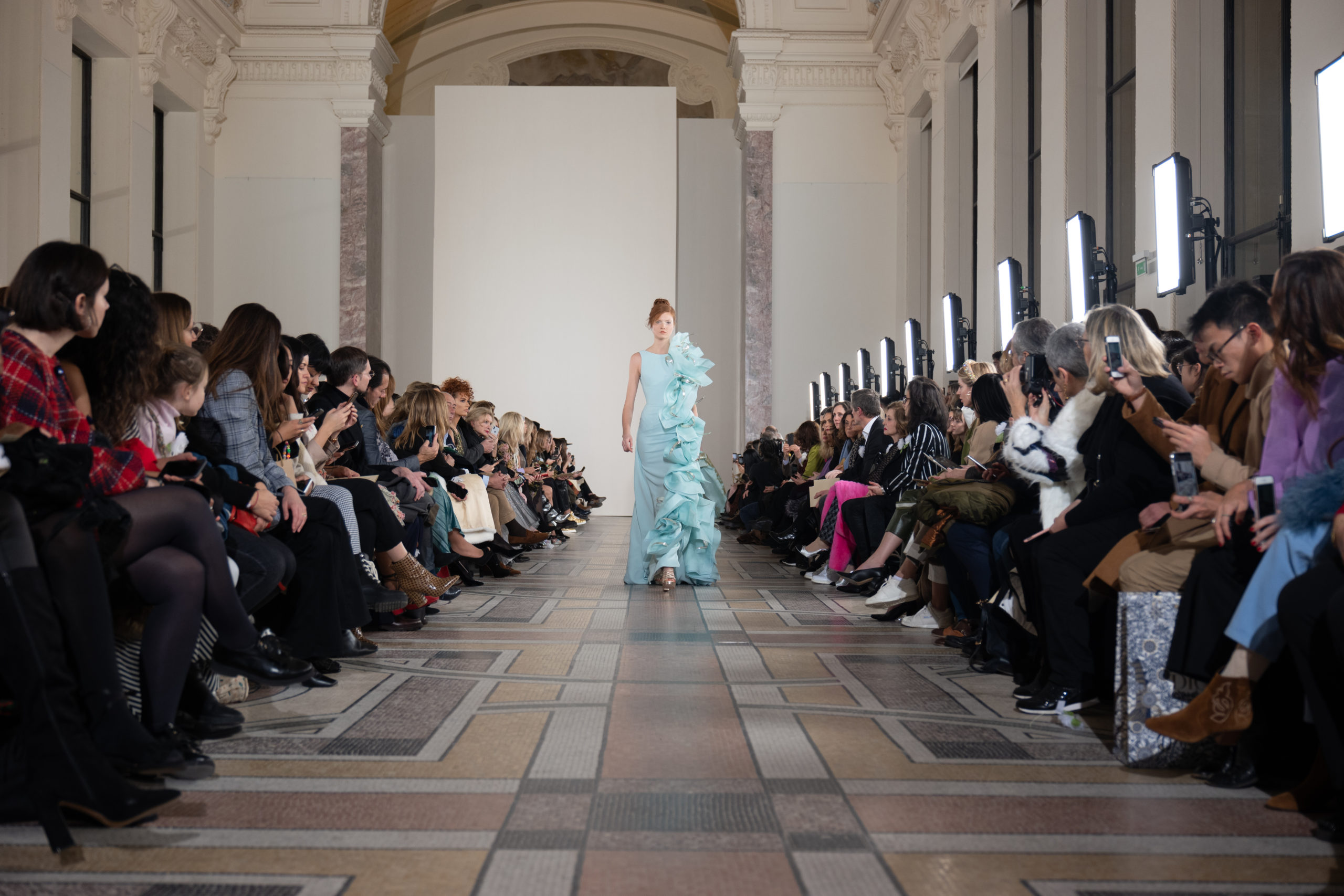 Celui-ci touche autant sa propre famille que toutes celles des membres de sa Maison et de ses ateliers, qui pour la première fois seront présents sur le podium à la fin du défilé. La rose blanche remise à chaque invité incarne ce soutien à un changement pacifique au Pays du Cèdre. Le motif floral cher à Georges Chakra est une trame qui parcourt également l’ensemble de la collection. Aux nombreuses silhouettes immaculées comme autant de pages vierges sur lesquelles écrire une nouvelle histoire répondent une petite robe entièrement réalisée en pétales ivoire, une tenue en tulle entièrement rebrodée de roses, une fleur généreuse posée sur une mini robe en satin duchesse rose fluorescent, comme ces roses peintes une à une à la main sur le gazar d’une longue robe fendue. Les voiles et les transparences nimbent la collection d’un raffinement vaporeux, contrastant avec un travail sophistiqué de volumes. D’un côté, la géométrie épurée d’une robe-boule, les broderies origami et des plissés mouchoirs quasi algorithmiques. De l’autre, les bustiers qui embrassent le corps, les dos qui se dévoilent, la fluidité des capes et des traînes, les volutes des étoffes éclaboussées de plumes, rebrodées à la main de paillettes et de sequins, la sensualité du crêpe et de l’organza plissé. Ce jeu de contraires dégage une énergie particulière, dopée par un jeu de tailles tour à tour ultra longues et extra courtes, convoquant un imaginaire de tapis rouge autant que les podiums disco des années 1970. Blanc, mais aussi rose éclatant ou poudré, aigue-marine, menthe à l’eau, bleu lagon, ciel ou glacier, iridescentes nacrées sur fond d’imprimé végétal… La palette de couleurs évoque une nature fantastique, entre forêt luxuriante et fantasme d’une île tropicale où le temps serait toujours au grand beau et où l’on récolterait des perles aux teintes indéfinissables. Les éclats d’or et d’argent viennent exalter la moire d’un tissu ou réveiller le mat précieux d’une étoffe. Mais cet Éden couture est pugnace, comme le rappellent les flammes dévorant une robe longue à encolure bateau et les souliers plus plats qu’à l’accoutumée, dont ces spartiates à la féminité combattive. Georges Chakra a souhaité aussi s’engager de manière concrète auprès des organisations qui lui tiennent à cœur. Scintillant au cou de la mariée, l’imposant collier en émeraudes et diamants spécialement réalisé par le joaillier Fawaz Gruosi sera mis en vente et une partie de cette vente sera reversée au profit du Children Cancer Hospital de Beyrouth et des bourses d’études de l’école Saint Vincent de Paul.