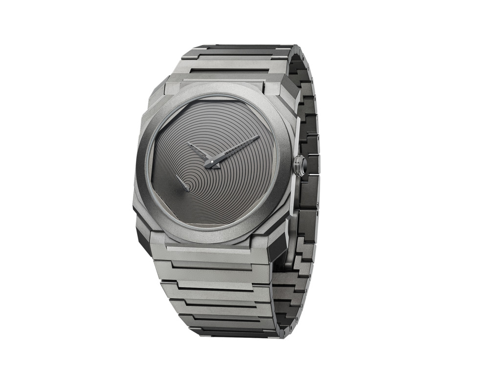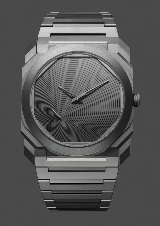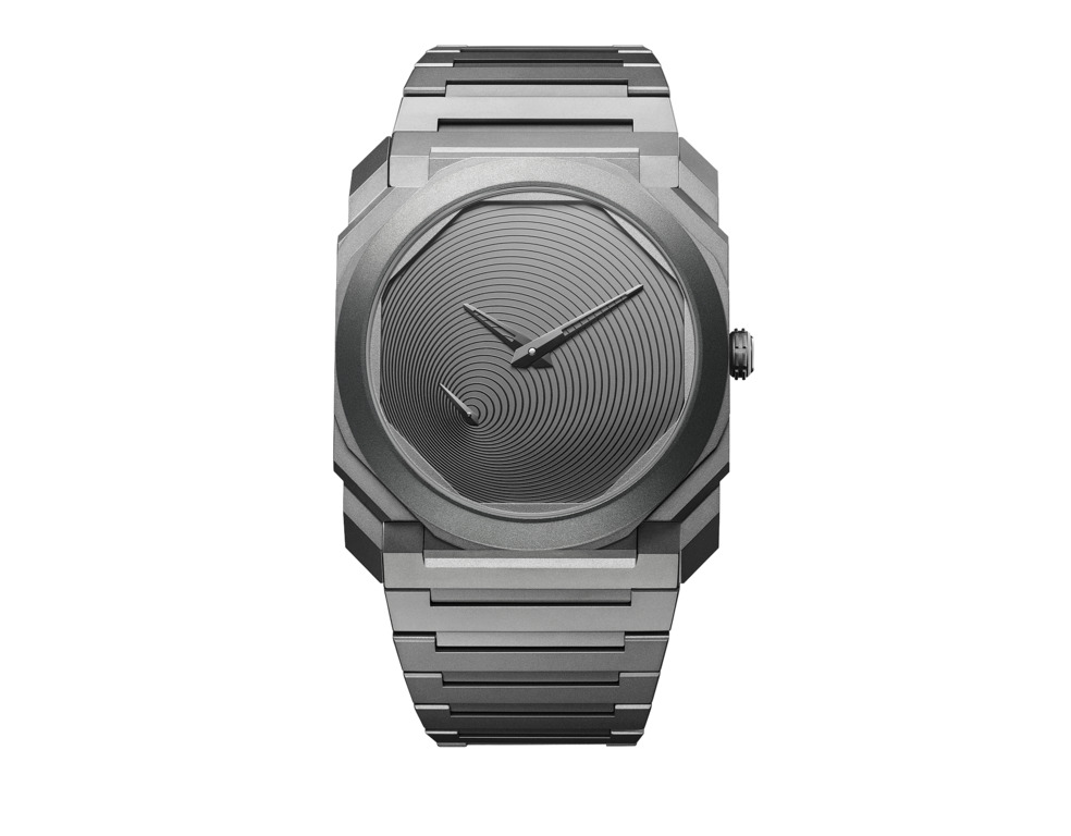 C’est avec cette approche que l’édition limitée « Octo Finissmo Tadao Ando » a été développée. La première des deux interprétations, l’Octo Finissimo Titane, est éditée dans une série limitée à 200 pièces. Son cadran, dessiné par l’architecte, figure une spirale trouvant son origine à la base de l’aiguille des secondes et évoque le passage infini du temps. La seconde, l’Octo Finissimo Tourbillon Carbone, est réalisée quant à elle dans une série limitée à 8 exemplaires. Ici encore, le maître s’inspire de l’inéluctable spirale du temps, dont les cercles concentriques partent du Tourbillon pour rayonner sur tout le cadran.