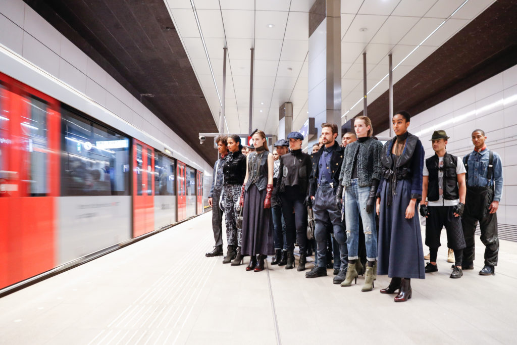 Influenceurs, journalistes et amis de la marque G-Star ont été réunis à la gare du Nord de la ligne de métro North / South. Tous, ont été priés de monter dans le métro, ainsi que des voyageurs détenant un billet valide de l’opérateur de transports publics d’Amsterdam GVB. Durant le trajet, les mannequins portaient des tenues icôniques de la marque G-Star RAW, dont le célèbre 5620 G-Star Elwood, mais aussi des pièces provenant de la Fashion Week de New York et des produits de la dernière campagne Hardcore Denim. Le message de la marque G-Star était clairement évident pendant ce défilé: une dédicace au tissu, à l’artisanat, à la culture et à l’histoire du denim.