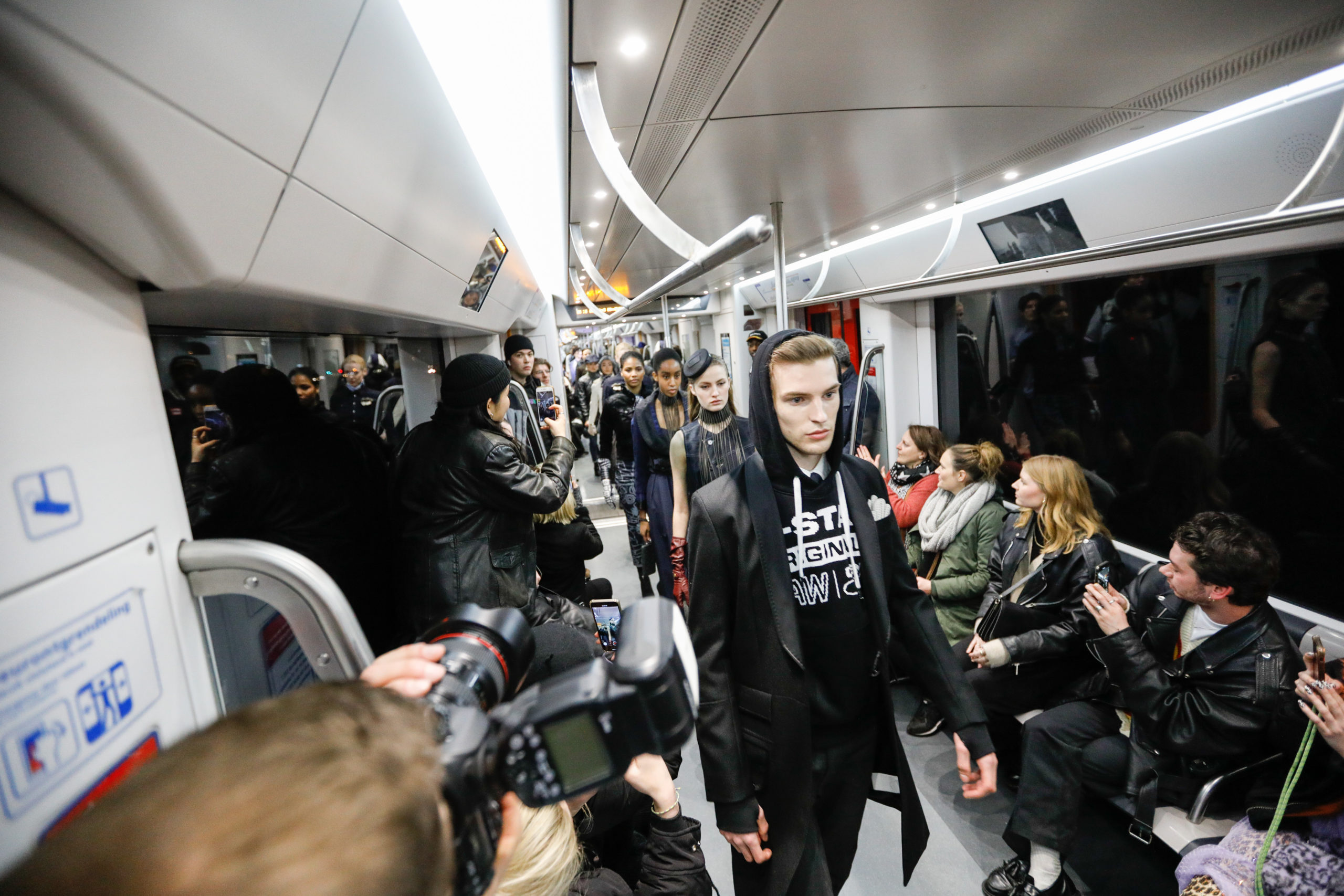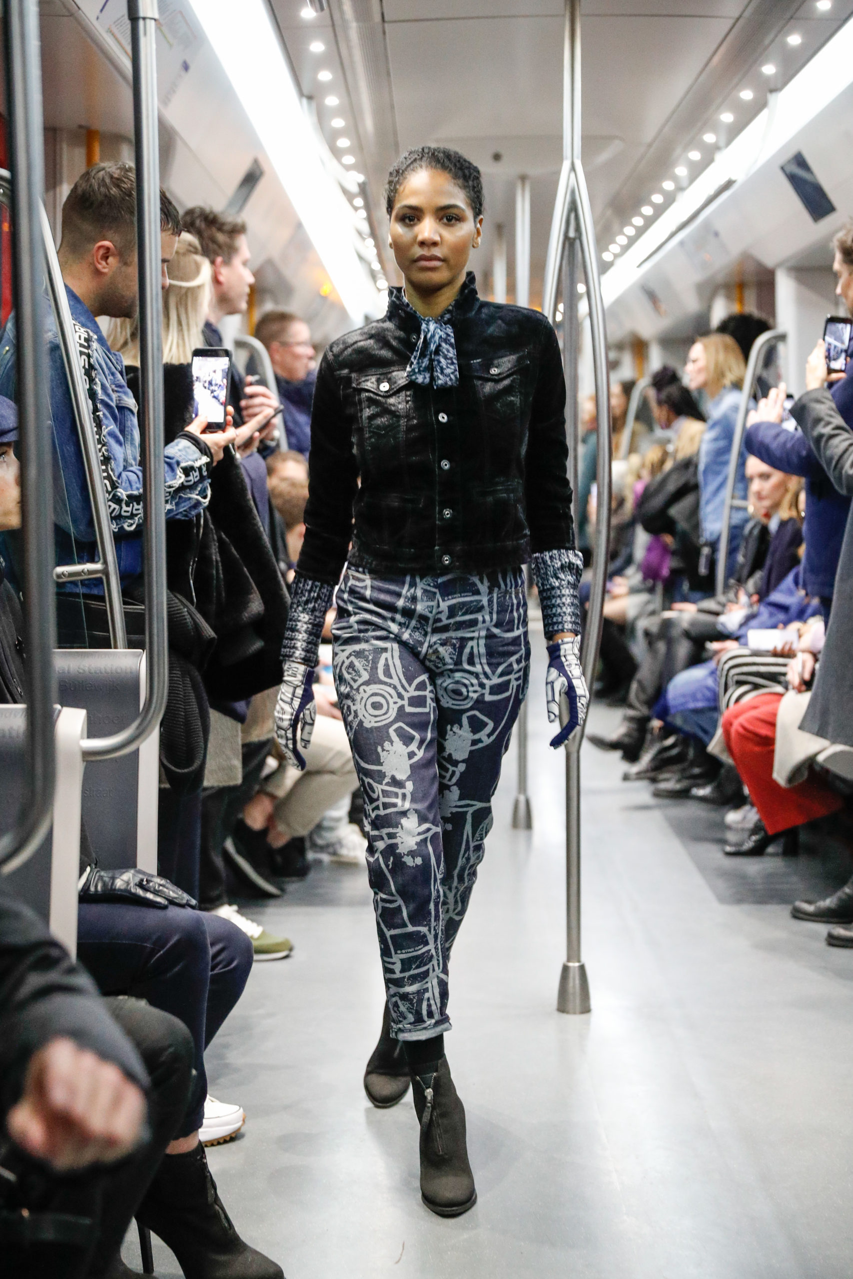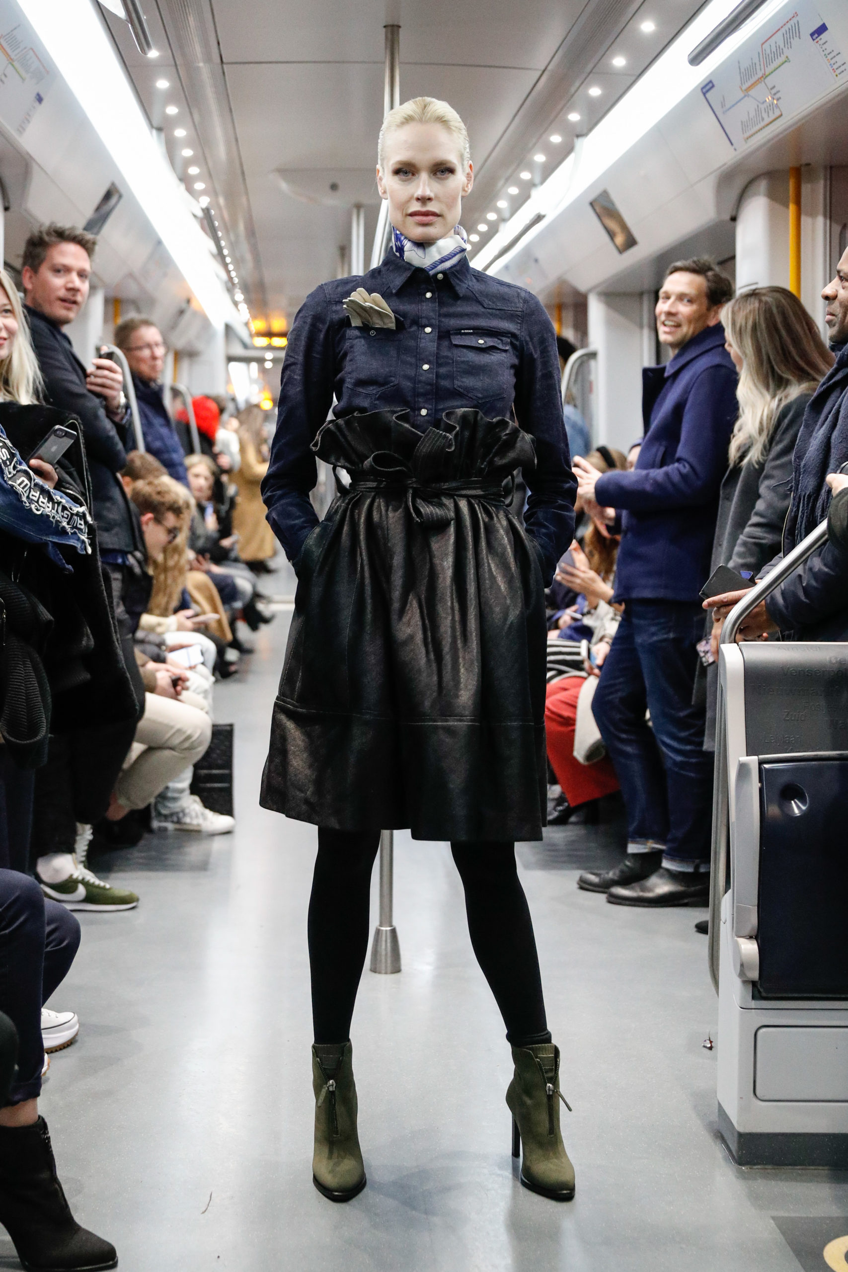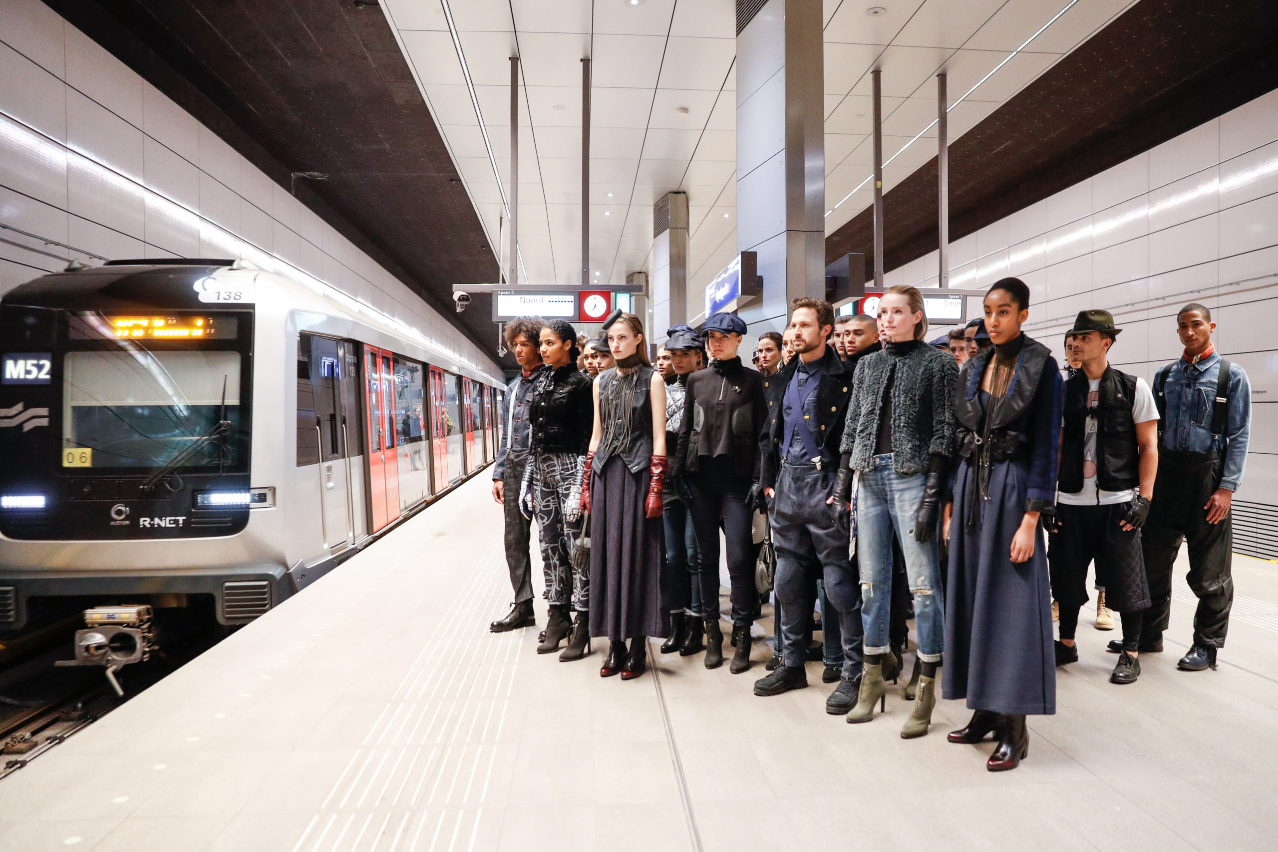Influenceurs, journalistes et amis de la marque G-Star ont été réunis à la gare du Nord de la ligne de métro North / South. Tous, ont été priés de monter dans le métro, ainsi que des voyageurs détenant un billet valide de l’opérateur de transports publics d’Amsterdam GVB. Durant le trajet, les mannequins portaient des tenues icôniques de la marque G-Star RAW, dont le célèbre 5620 G-Star Elwood, mais aussi des pièces provenant de la Fashion Week de New York et des produits de la dernière campagne Hardcore Denim. Le message de la marque G-Star était clairement évident pendant ce défilé: une dédicace au tissu, à l’artisanat, à la culture et à l’histoire du denim.