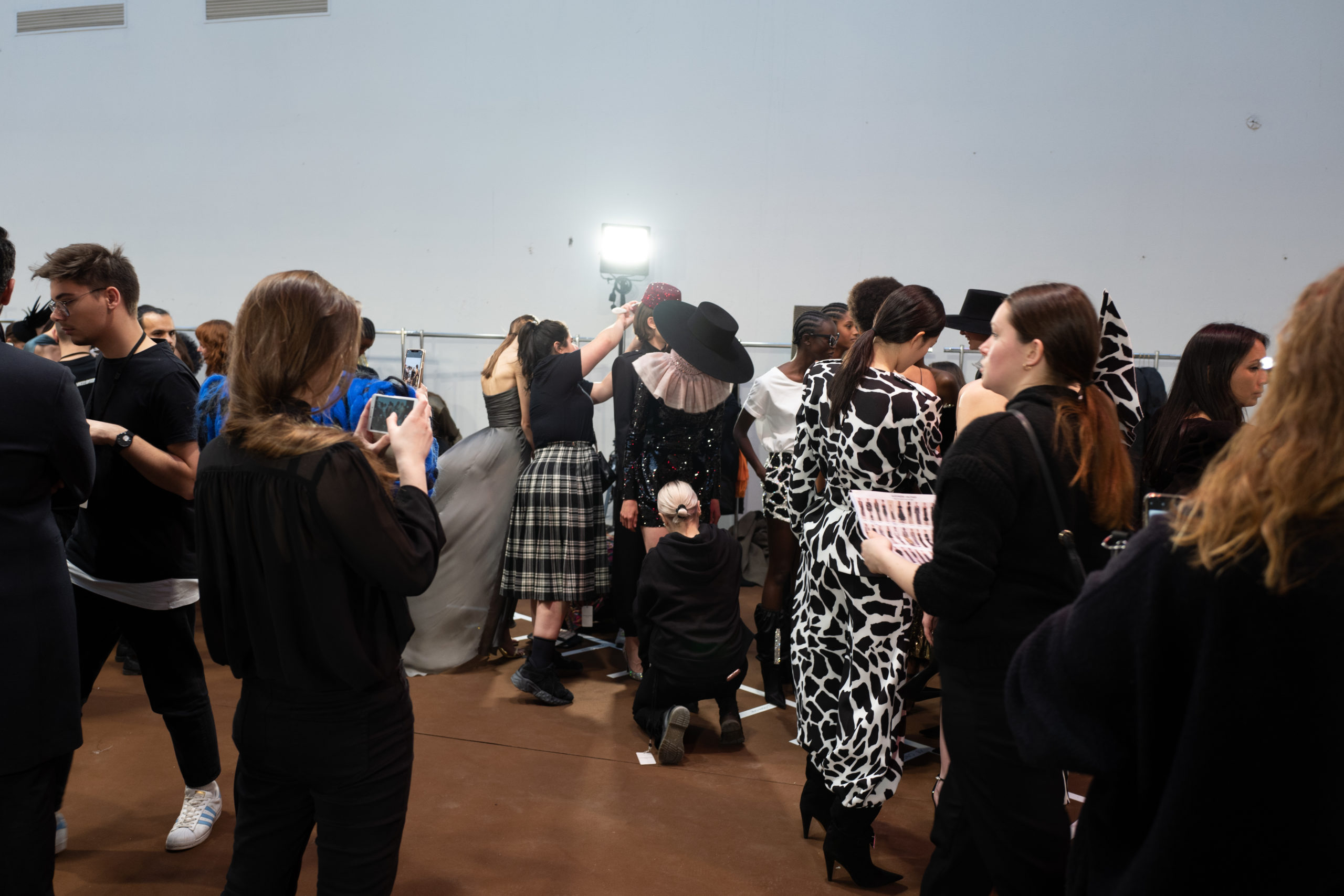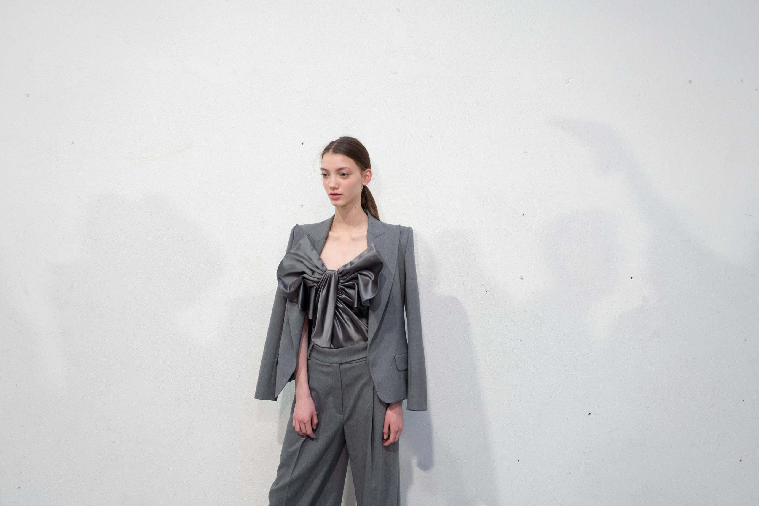 Jet, Black Diamond, Vintage Rose and Erenite. Key pieces included extraordinary crystal transfer tailoring and signature dresses, embroidered flames on two looks and a closing look crystal pinstriped suit worn by Bella Hadid.
