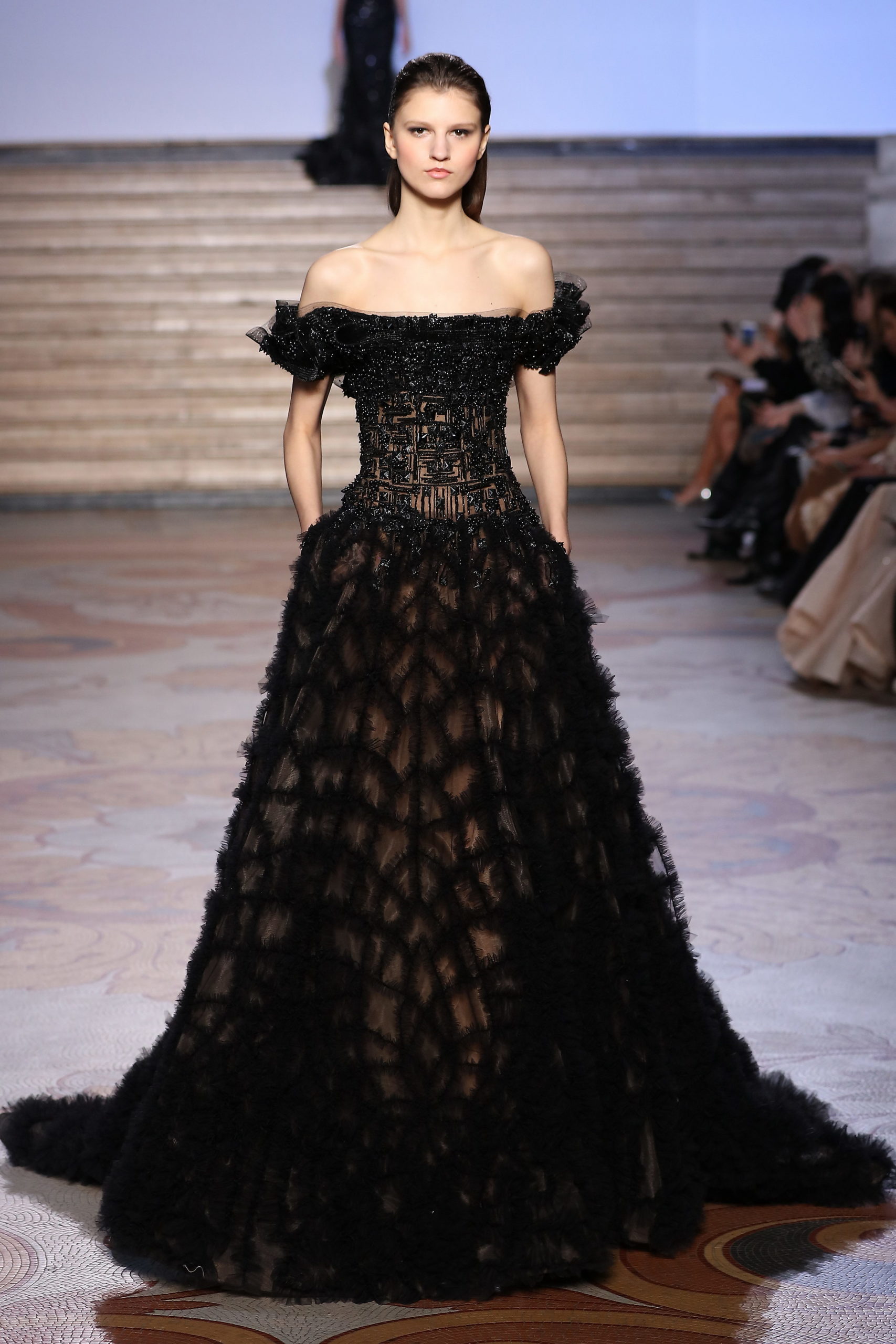 La presse, les clients, amis de la maison du monde entier sont venus et ont pu être témoins de cette collection de l’Espoir. Nous avons eu la joie d’accueillir parmis les premiers rangs, Déborah François (actrice) et sa styliste Gayanée Pierre, Antonella Clerici (actrice Italienne), Hapsatou Sy (journaliste), Patricia Contreras (Actrice mexicaine), Belle Silva (femme de Tiago Silva), Katie One (Influenceuse).