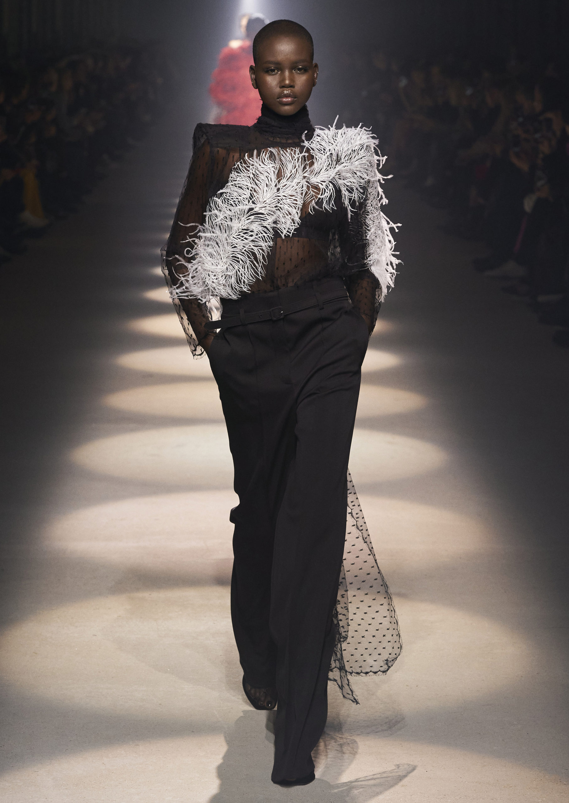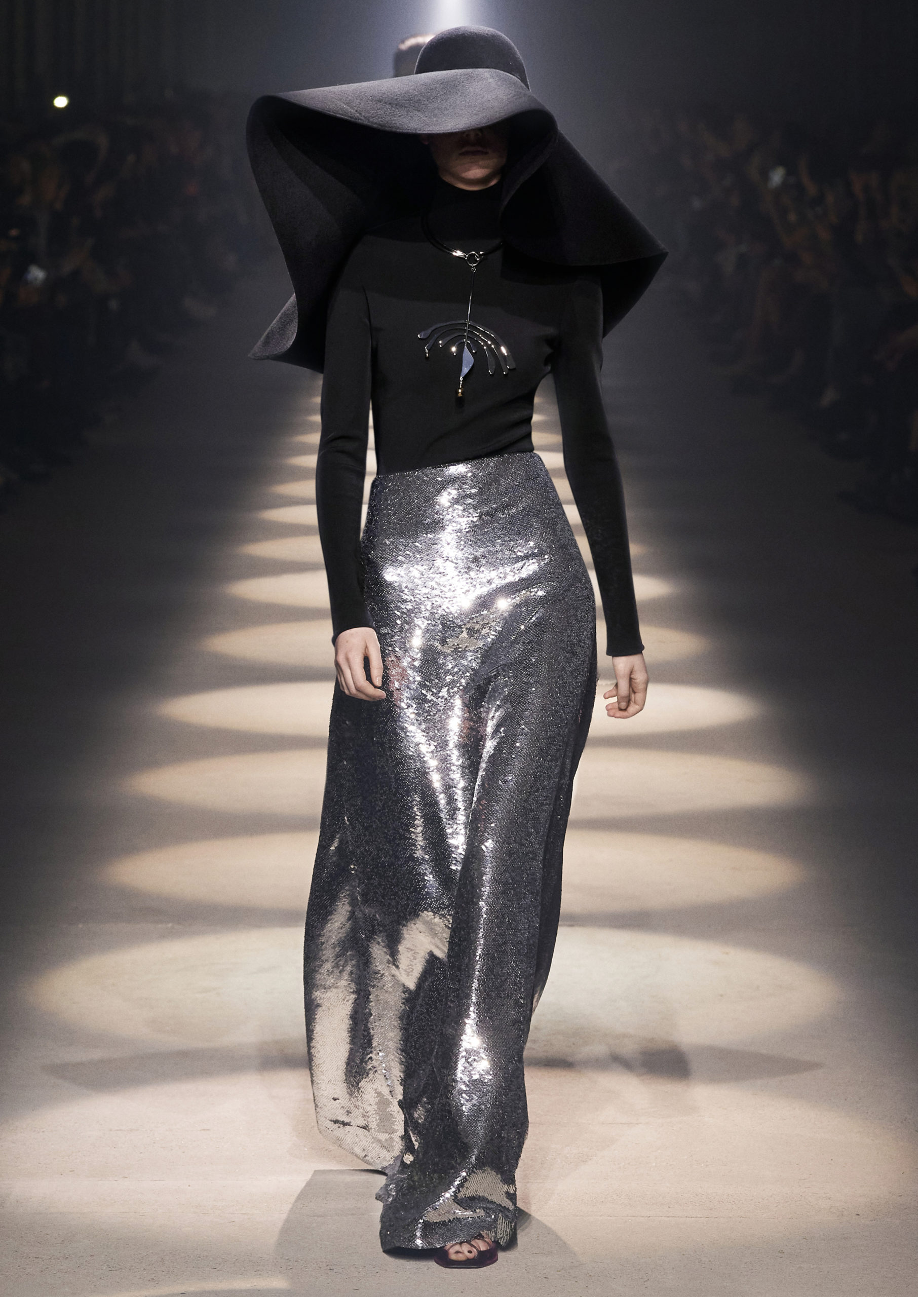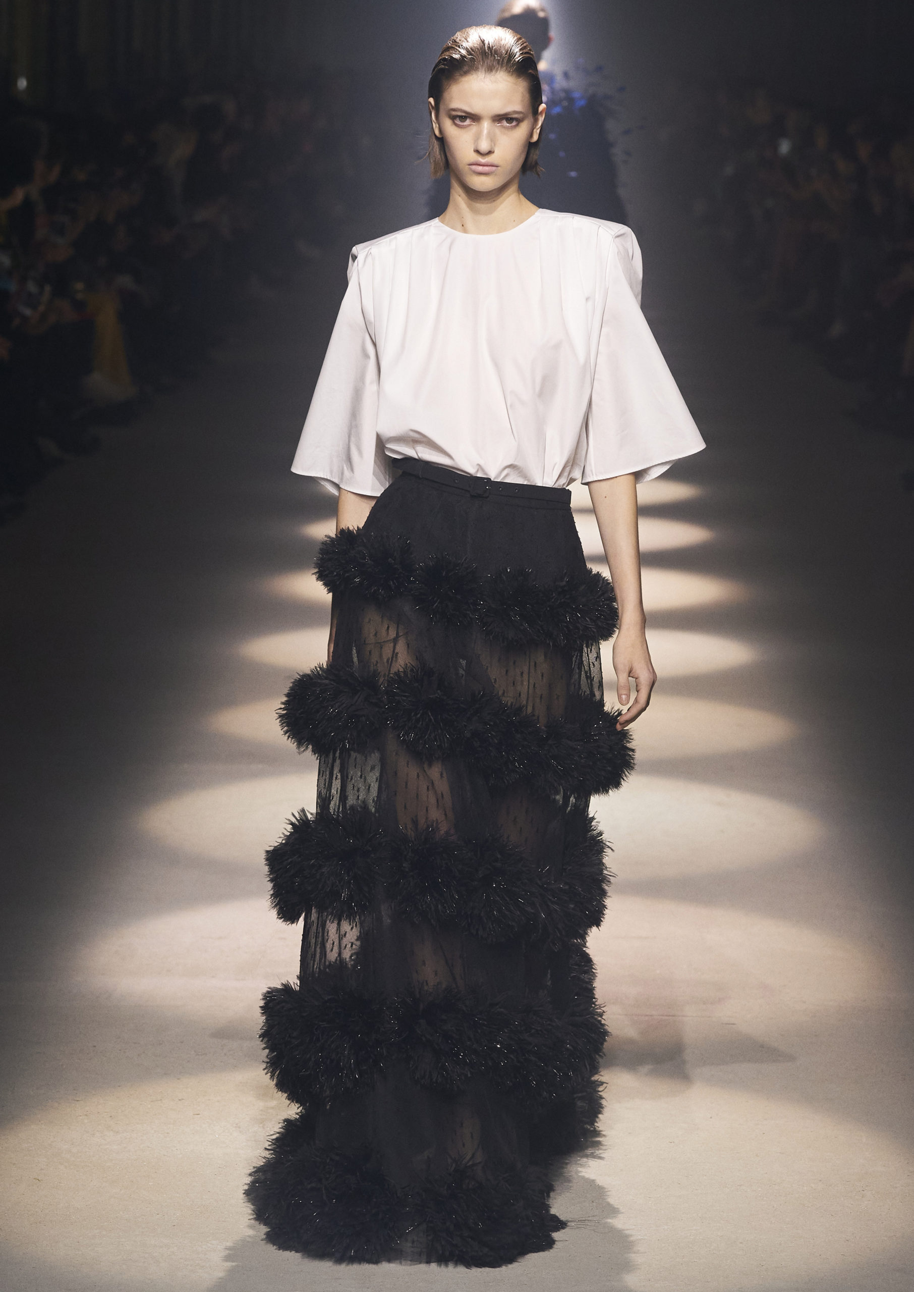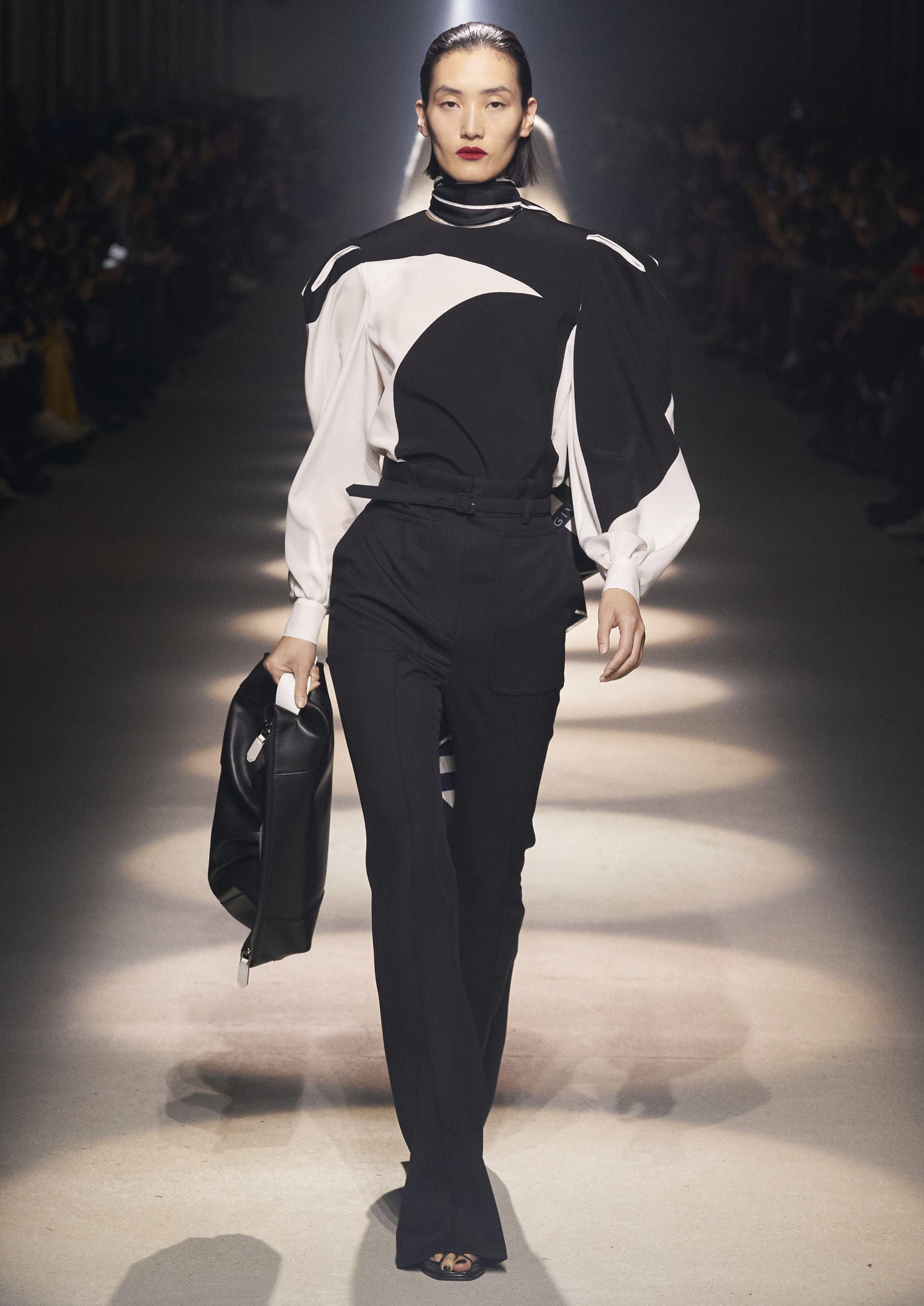 The body language of powerful women intimates mysterious expressions of sensuality. It provokes a chain reaction and stirs a symphony of characters. Designed by Clare Waight Keller, the Givenchy collection for Autumn Winter 2020 carries a silver screen allure: harking back to the imperfect beauty of an elusive arthouse heroine.