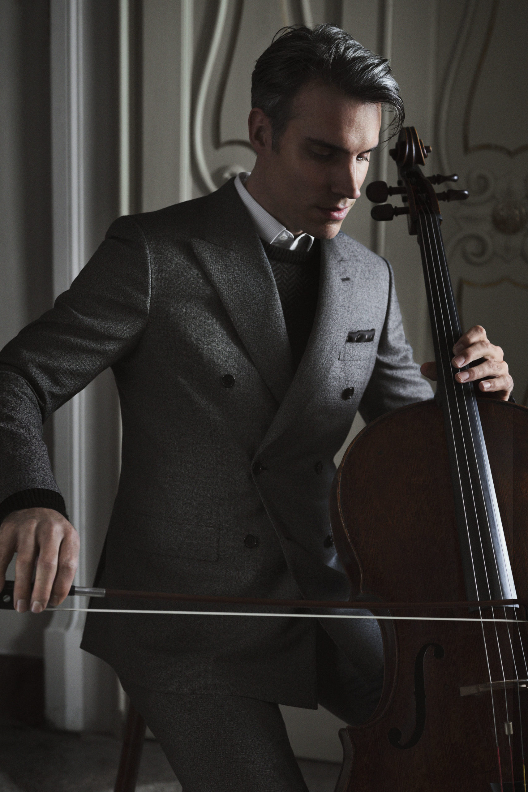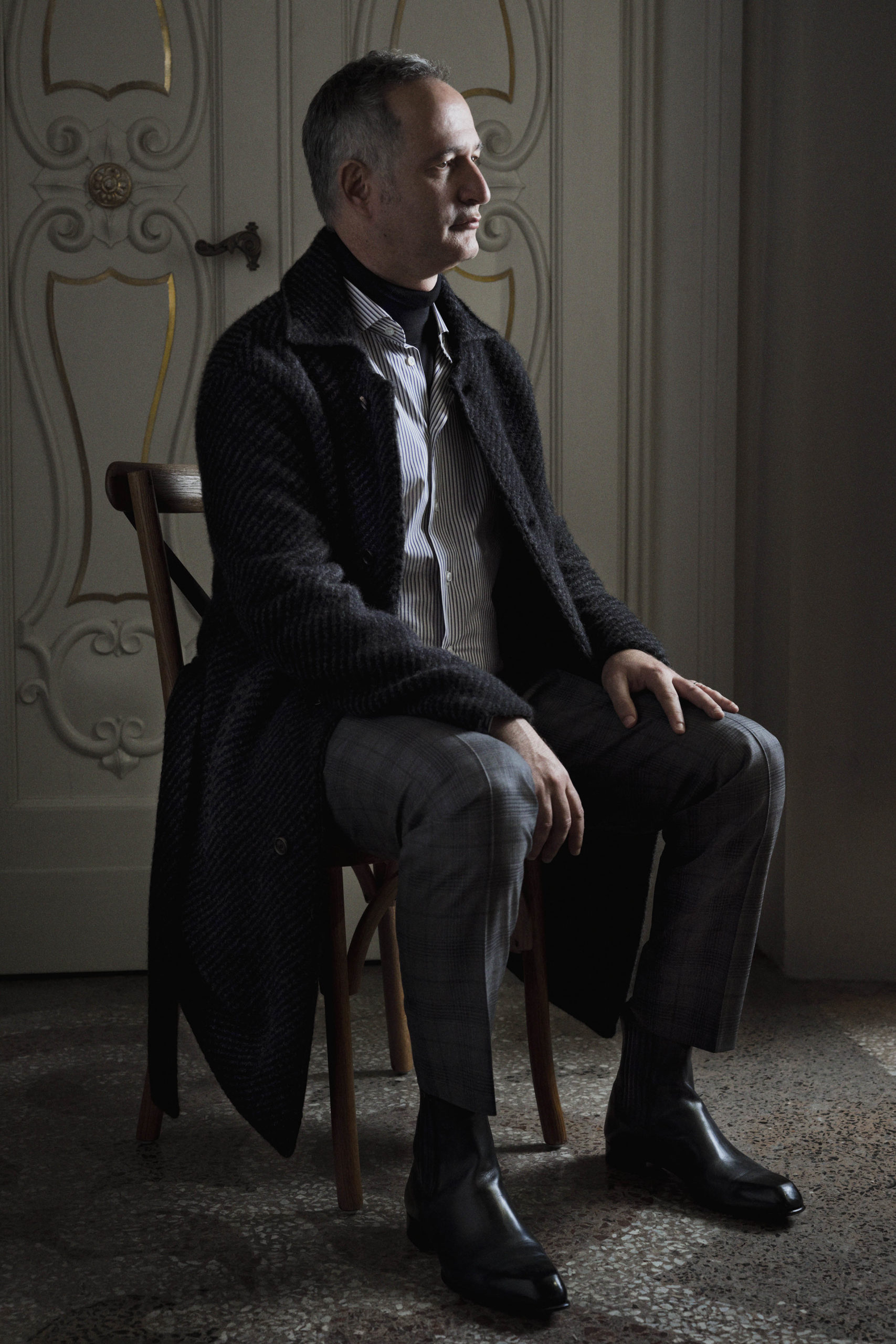 COLLECTION AUTOMNE/HIVER 2020 Évolution et continuité. Brioni élargit toujours son code vestimentaire en restant fidèle à ses racines. Ces racines sont romaines et sont orientées vers une attitude envers les vêtements qui est nonchalante, un peu distraite et masculine. Le raffinement des tissus et la précision des coupes ne sont pas prises de façon trop stricte. Les hommes Brioni – une pluralité de personnalités, réunies sous l’insigne de la douceur et de la conscience de soi – portent un blazer impeccable sur un col roulé et une chemise de soirée, s’enveloppent dans un manteau sergé en laine, plongent dans la nuit dans des vestes jacquard fabriquées par de très anciens tisseurs vénitiens, combinent une chemise de travail avec des somptueux pantalons en soie. La collection est conçue comme un garde-robe qui grandit au fil des années. Magnifiquement confectionnées, les pièces détaillées avec précision peuvent se superposer et combiner cependant comme on le désire. La formalité entre en contact avec une touche d’informalité, tandis que l’informalité prend le lustre de la formalité. Chaque moment de la vie d’un homme est pris en compte, des affaires au loisir. Les formes son précises, avec la douceur et la souplesse qui définissent Brioni en donnant à chaque article une qualité facilement reconnaissable. La veste Virgilio a un revers plus large et une épaule moins structurée, en révisant l’essence de la confection Brioni. La soie lavée est utilisée pour les doux costumes, tandis que les constructions double face donnent un aspect luxueux aux manteaux spazzolino et aux blousons sportifs. Le daim se transforme en un blazer souple. Après la tombée de la nuit, les allées brillent, comme les soies jacquard et brodées qui prennent la tête, fidèles au fondateur Gaetano Savine, connu sous le nom de Mister Silk. Les tissus sont luxueux et agréables au toucher: le cachemire, le reps de soie, la baby alpaga, la soie jacquard, la barathea. La palette de couleurs est une amalgame de neutres chaleureux, de marron terre, de crème, de tabac, de sable avec des nuances turquoise clair. Des bottes polies, des bottes à lacets, des brogues et des mocassins en velours complètent les looks.