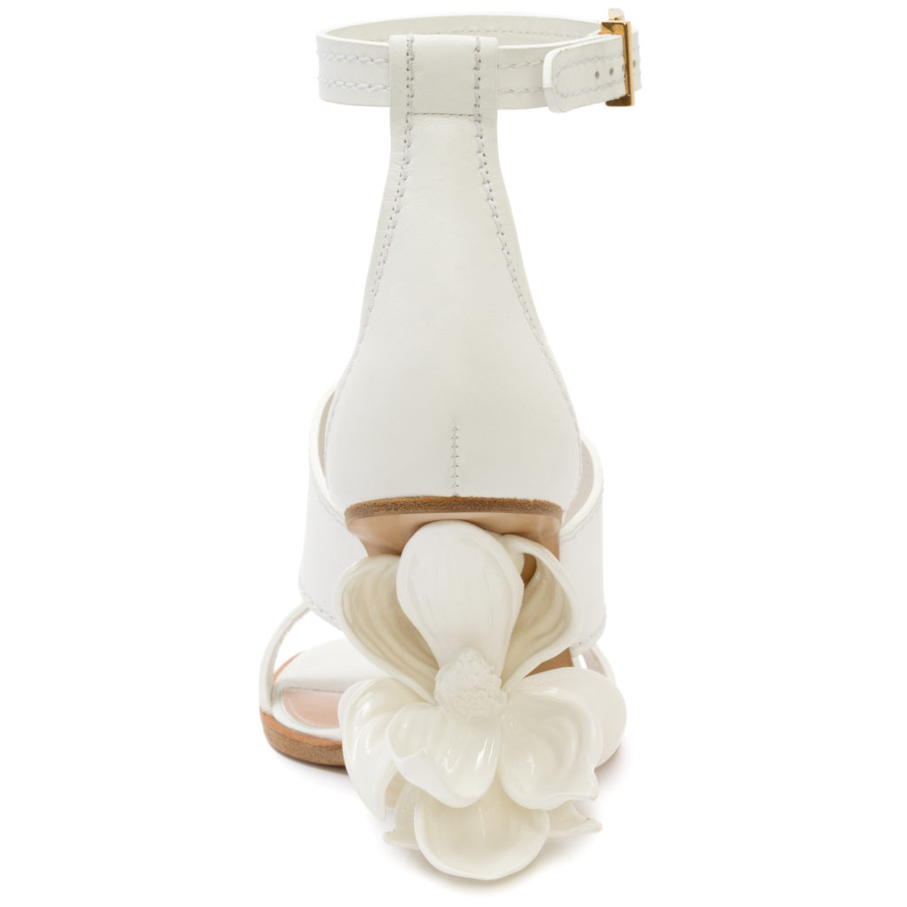Finies avec une bride cheville avec une boucle, les Sandales Flowers sont disponibles en noir et blanc avec le talon en magnolia sculpté en bleu ou rose.