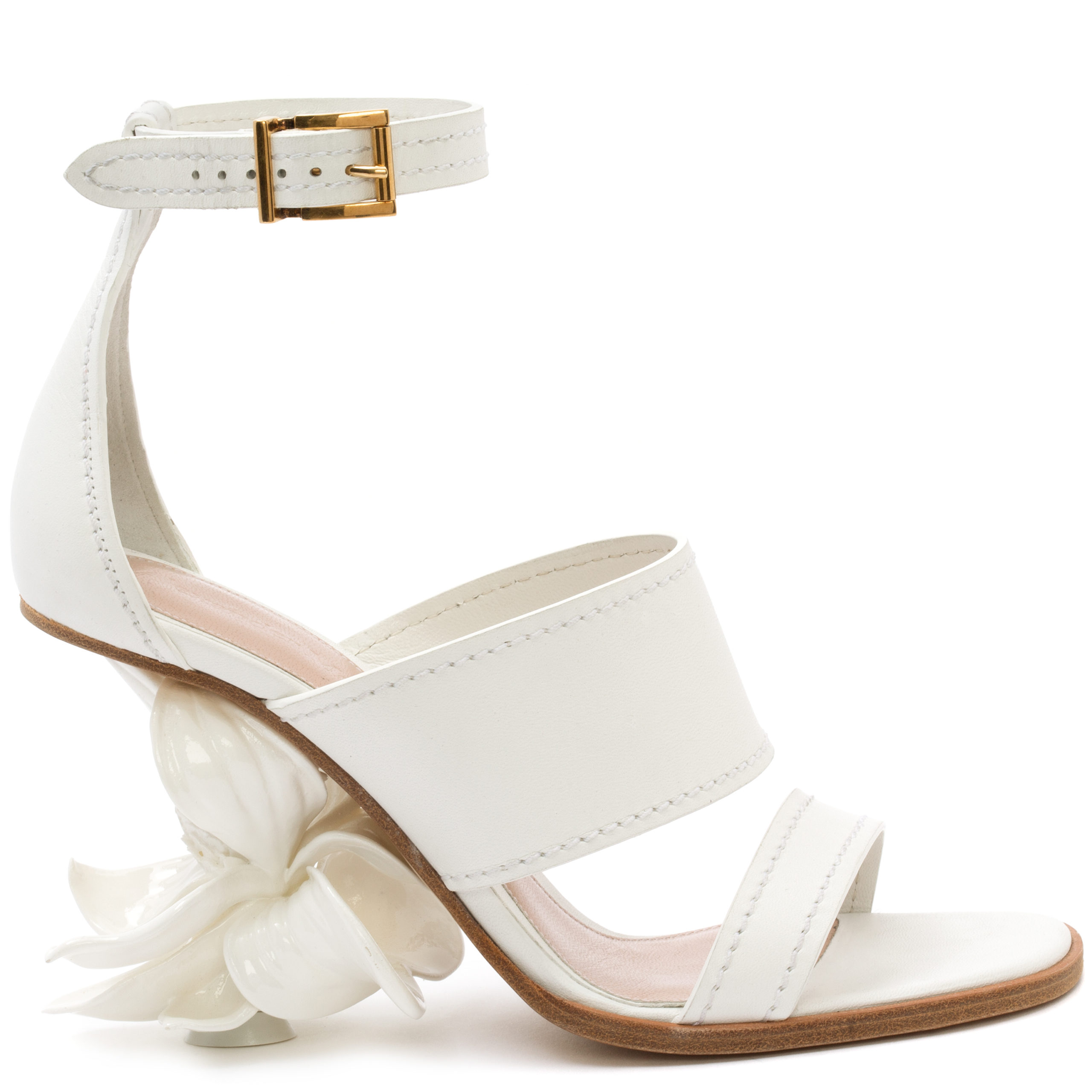 Inspiré des fleurs en voie de disparition, thème récurrent dans les collections Cruise et Printemps / Été 2020, le talon en forme de magnolia a été dessiné, scanné et imprimé en résine 3D pour un effet naturaliste.