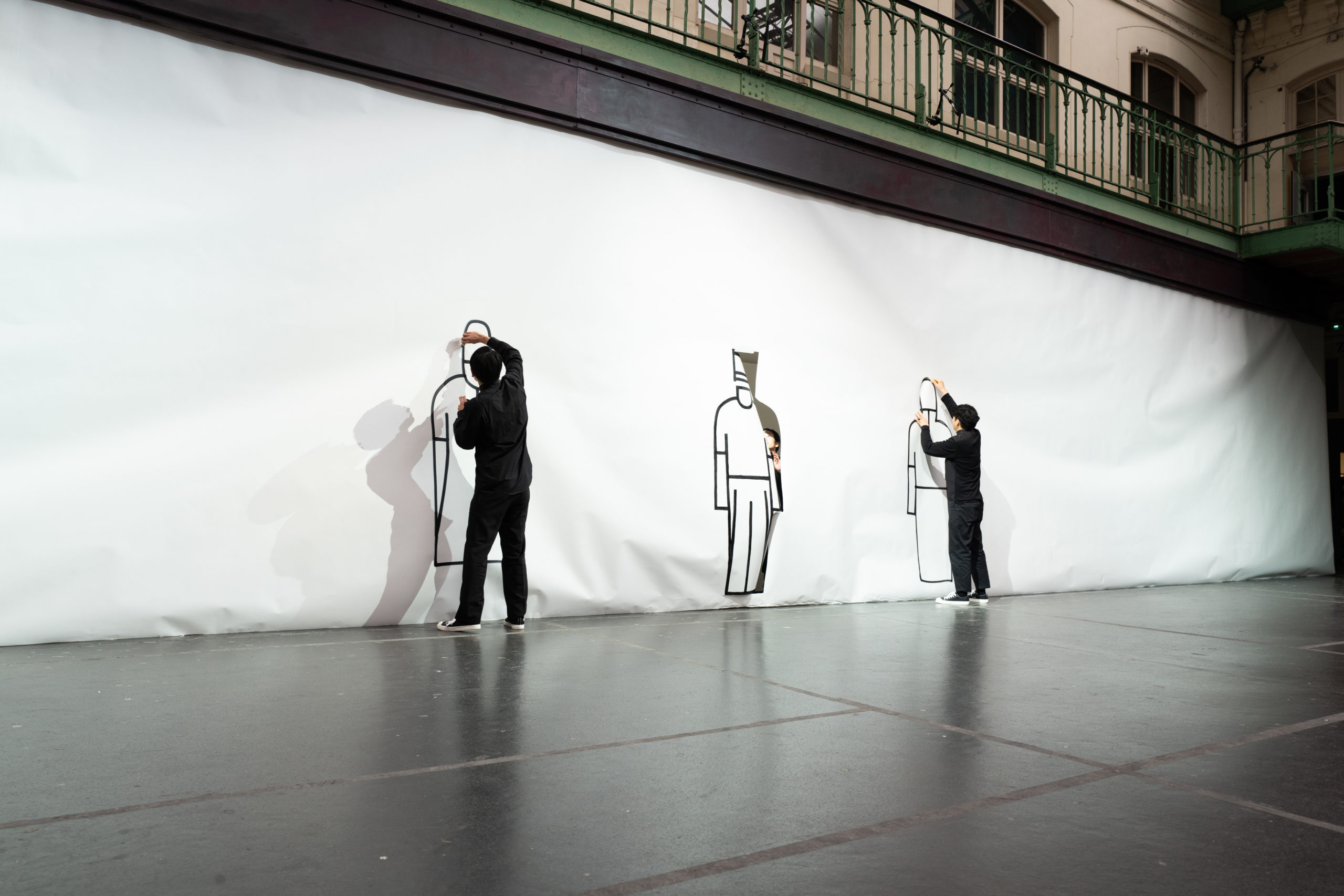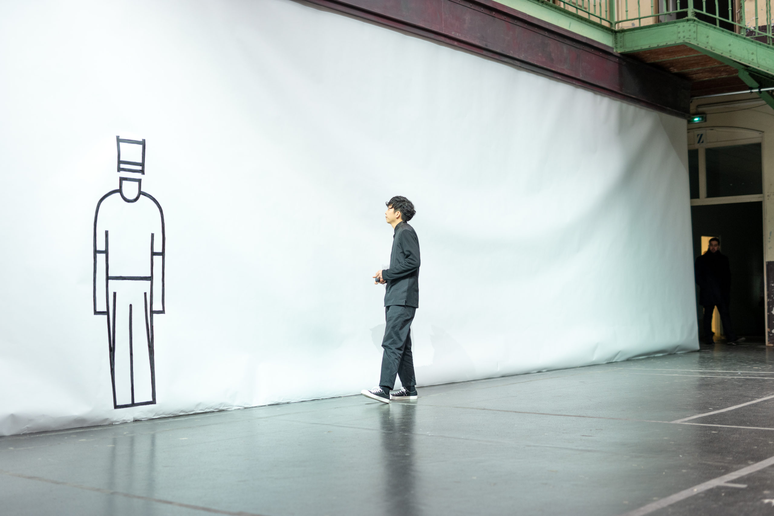 Cette série, qui utilise la technique A-POC*, est inspirée par l’idée de dessiner directement le contour des vêtements sur le tissu avec des lignes nettes et épaisses avant de les découper. Lorsque les vêtements sont mis à plat, les contours tracés à la main leur apportent une touche d’humour. Une fois portés, ces contours créent une silhouette précise et unique.