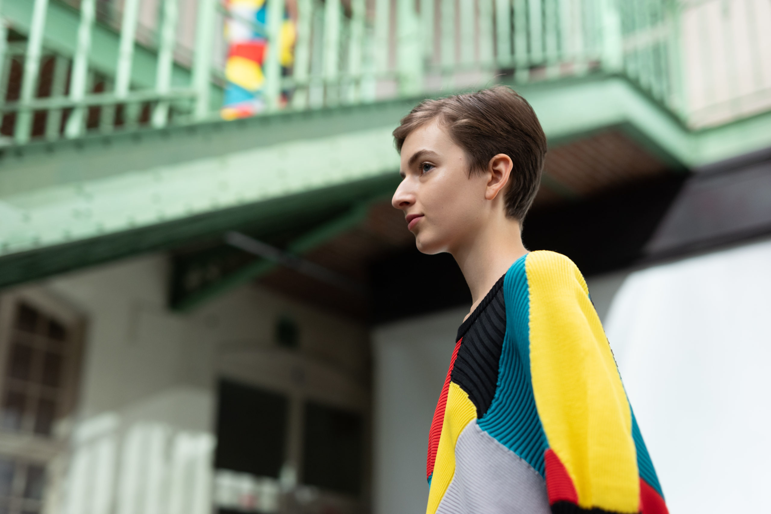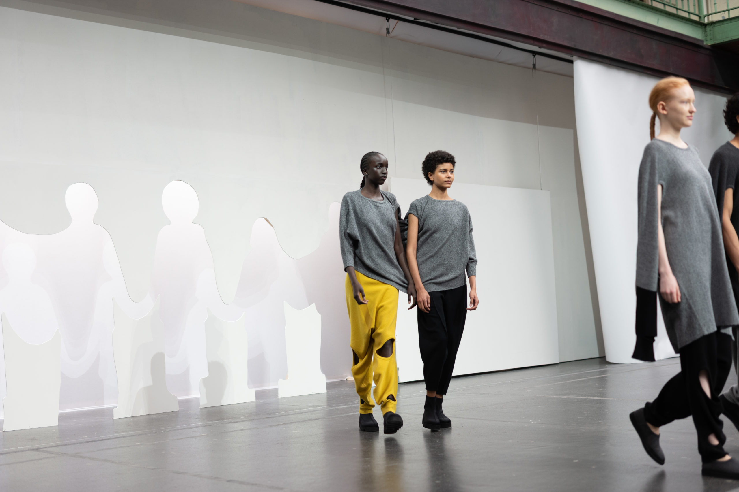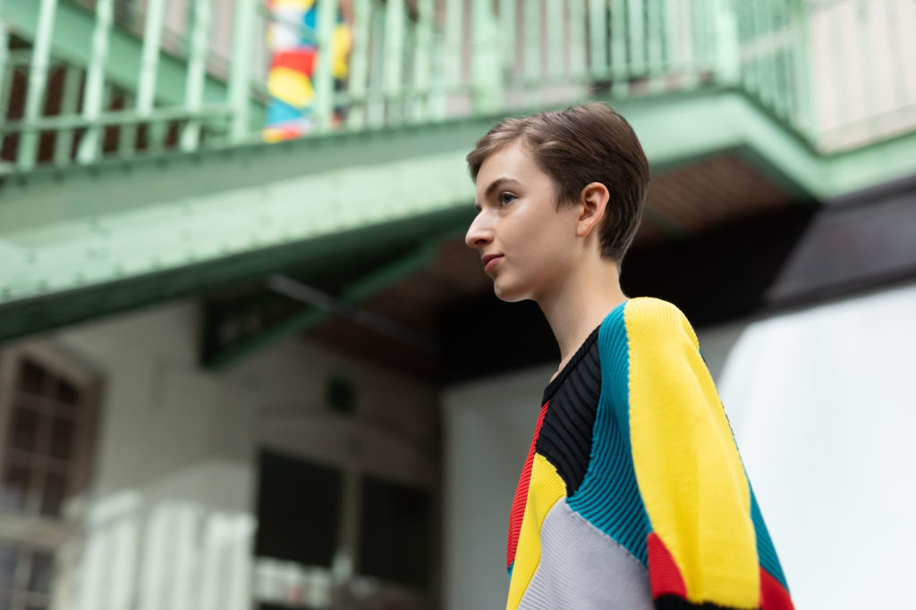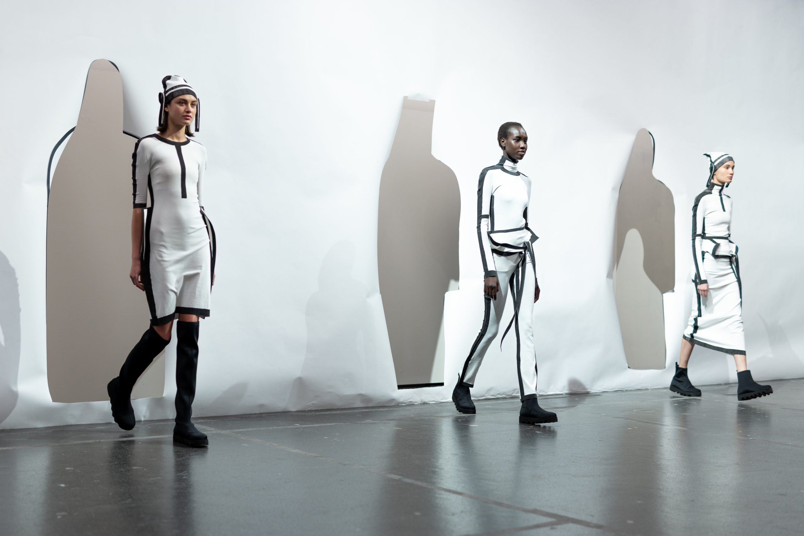 Conçue grâce à une technique de mailles sans couture, la série transmet l’idée de connecter les gens entre eux, les gens avec le monde et les gens au futur avec des vêtements fabriqués d’une seule pièce en apportant une dose d’humour. Des ouvertures supplémentaires permettent de porter ces vêtements de différentes façons.