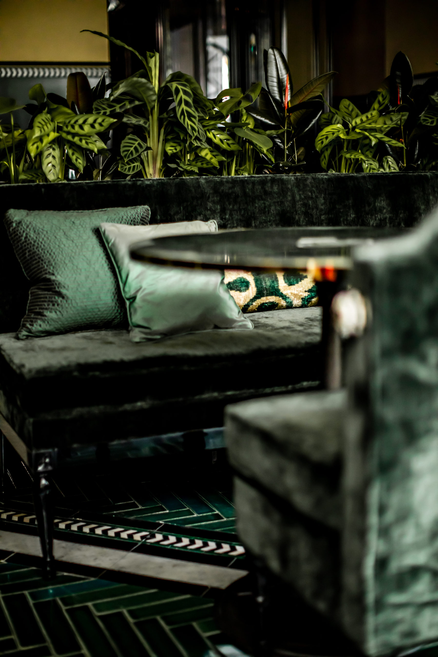 Au restaurant et bar – Galanga (du nom d’une plante rare, cousine du gingembre, stimulante et aux multiples vertus, dont celle d’ouvrir l’appétit…) – la cinquantaine de places, réparties dans le cadre chatoyant de dégradés de vert d’inspiration turquomarocaine (sofas, petites tables et mobilier précieux mais jamais prétentieux) offriront dès le premier coup d’œil cette sensation de chic et de discrétion. Un halo de lumière naturelle venue du ciel éclaircit une “ birdcage ” métallique encore jamais vue.