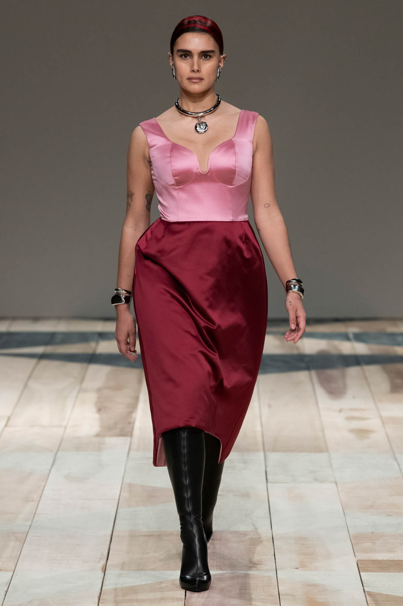 “The collection is a love letter to women and to families, colleagues and friends. We went to Wales and were inspired by the warmth of its artistic and poetic heritage, by its folklore and the soul of its craft. The woman is courageous, grounded, bold: heroic. There is a sense of protection in the clothes, of safety and comfort, evoked through quilting and blankets. The hearts are a symbol of togetherness, of being there for others.”