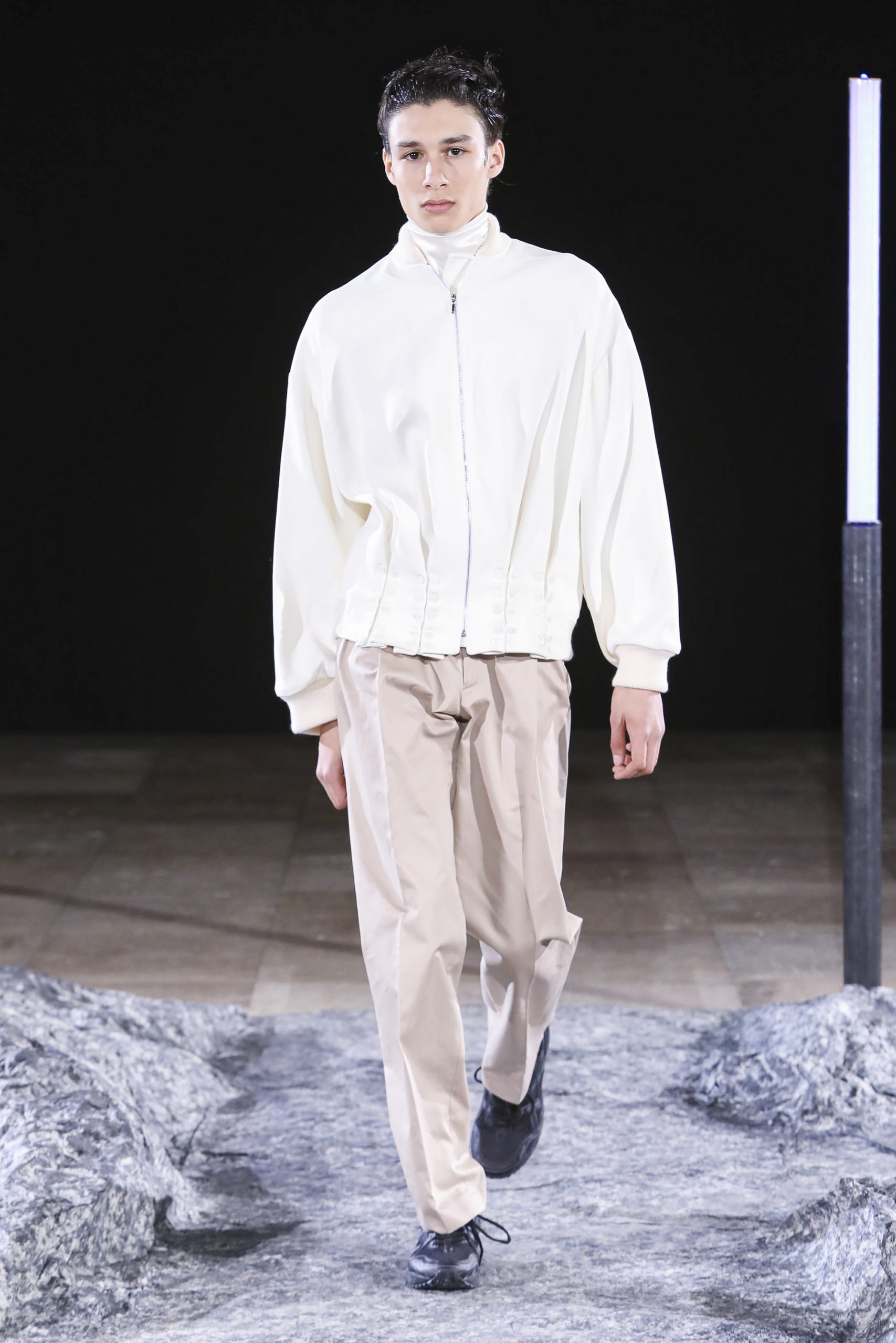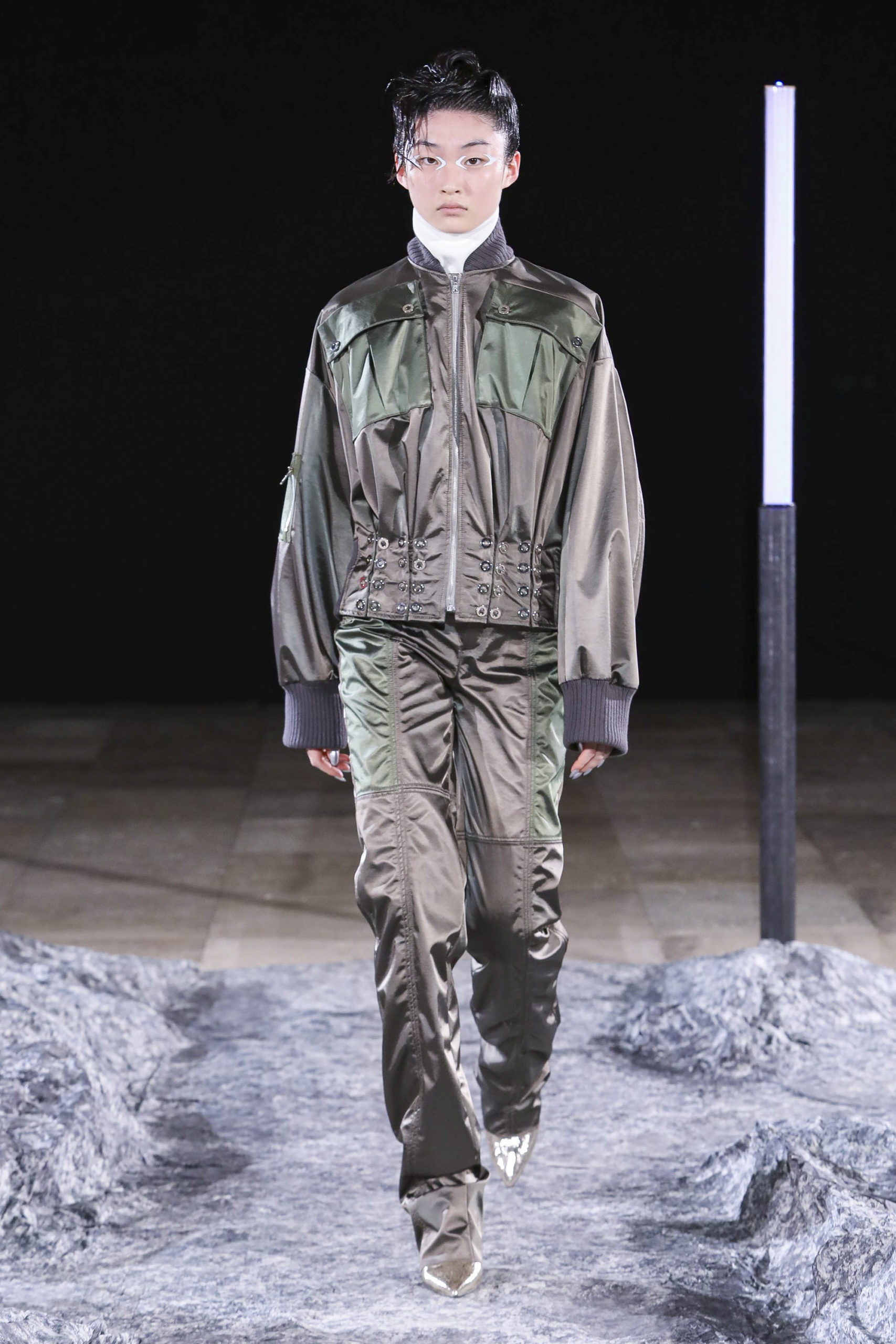 Nous avons exploré diverses variantes du costume vert caractéristique du Petit Prince et avons empreint la collection de références à l’aéropostale, et aux uniformes des années 90. Un autre prince originaire de Bel Air a même infusé certaines silhouettes de son style et de sa philosophie. Les coupes sont structurées, les volumes disproportionnés, tantôt exagérément grands, tantôt minuscules et insérés dans des volumes plus importants.
