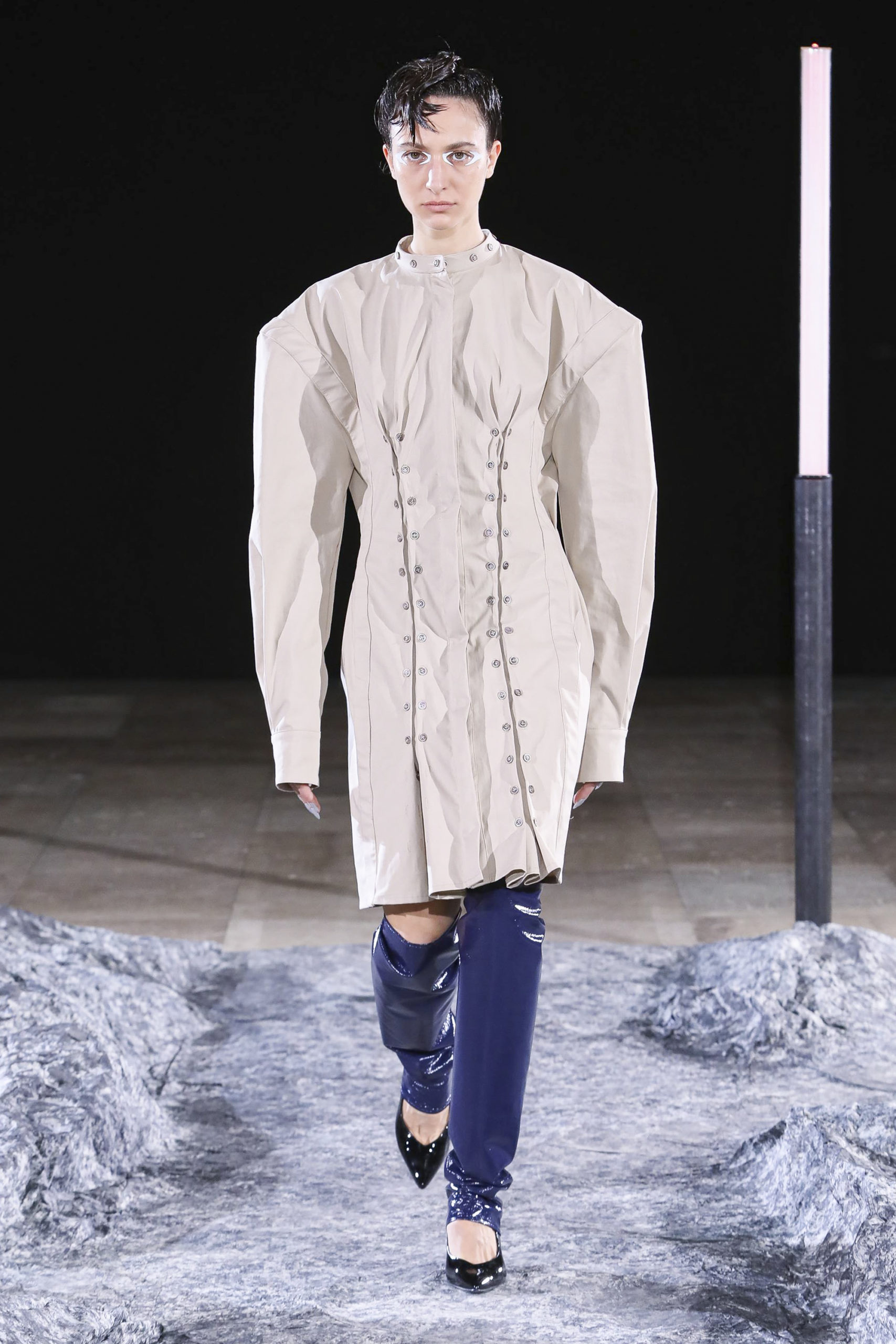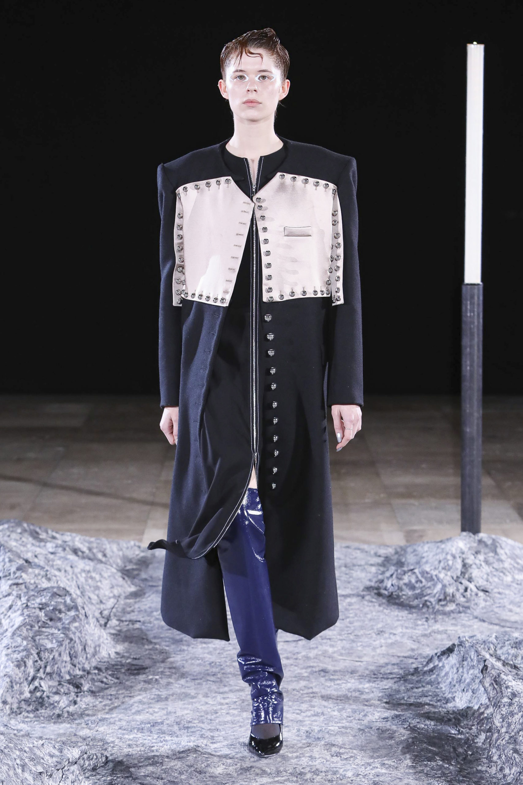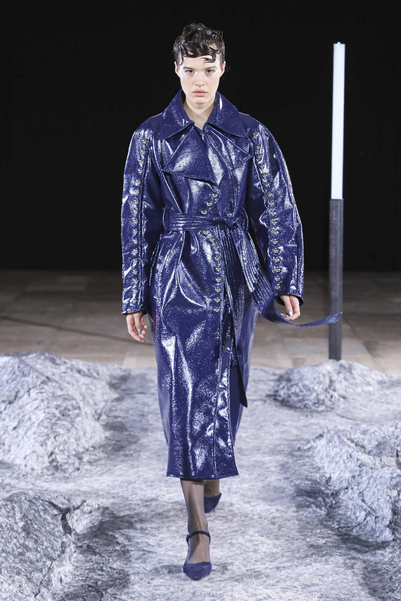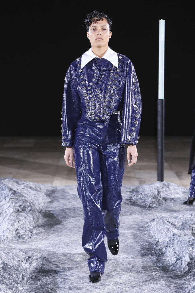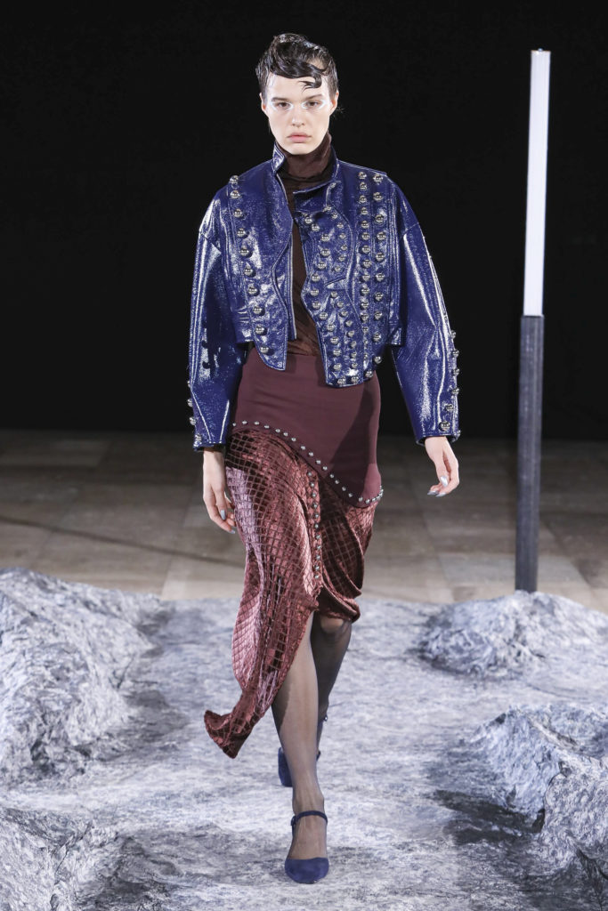 Comme signatures de Mazarine, les boutons et les vagues parcourent les différentes silhouettes de la collection et les versions métalliques sont autant de constellations imaginaires.