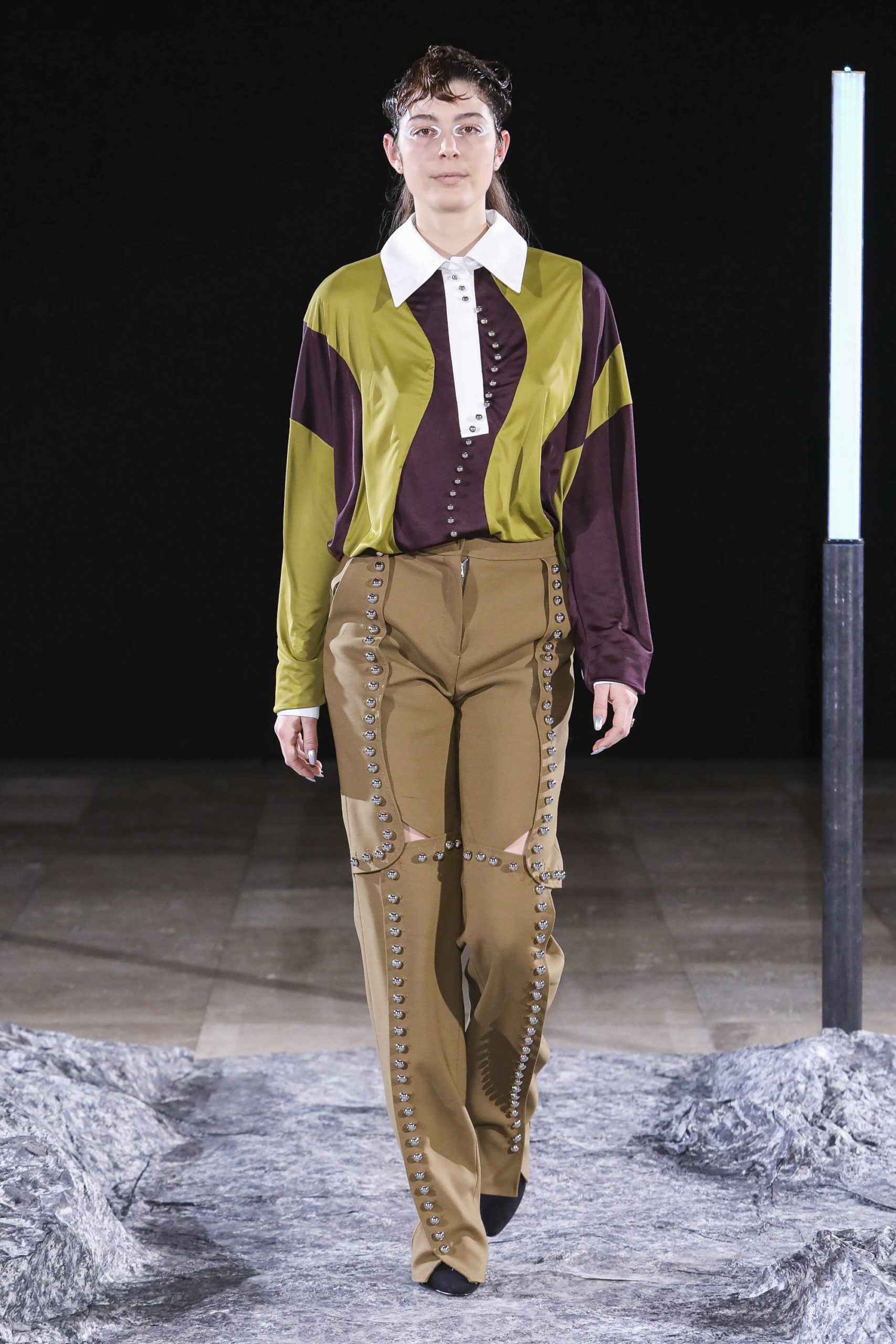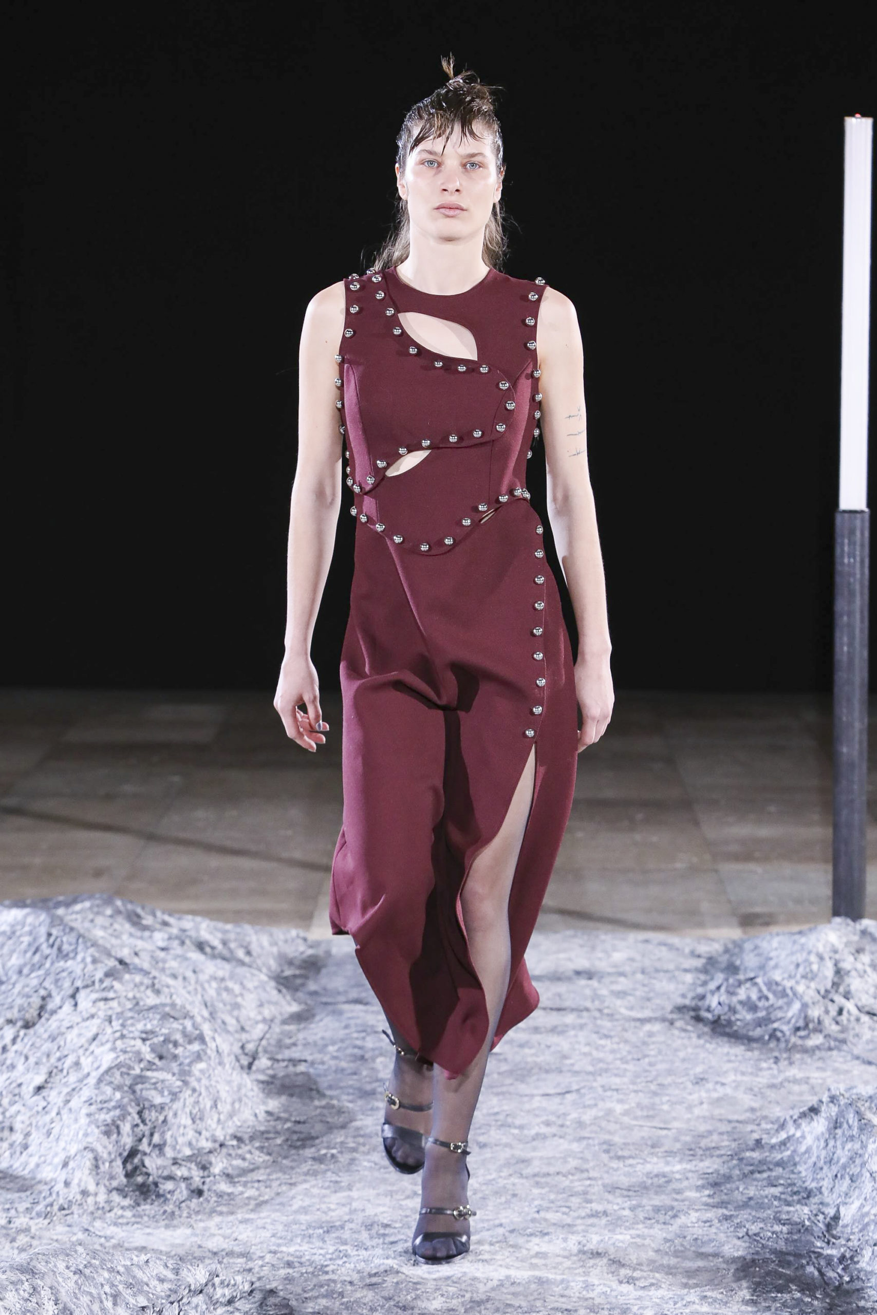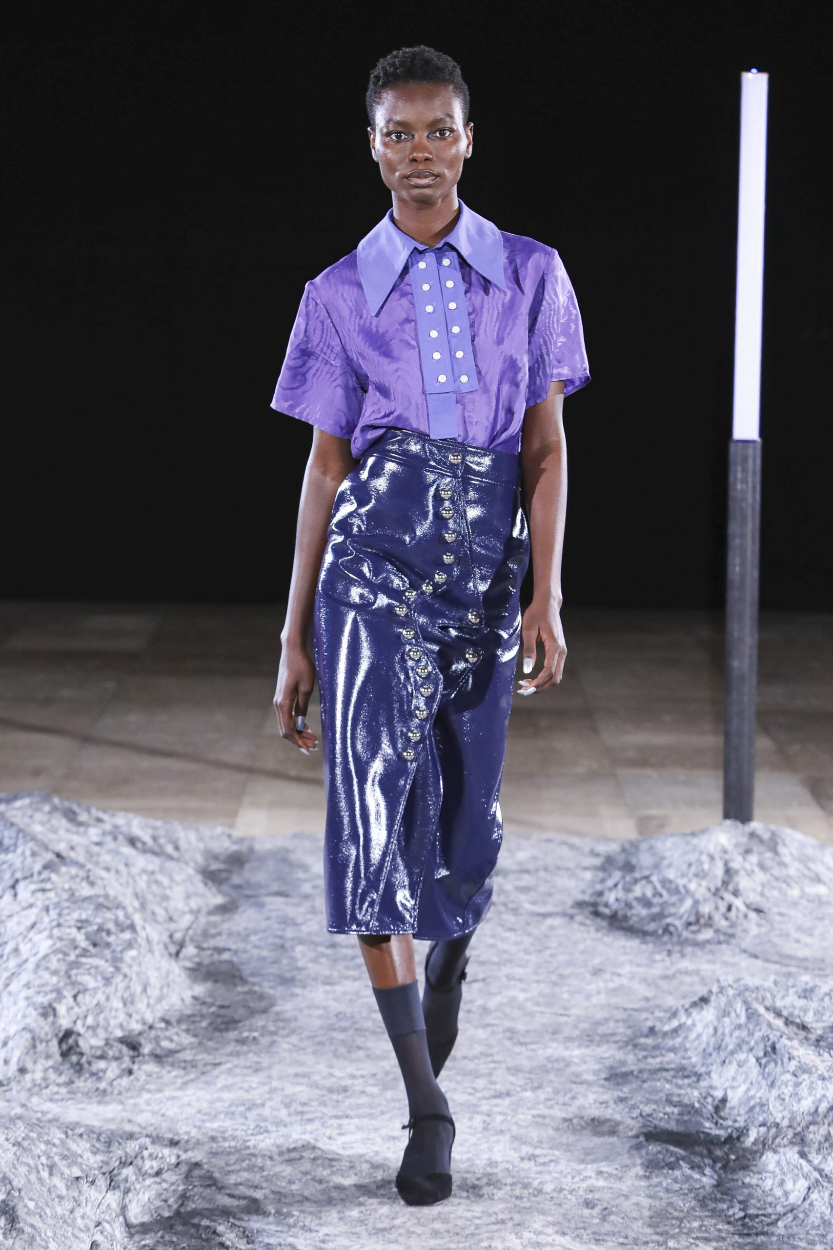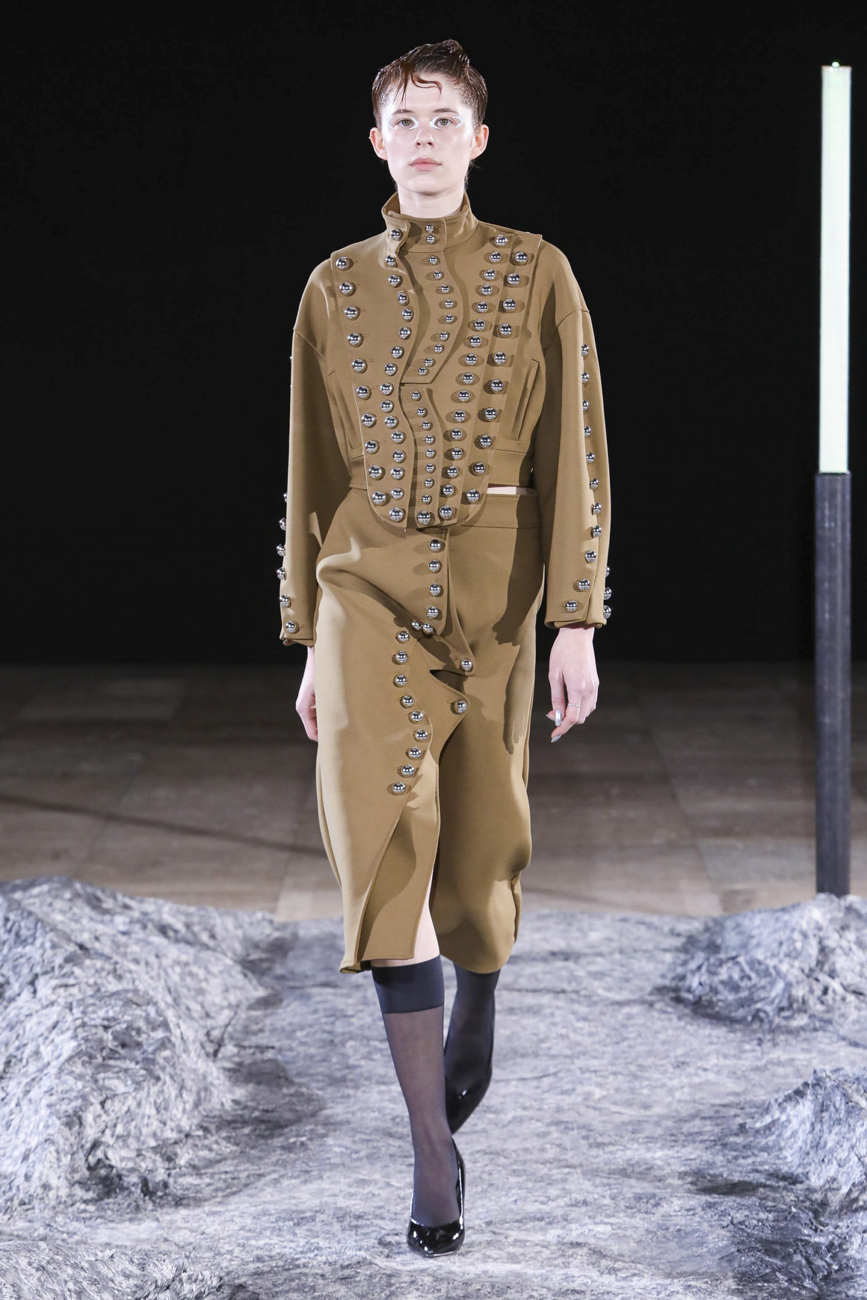 Comme signatures de Mazarine, les boutons et les vagues parcourent les différentes silhouettes de la collection et les versions métalliques sont autant de constellations imaginaires.