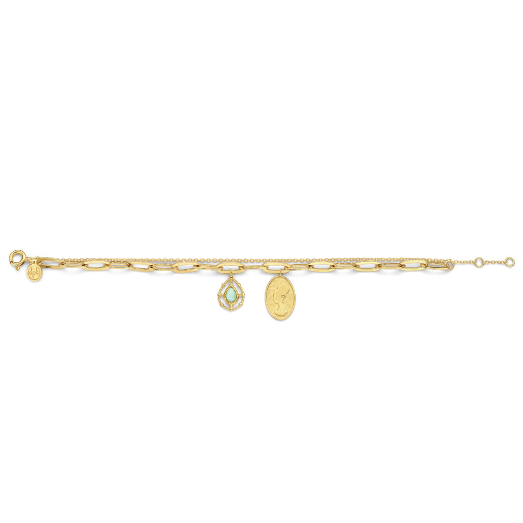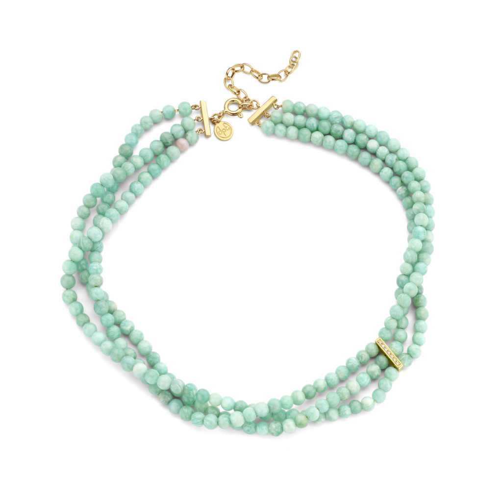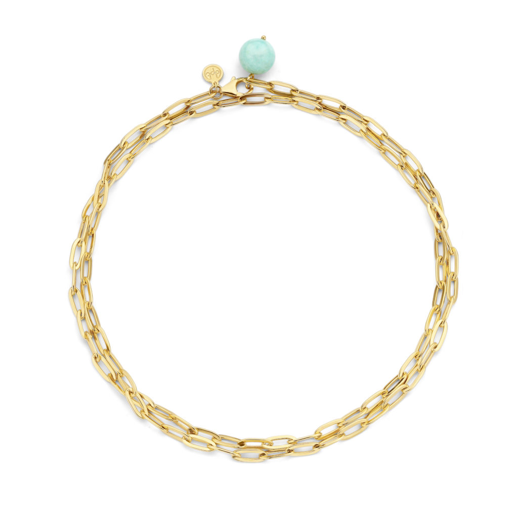 La collection de Marie Martens x Diamanti Per Tutti s’appelle « Marie 2.0 » est une interprétation moderne des bijoux vintage baroques, les perles blanches classiques font de la place pour des gemmes Amazonite turquoise rafraîchissantes. Le mélange de chaînes aux gros et longs maillons à la chainette fine et délicate ajoute une touche de rock royal à cette collection capsule.
