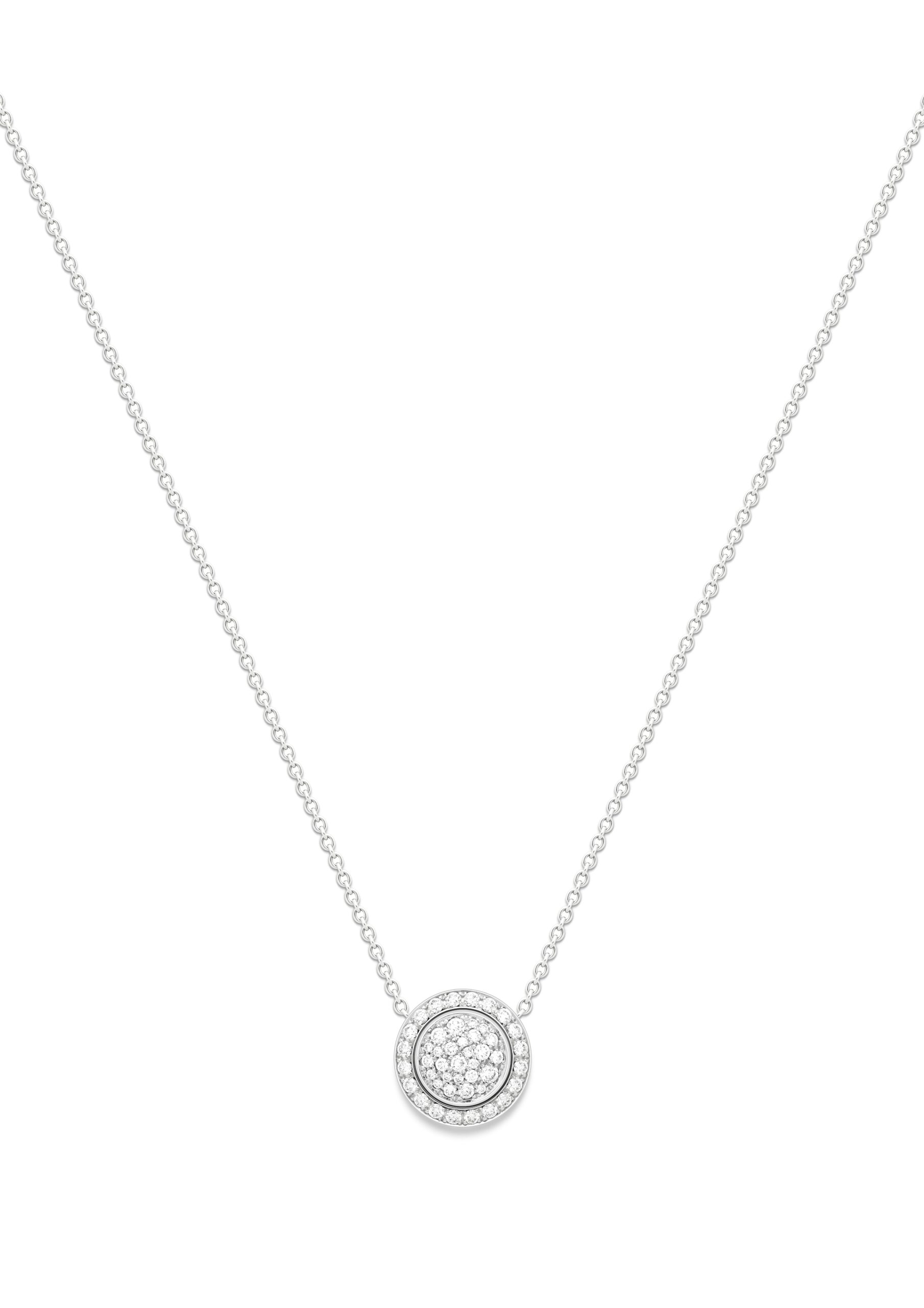 Cette année, nous proposons un nouveau service de personnalisation qui permet aux clients de faire graver le dos d’un pendentif Possession pour le transformer en porte bonheur. Ces merveilleux colliers se déclinent en or blanc ou rose et sont dotés d’un motif central en forme de cabochon qui peut se retourner sur lui-même. L’un des côtés du motif est orné de 46 diamants taille brillant (env. 0,48 carat), tandis que l’autre reste vierge pour accueillir une gravure personnalisée, comme une date, un chiffre porte-bonheur, des initiales ou un symbole. Le motif extérieur est également serti de diamants sur un côté, vous permettant de porter votre collier de différentes façons.