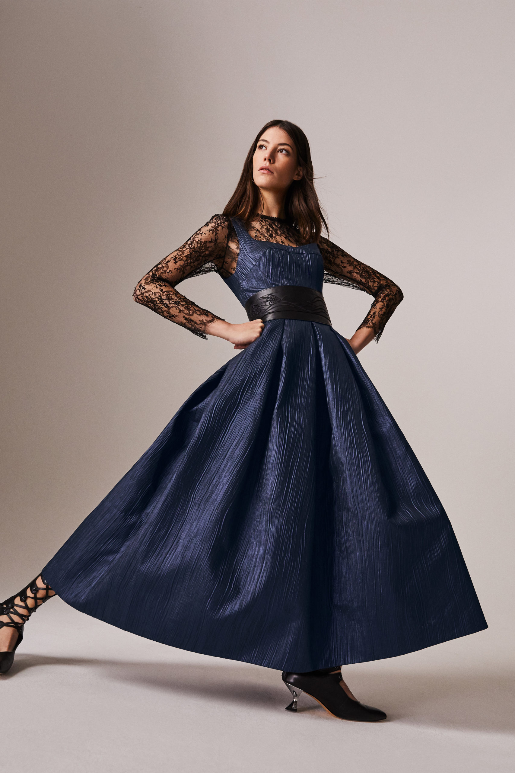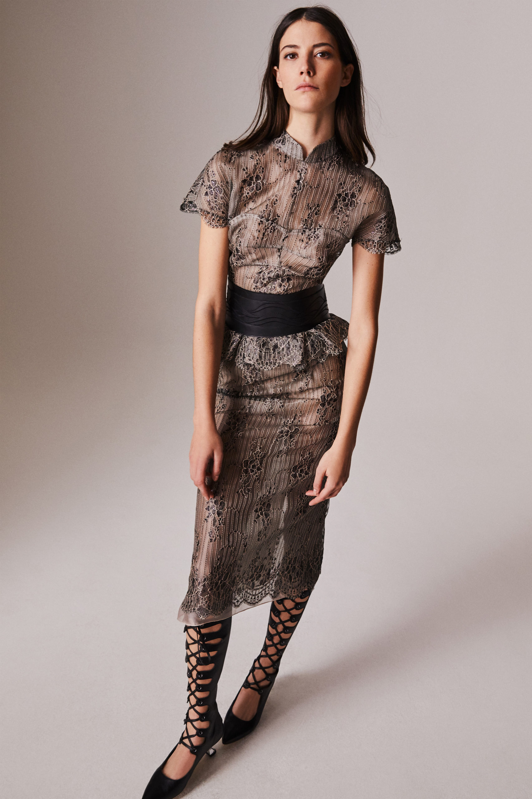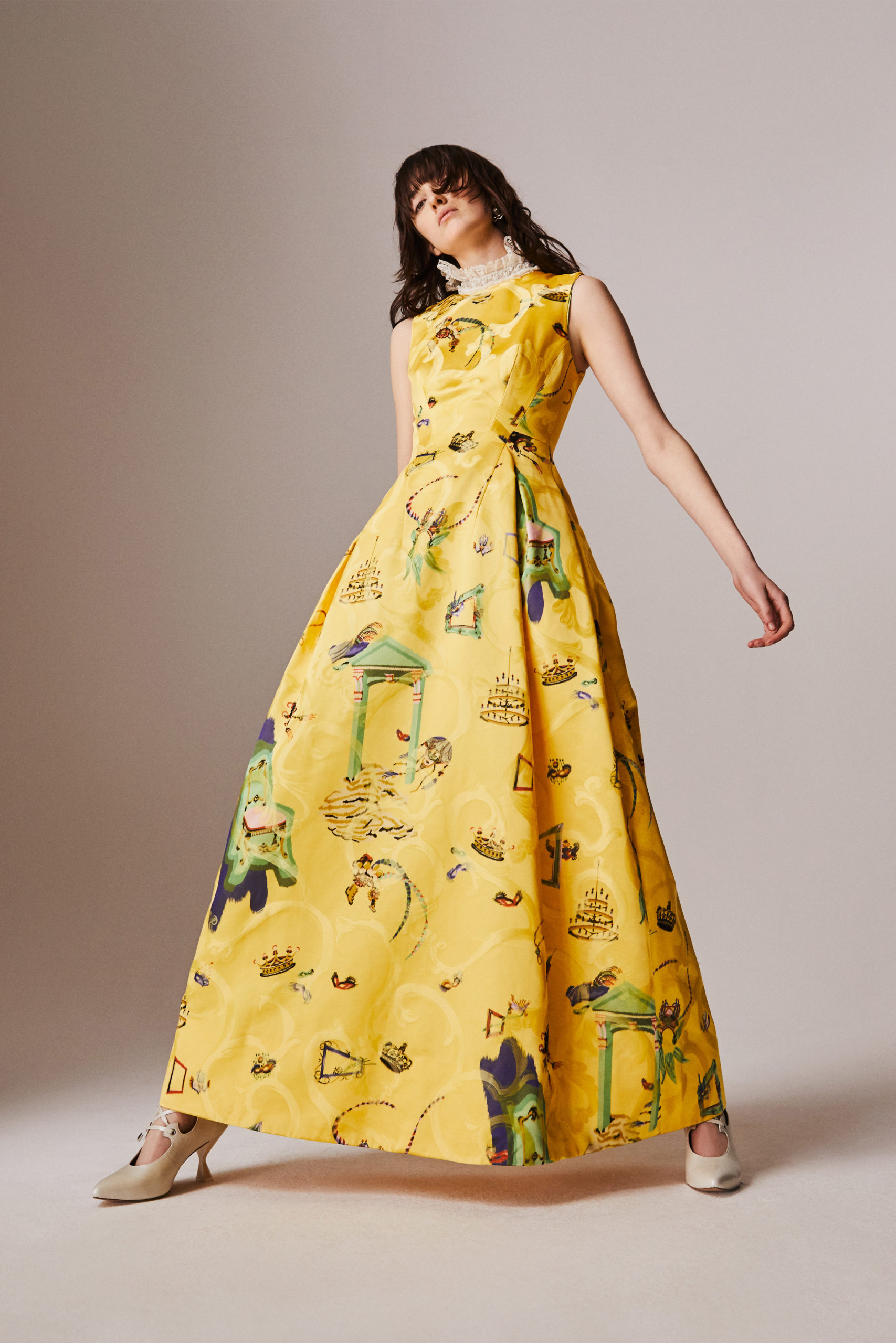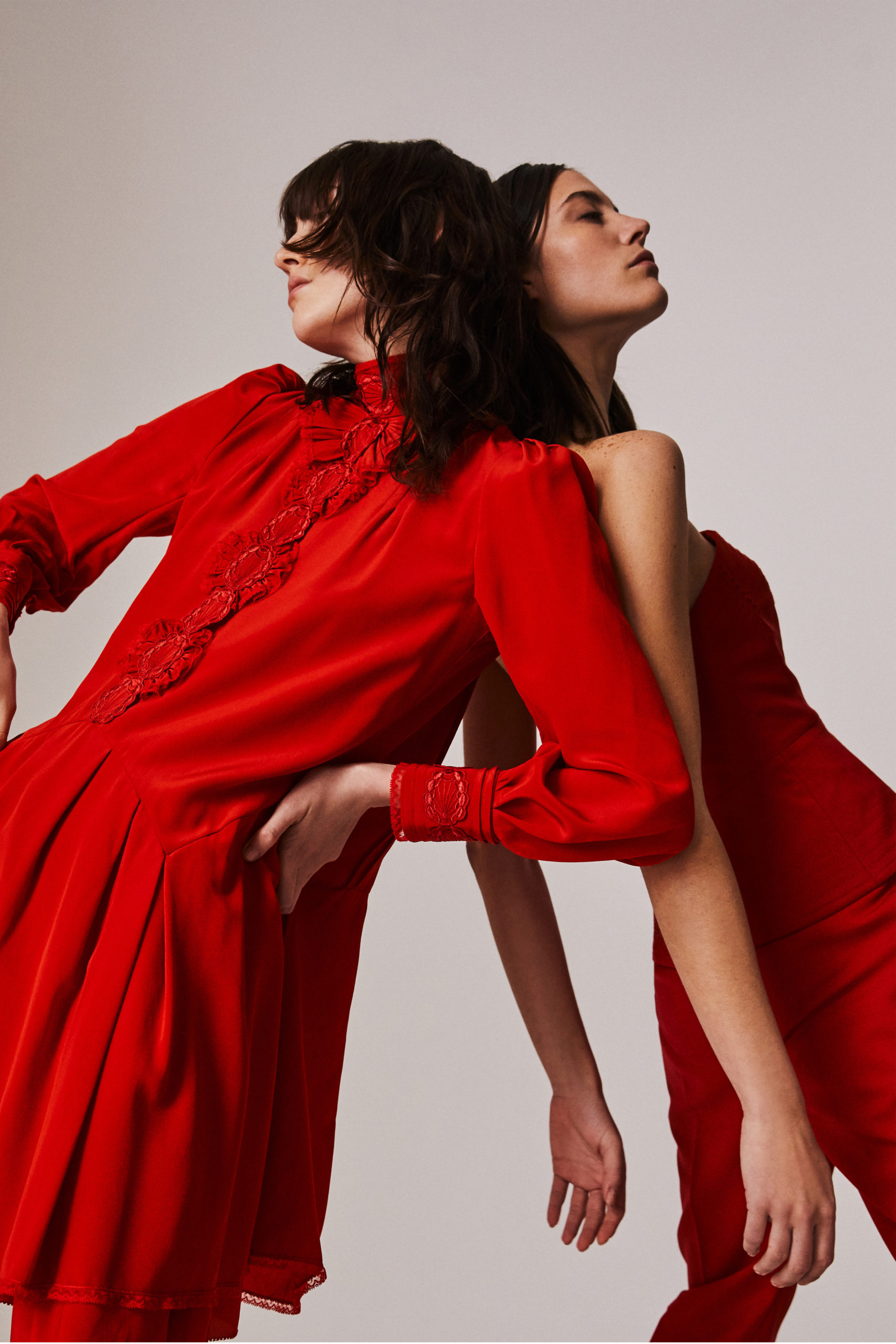 The contour of this season builds on the combination of clothing cultures from the east and the west, elevating classical elements with a modern look. The upper body speaks a variety of languages with the regal Baroque style coinciding with the cloud collar and elaborate headdress common to the Beijing Opera, laces and embroidery turning the band collar into an intricately layered collar and mantelet. Wavy curves and asymmetrical pleats are generously adopted in the entire collection, with the use of lantern sleeves echoing the theme by adding volume to the pieces.