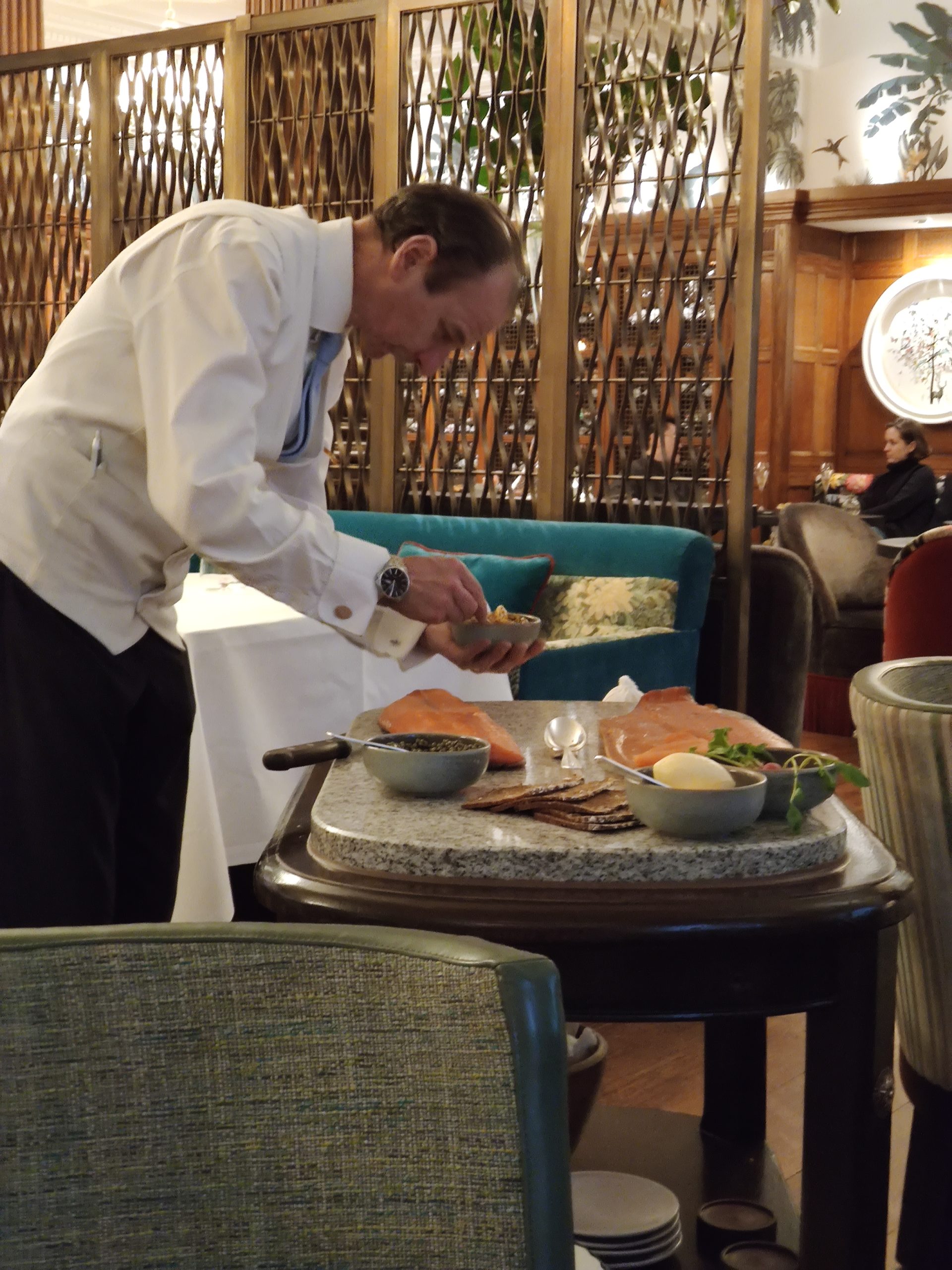 L’équipe d’Adam sert des plats à base d’ingrédients authentiques de la plus haute qualité provenant de fournisseurs du monde entier, dans une ambiance théâtrale. Chaque assiette est conçue pour le plaisir, un service sans faille et un raffinement élégant. Les plats du jour tels que le saumon entier poché et le gammon glacé d’Essex seront servis sur un chariot traditionnel Silver Trolley. De plus, le menu à la carte propose des options fraîches et saisonnières telles que des fleurs de courgettes frites au miel de truffe, une sole de Douvres entière de 12 oz simplement grillée ou poêlée au beurre aux câpres, et des gélinottes du Yorkshire grillées et une sauce à a mûre et au pain.
