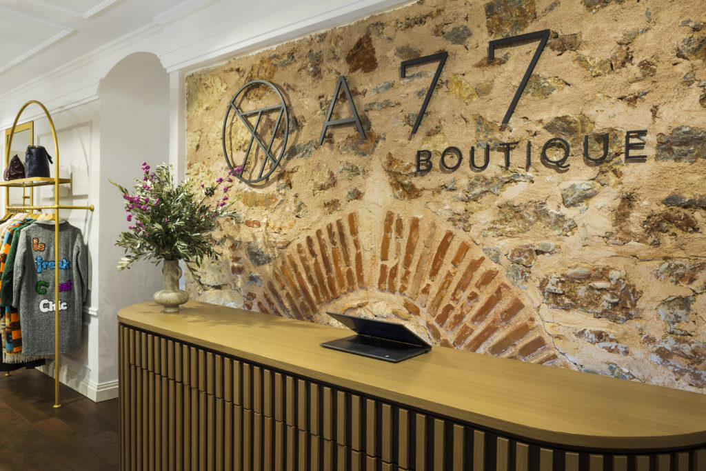 Un lobby au concept de mode, le premier du genre… Un espace interactif présentant les dernières tendances de la mode et du design à travers une collection de marques triées sur le volet, mêlant prêt-à-porter haut de gamme et street-wear, talents émergents aux labels établis, innovants design avec un style intemporel. Côté mode on y retrouve le plus exigent, y compris les marques – synonymes d’élégance comme Chiara Boni ou Missoni, et des marques grecques de premier ordre comme Sophi Deloudi, combinant héritage du design classique avec un point de vue contemporain. Ornant la façade du bâtiment historique A77 Suites by Andronis et avec un sentiment chaleureux et accueillant marqué par son ADN, la boutique A77 est une destination de mode exclusive, un centre de créativité et de style.